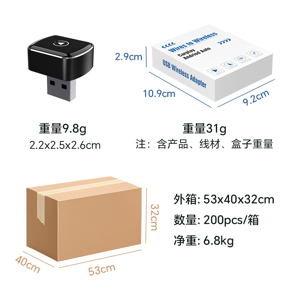 CarPlay box wireless interconnection is suitable for wired to car navigation, Apple Android 2-in-1 dual-mode connection