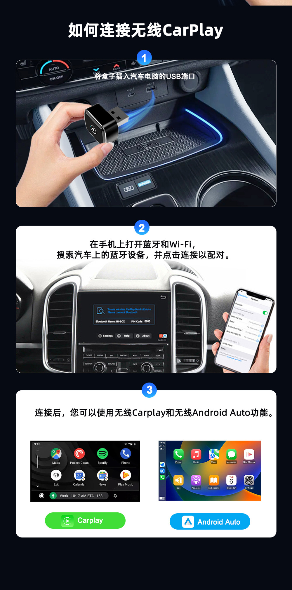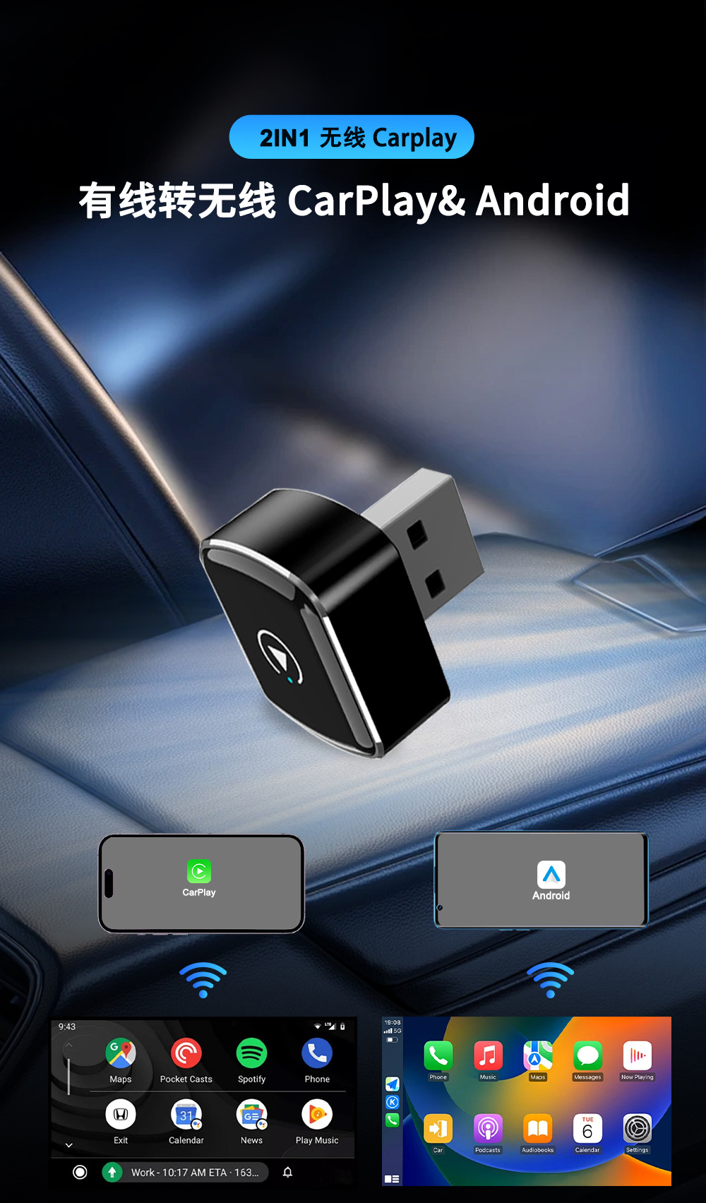【直插USB】无线carplay 标配