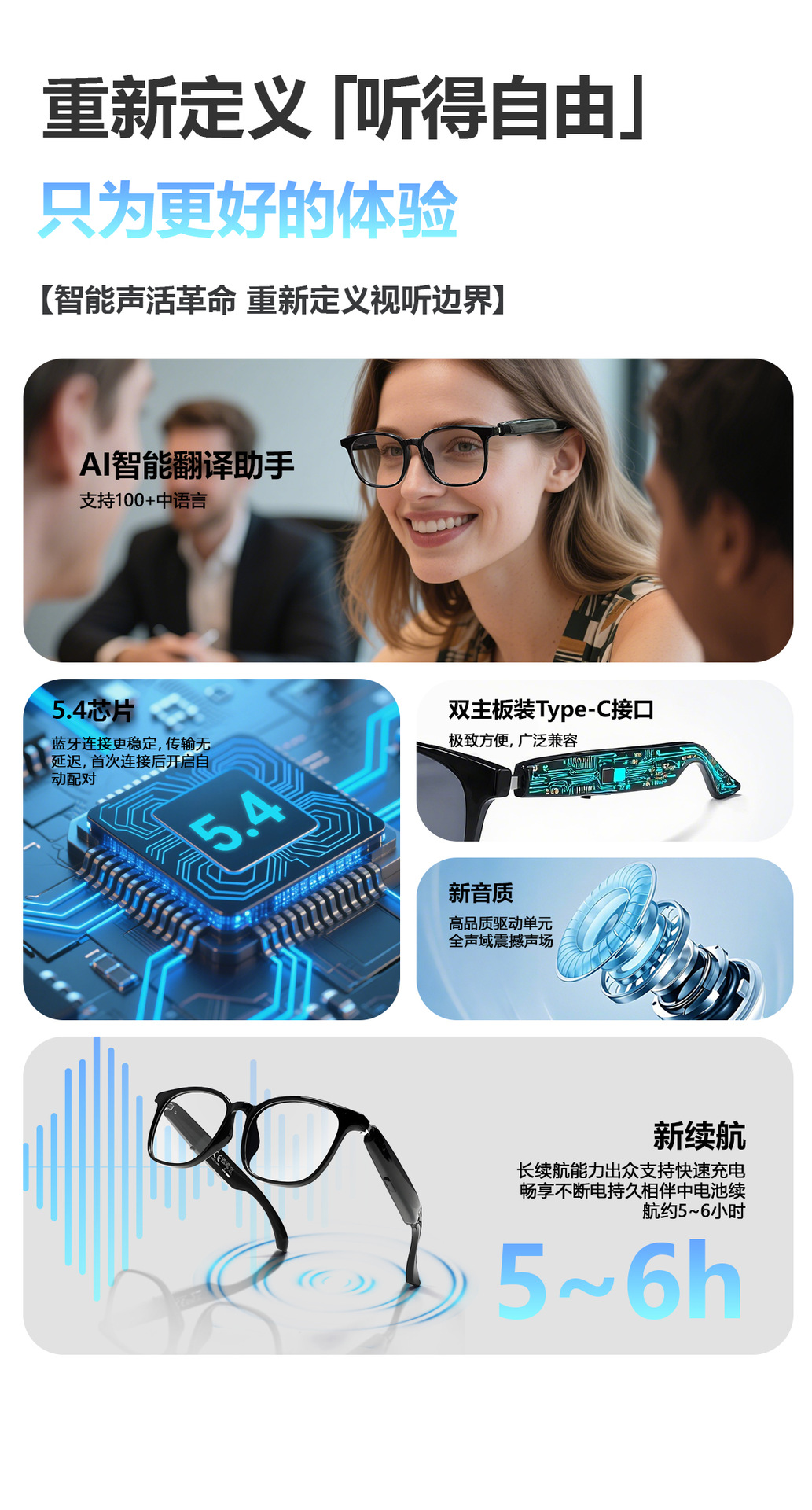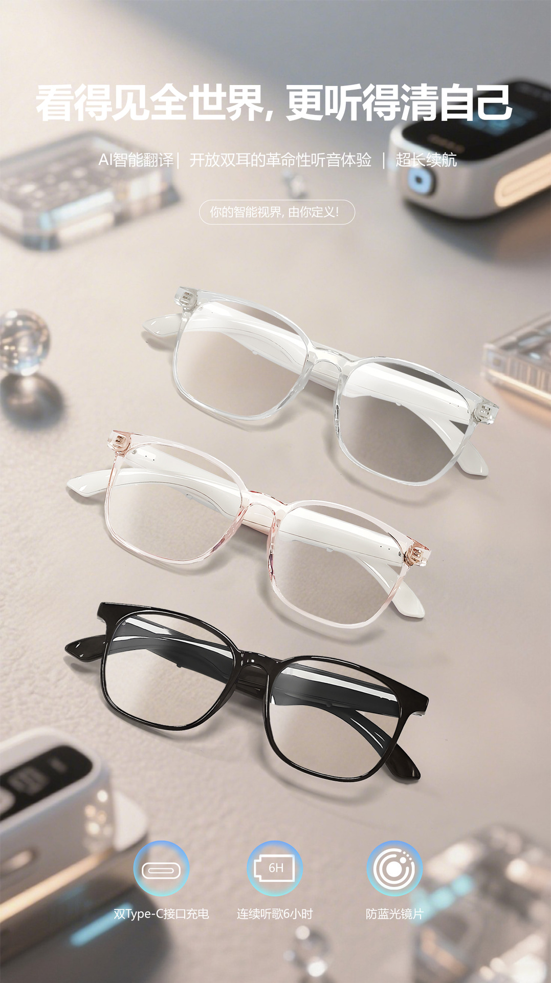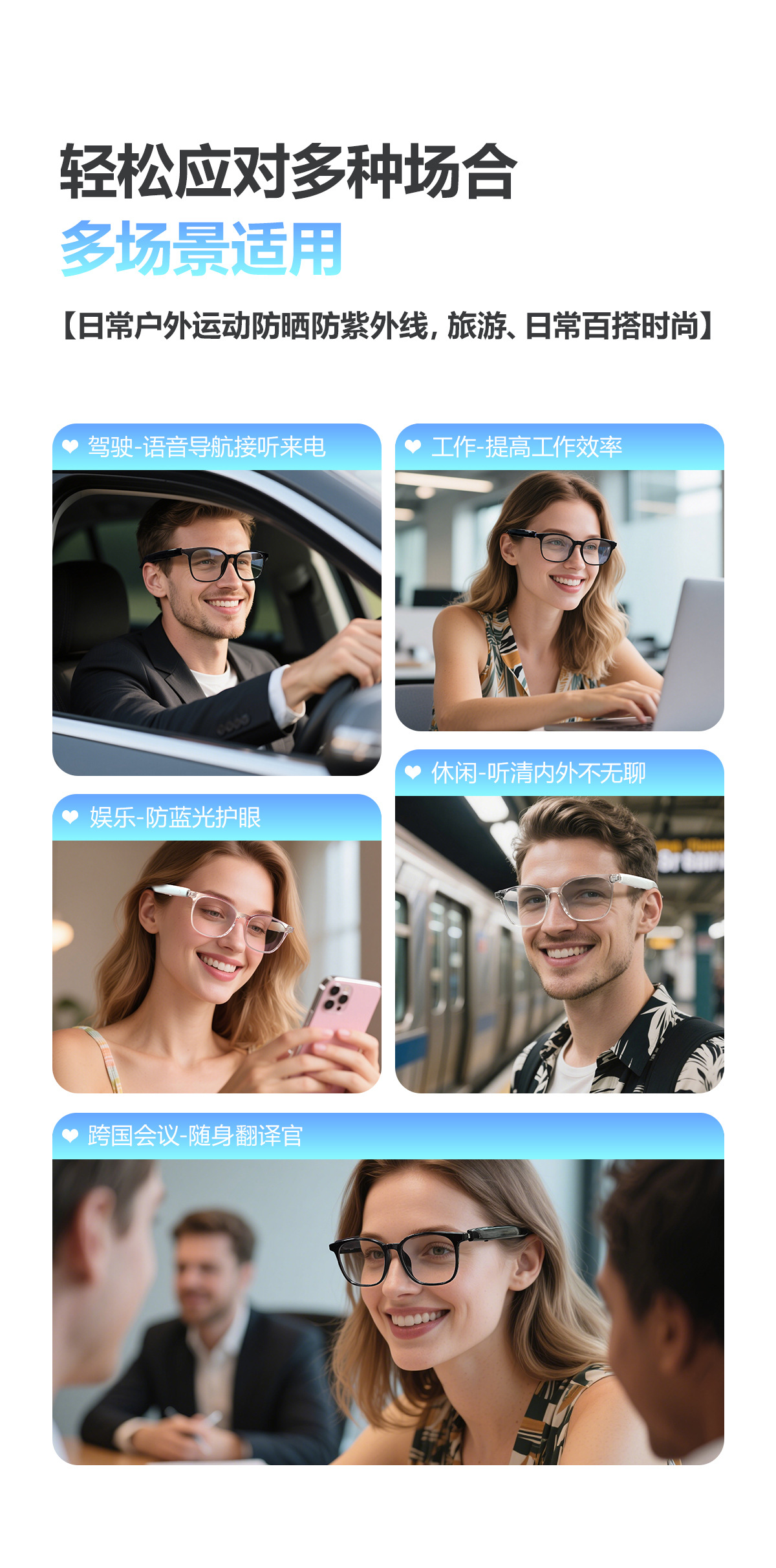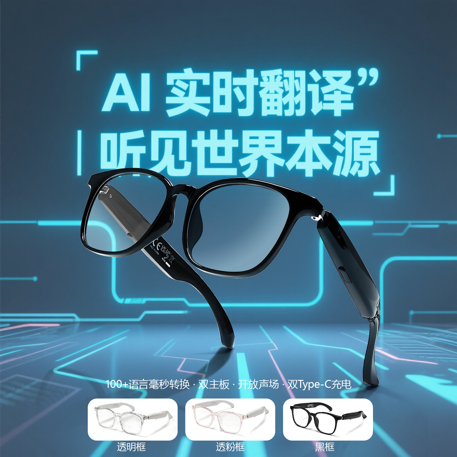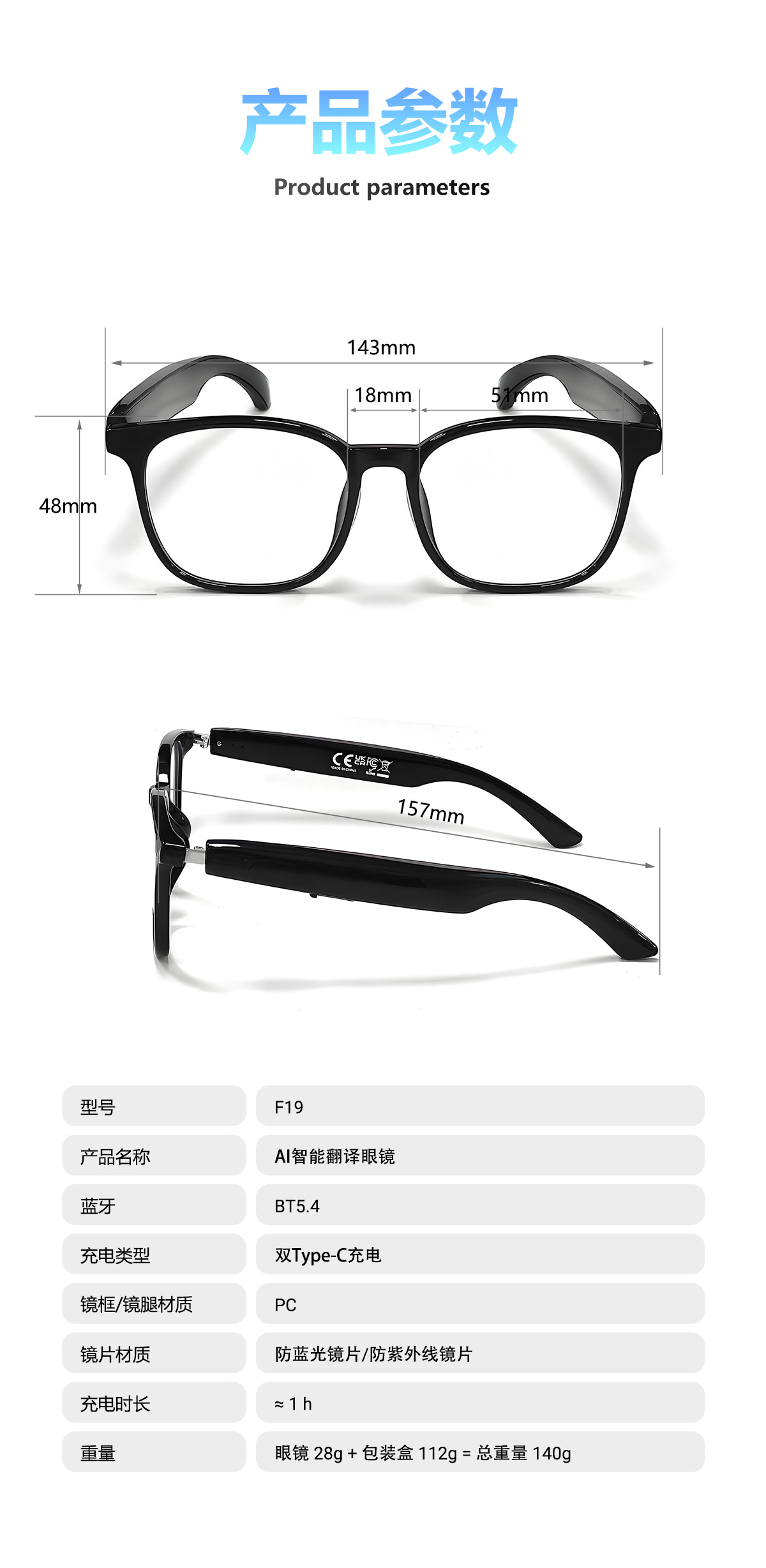 F19 new AI translation Bluetooth glasses, more than 100 languages real-time translation glasses, listening to songs and calls, smart glasses