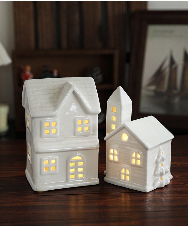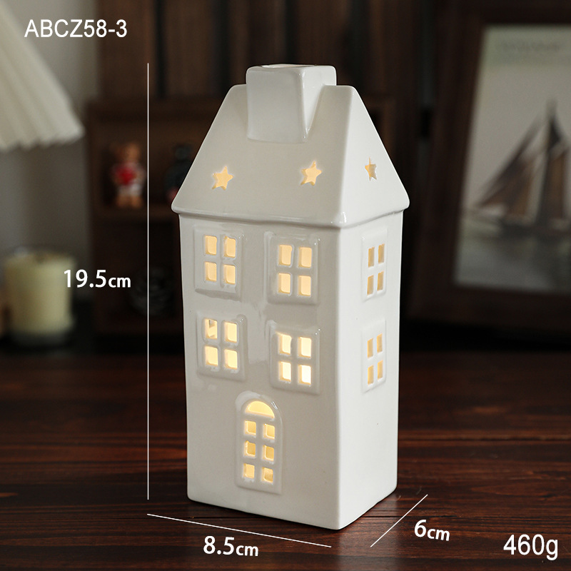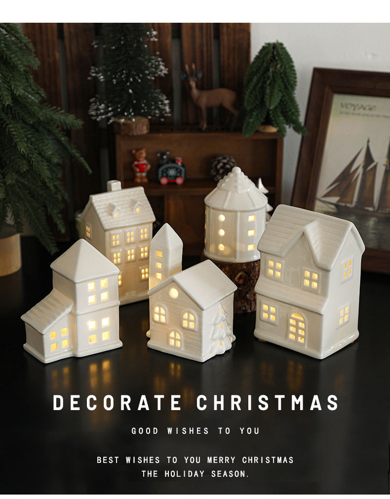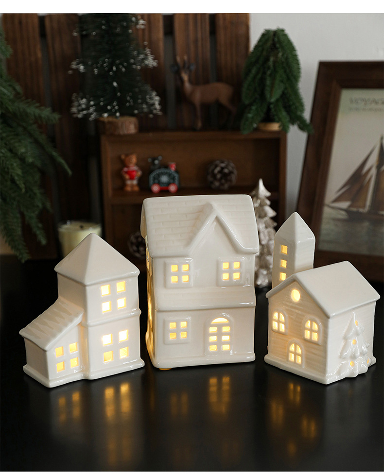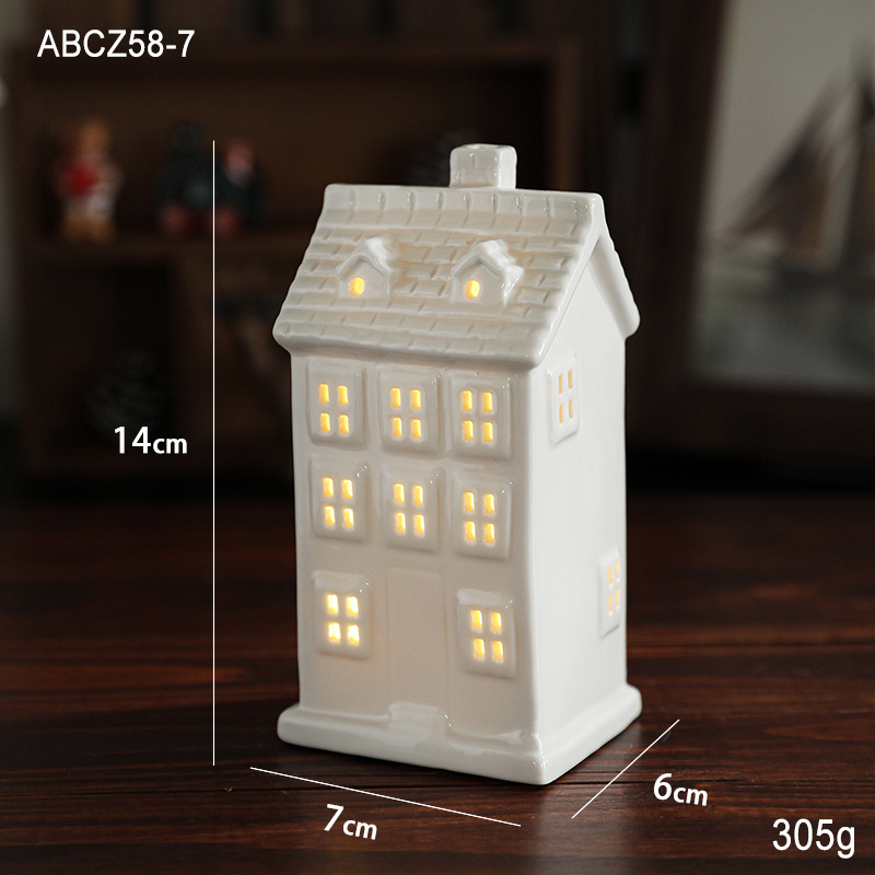 Cross-border ceramic Christmas light house ornament Nordic ins Christmas light house Christmas decoration ornament