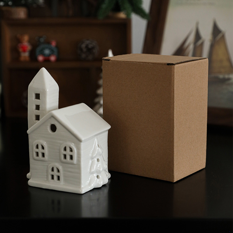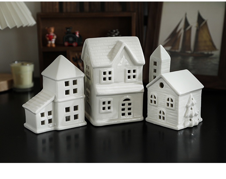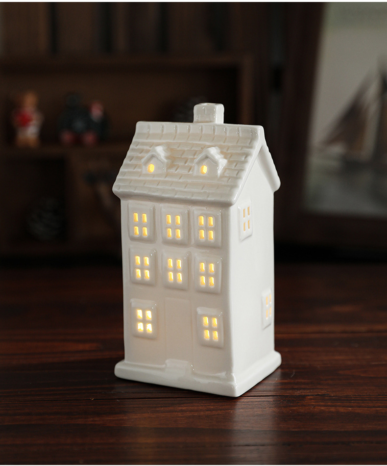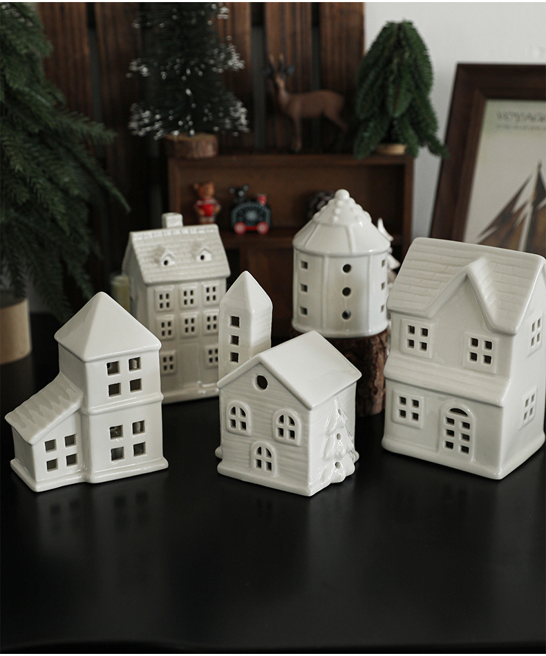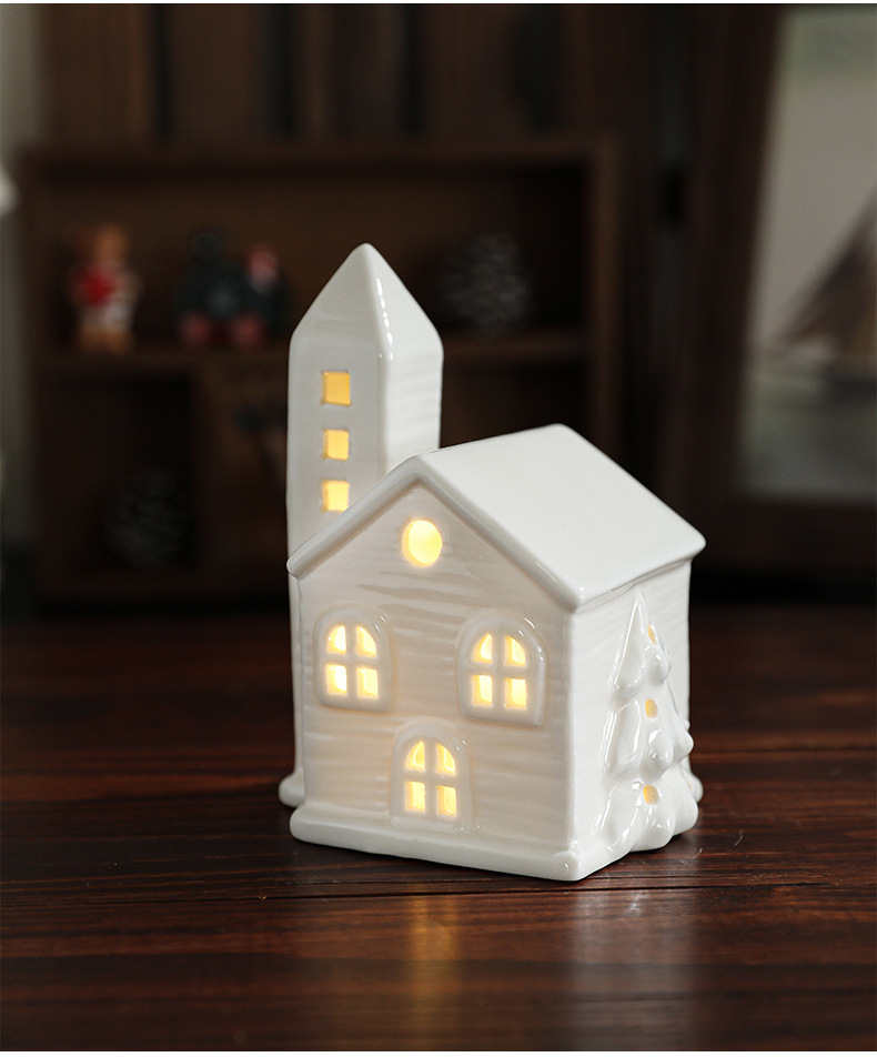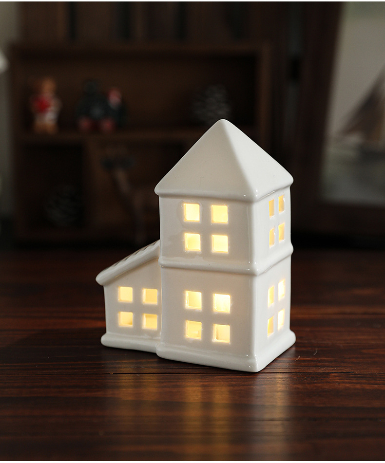 Cross-border ceramic Christmas light house ornament Nordic ins Christmas light house Christmas decoration ornament
