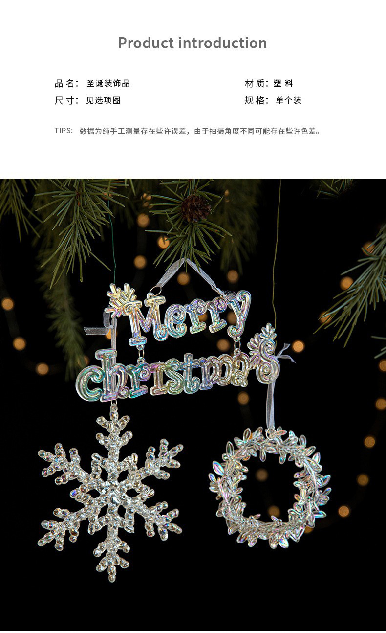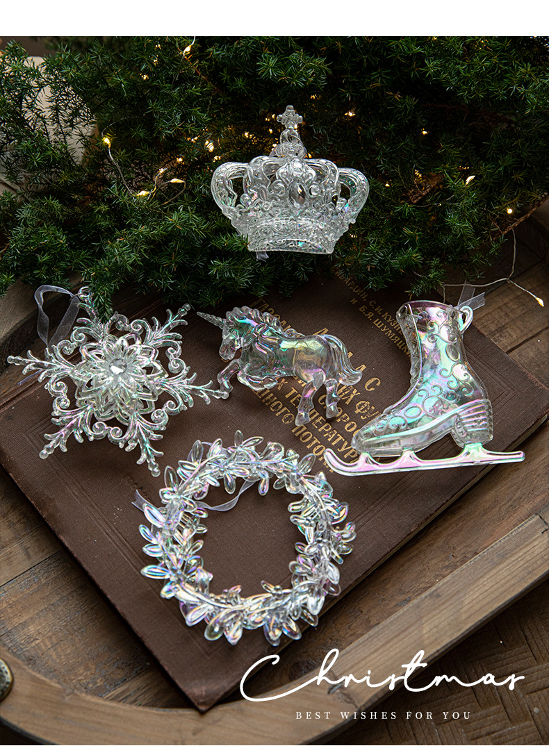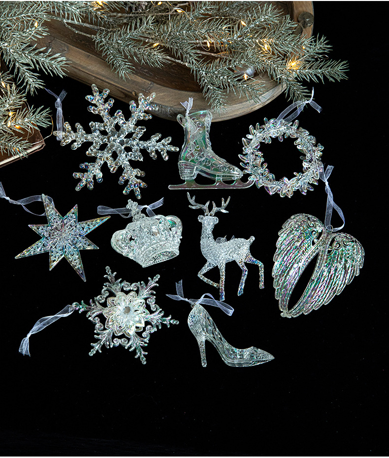 Cross-border new Christmas decorations Christmas tree decoration acrylic pendant colorful transparent ice crystal pendant
