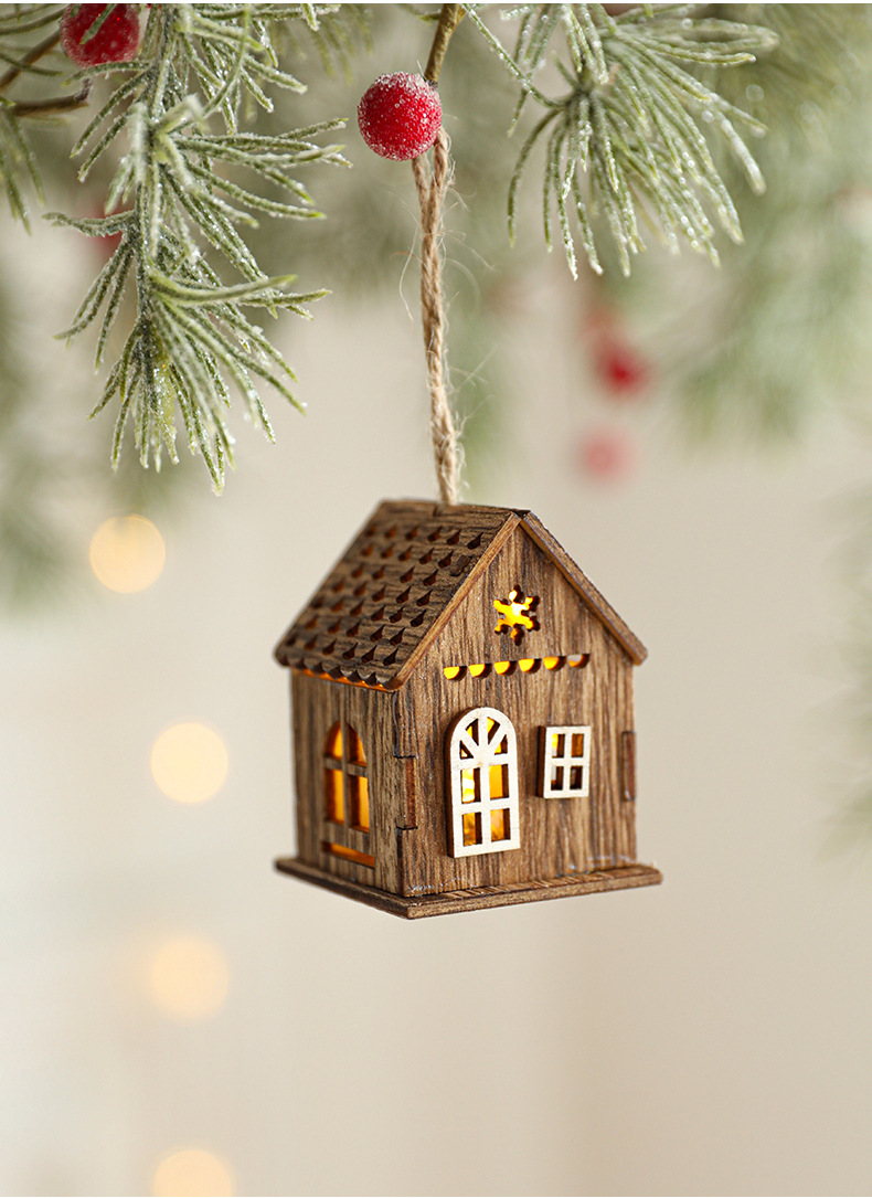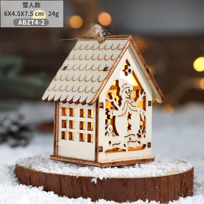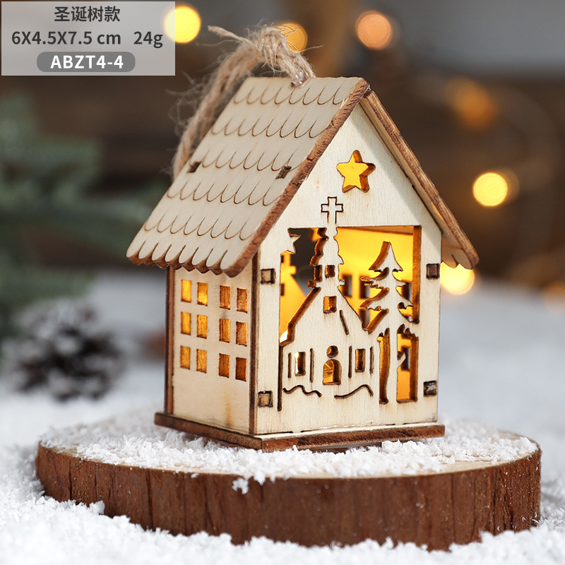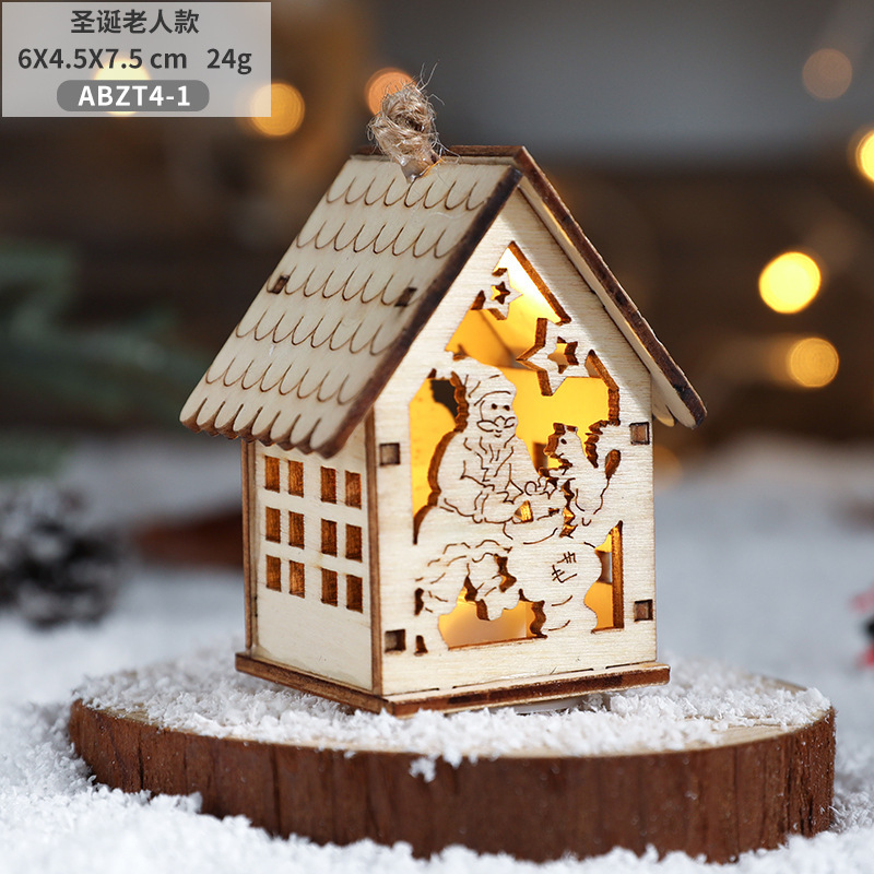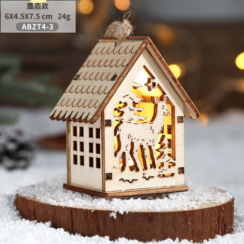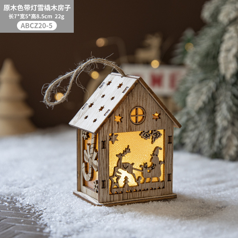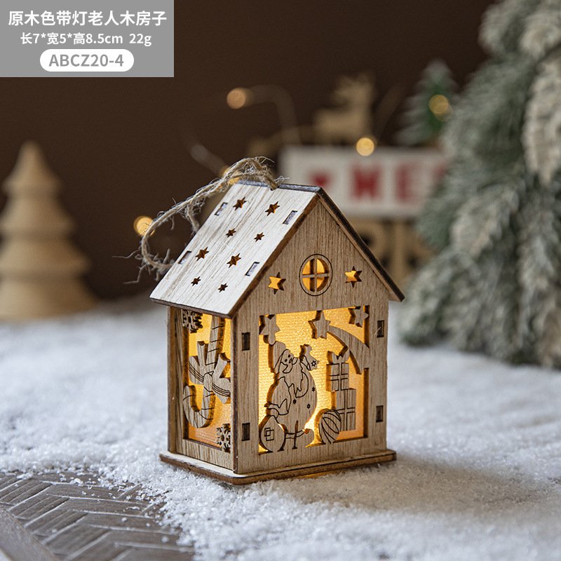 New Cross-border Christmas Ornaments Creative Christmas Tree Decoration Atmosphere Arrangement LED Light Up Log Cabin In Stock