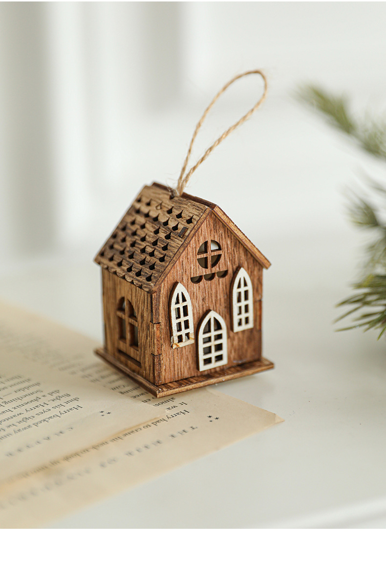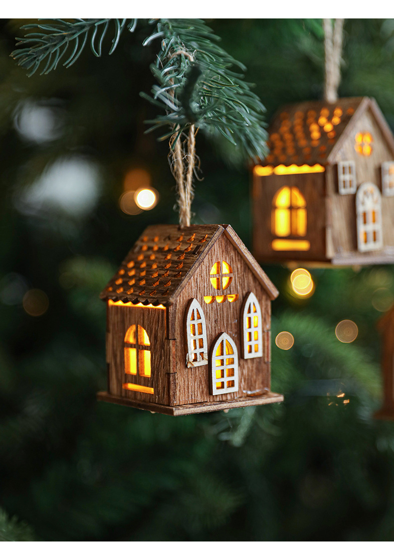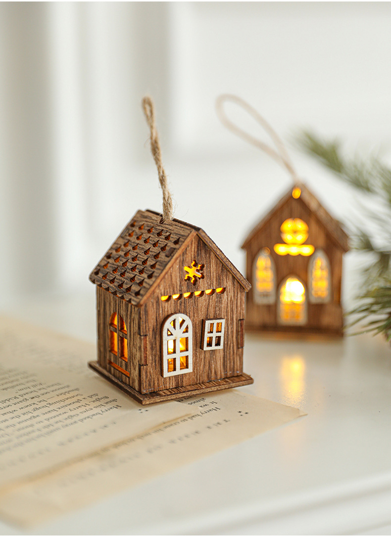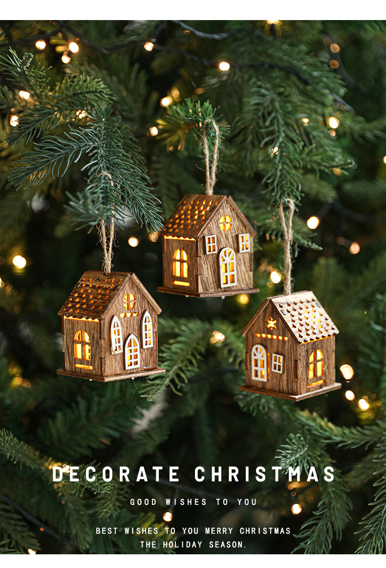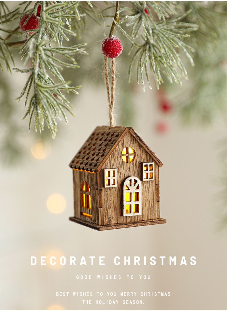 New Cross-border Christmas Ornaments Creative Christmas Tree Decoration Atmosphere Arrangement LED Light Up Log Cabin In Stock