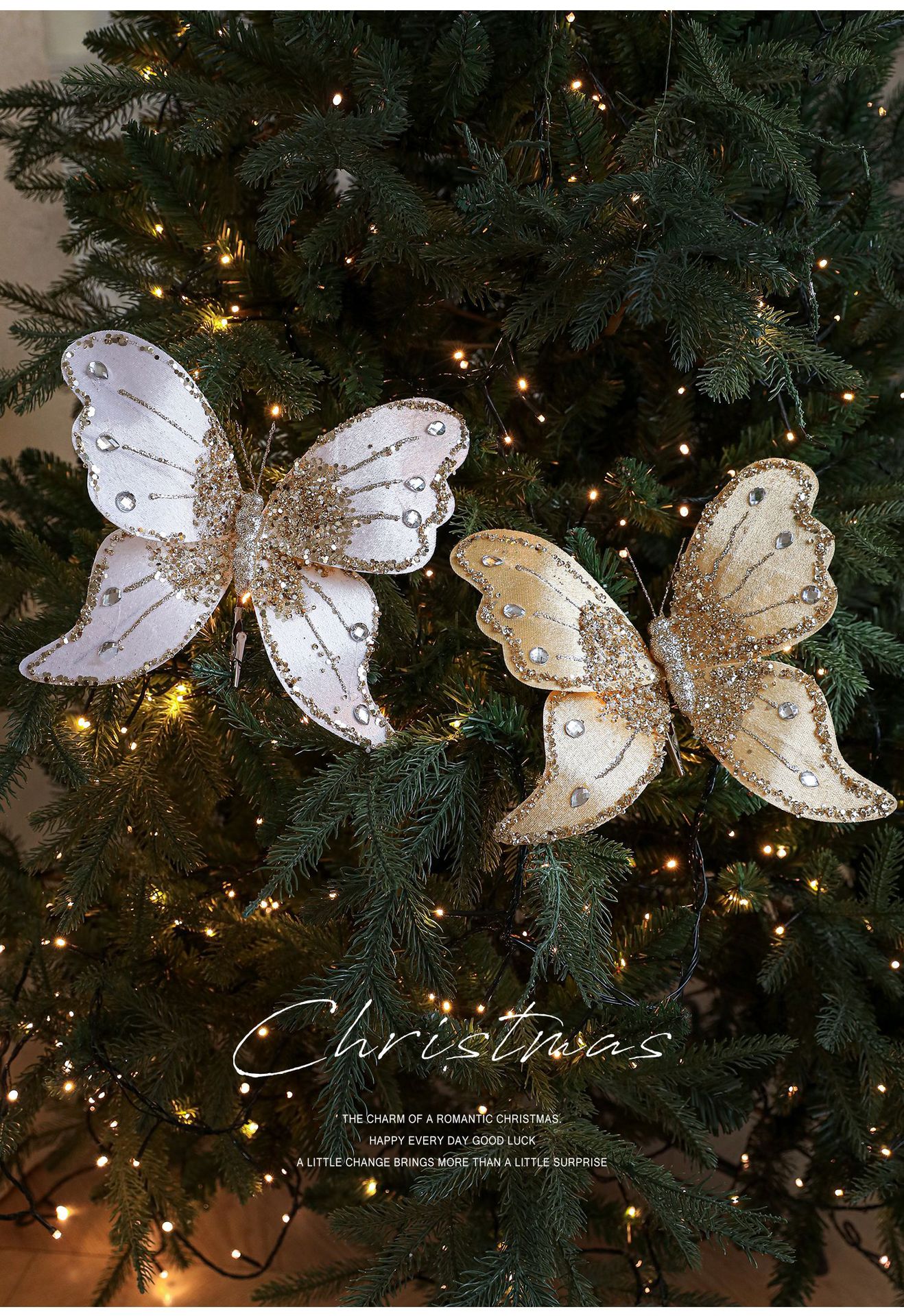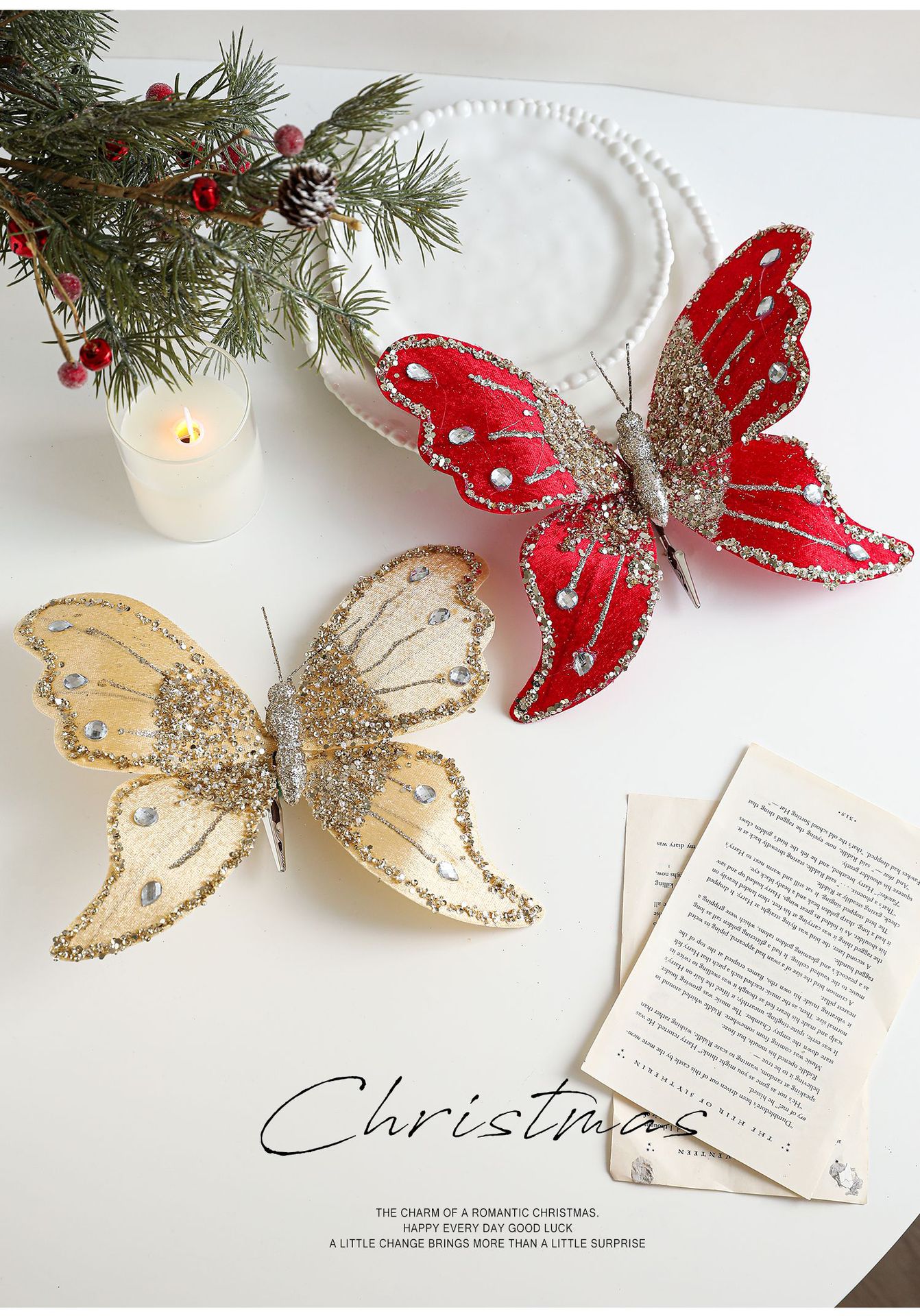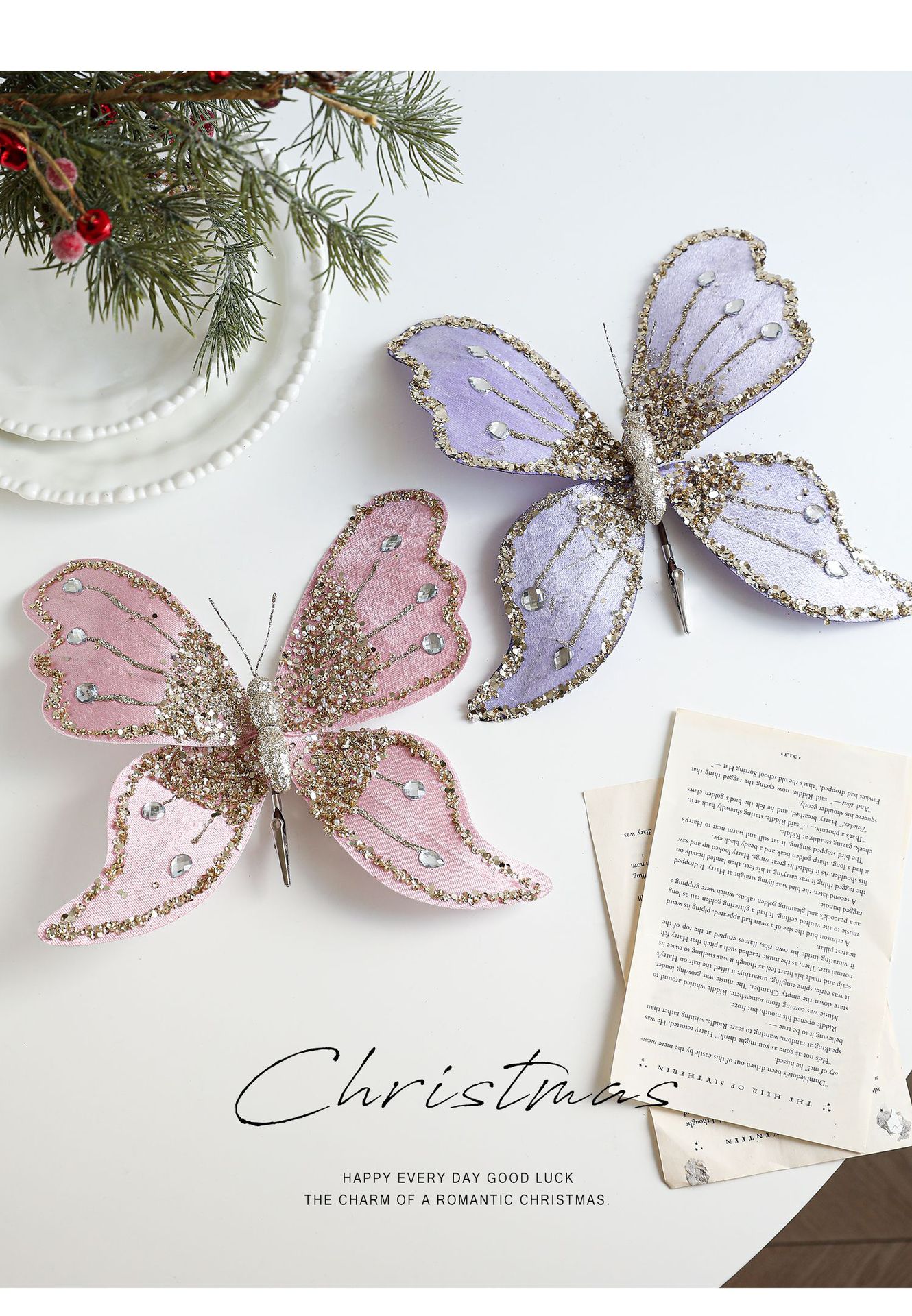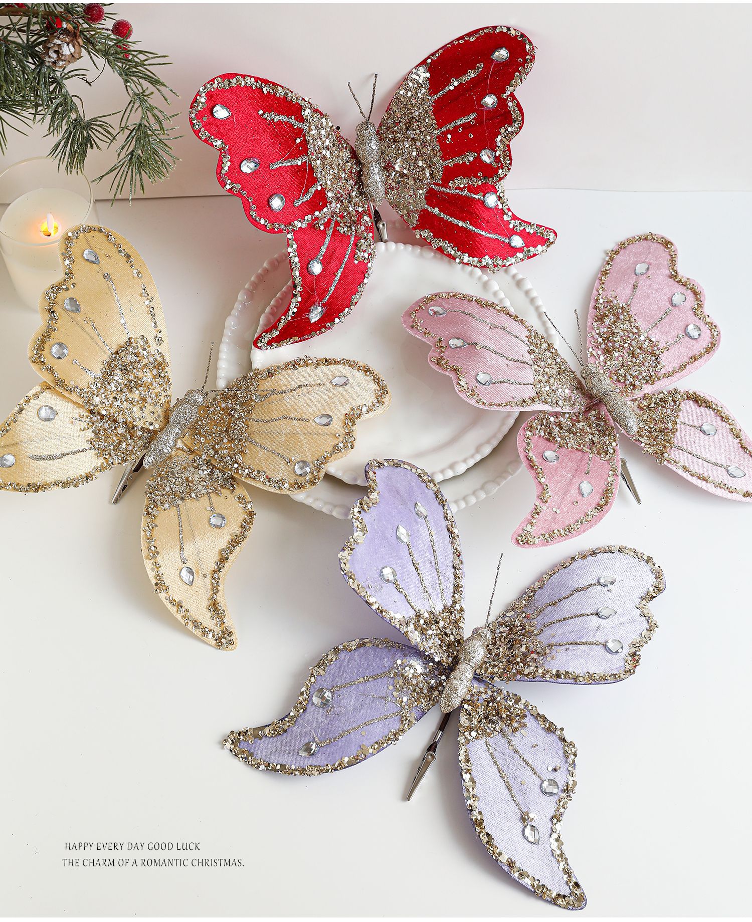 Cross-border high-end fabric simulation bow clip flannel sticky powder flocking Christmas tree decoration pendant scene layout