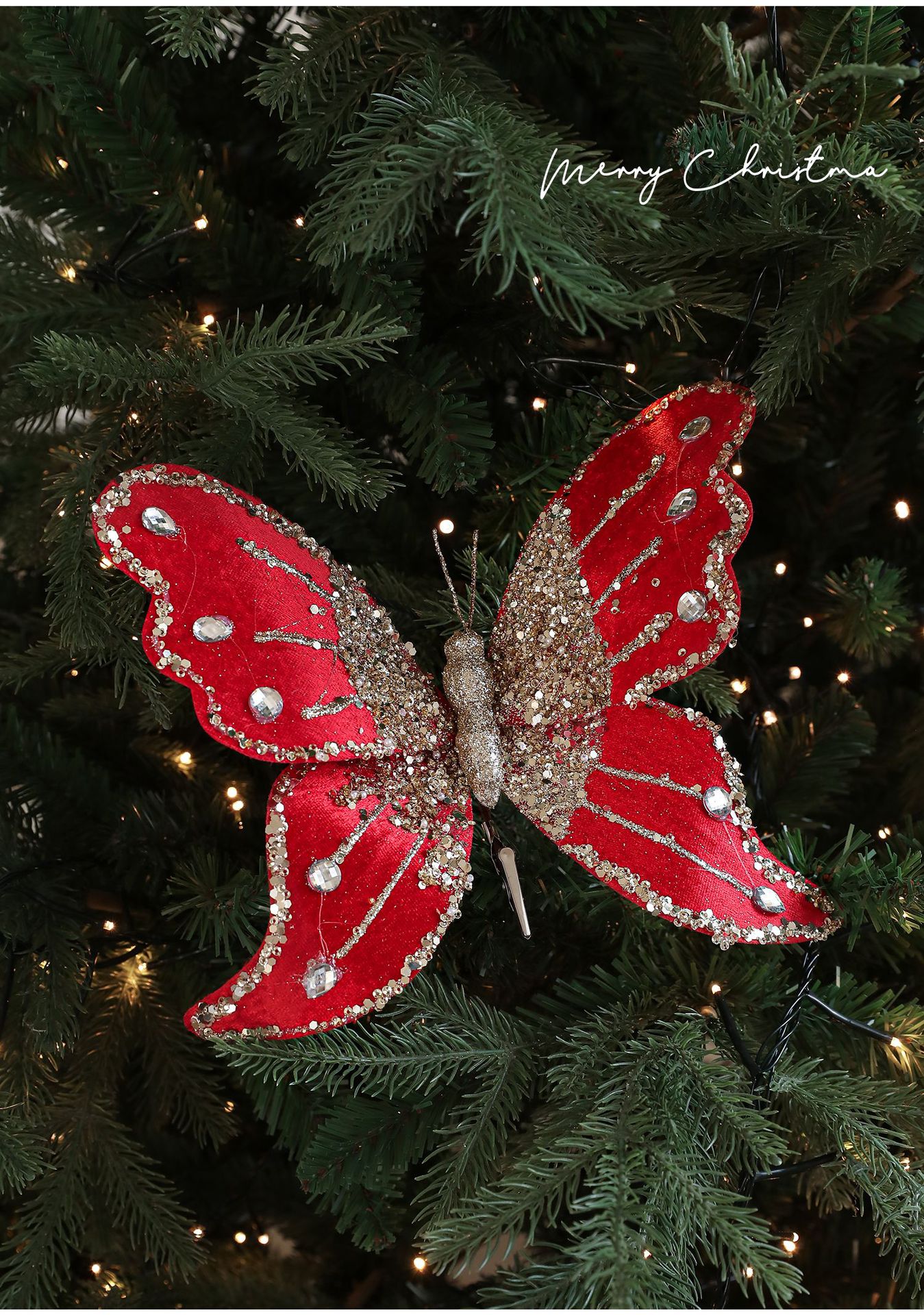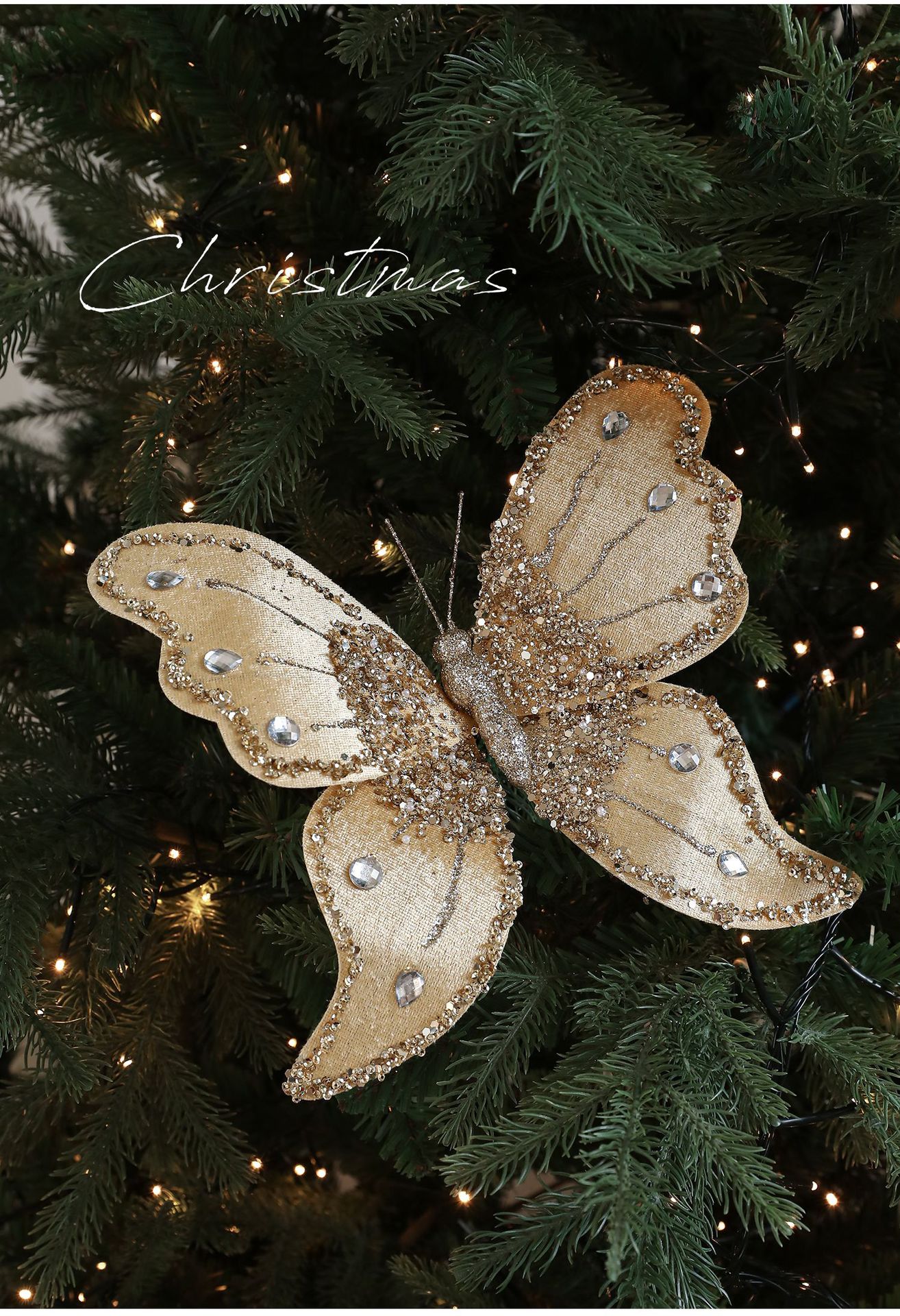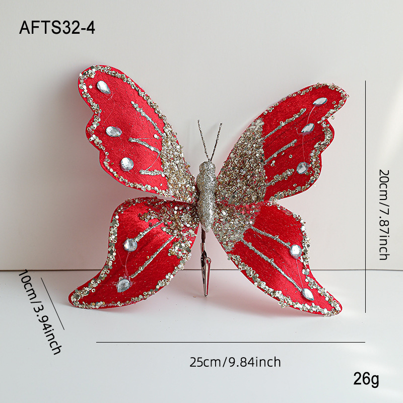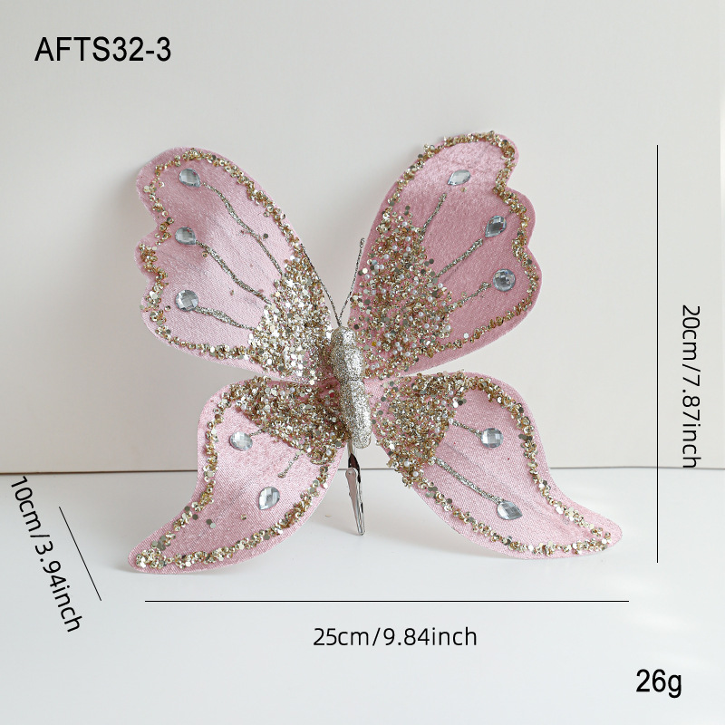 Cross-border high-end fabric simulation bow clip flannel sticky powder flocking Christmas tree decoration pendant scene layout
