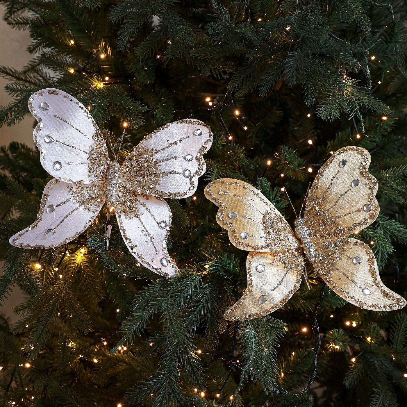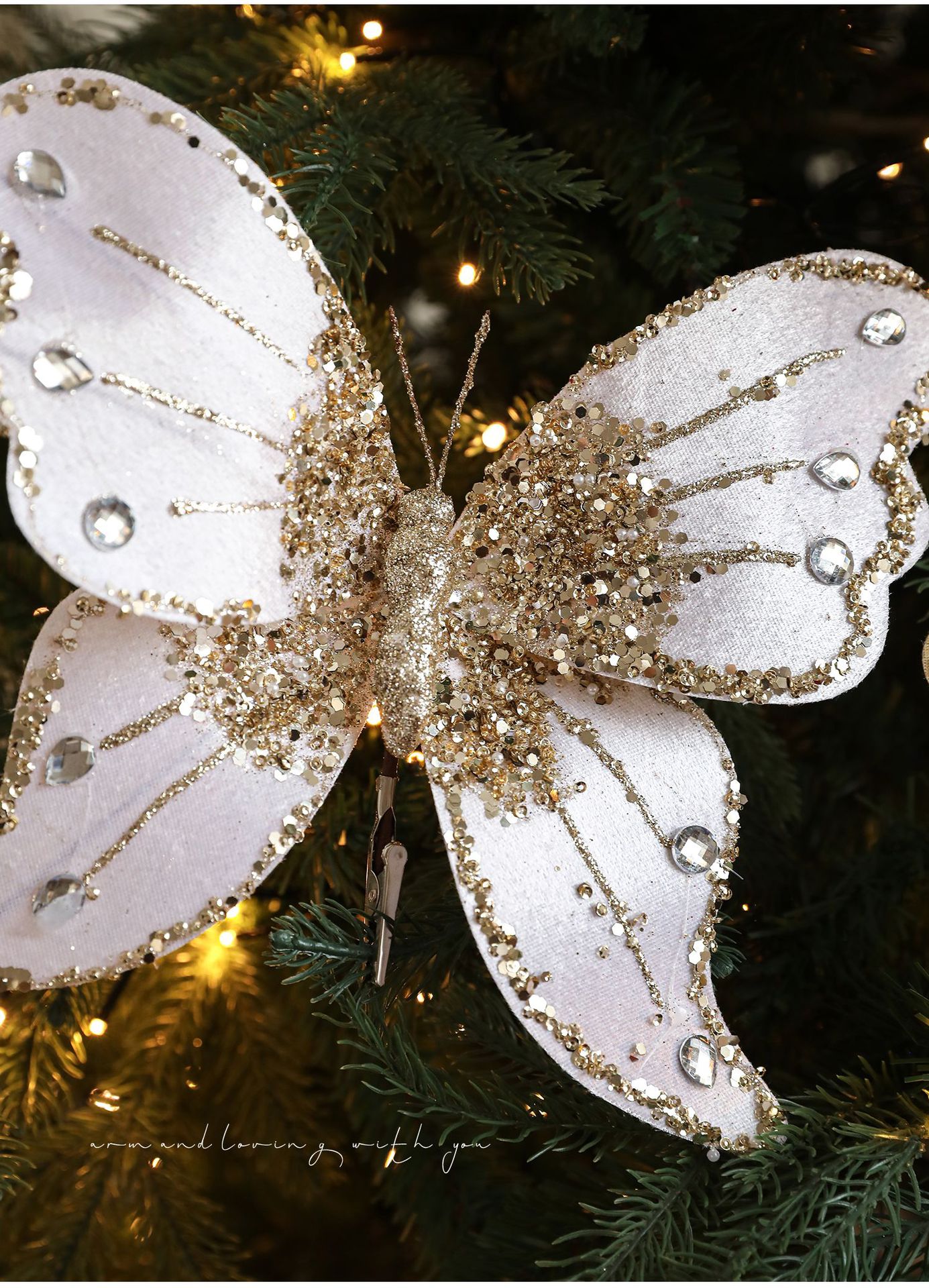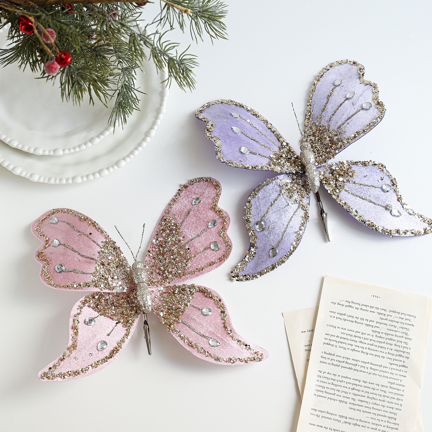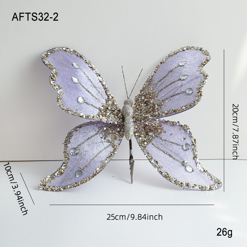 Cross-border high-end fabric simulation bow clip flannel sticky powder flocking Christmas tree decoration pendant scene layout