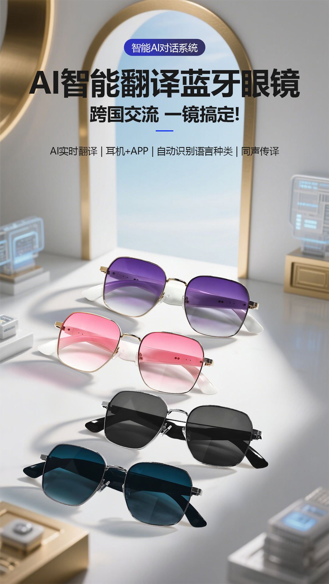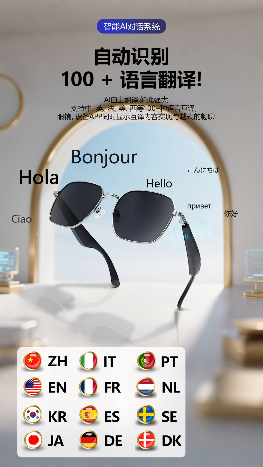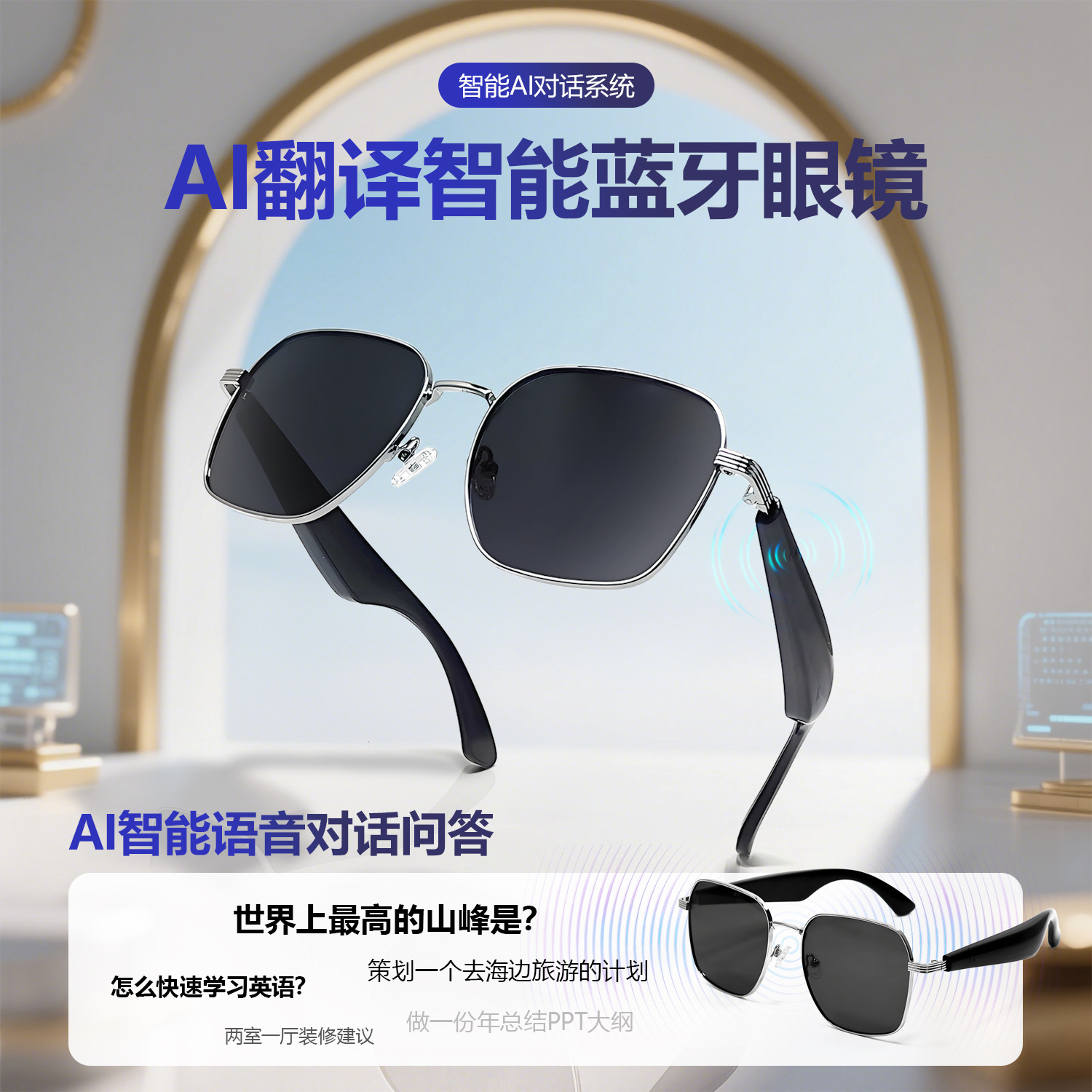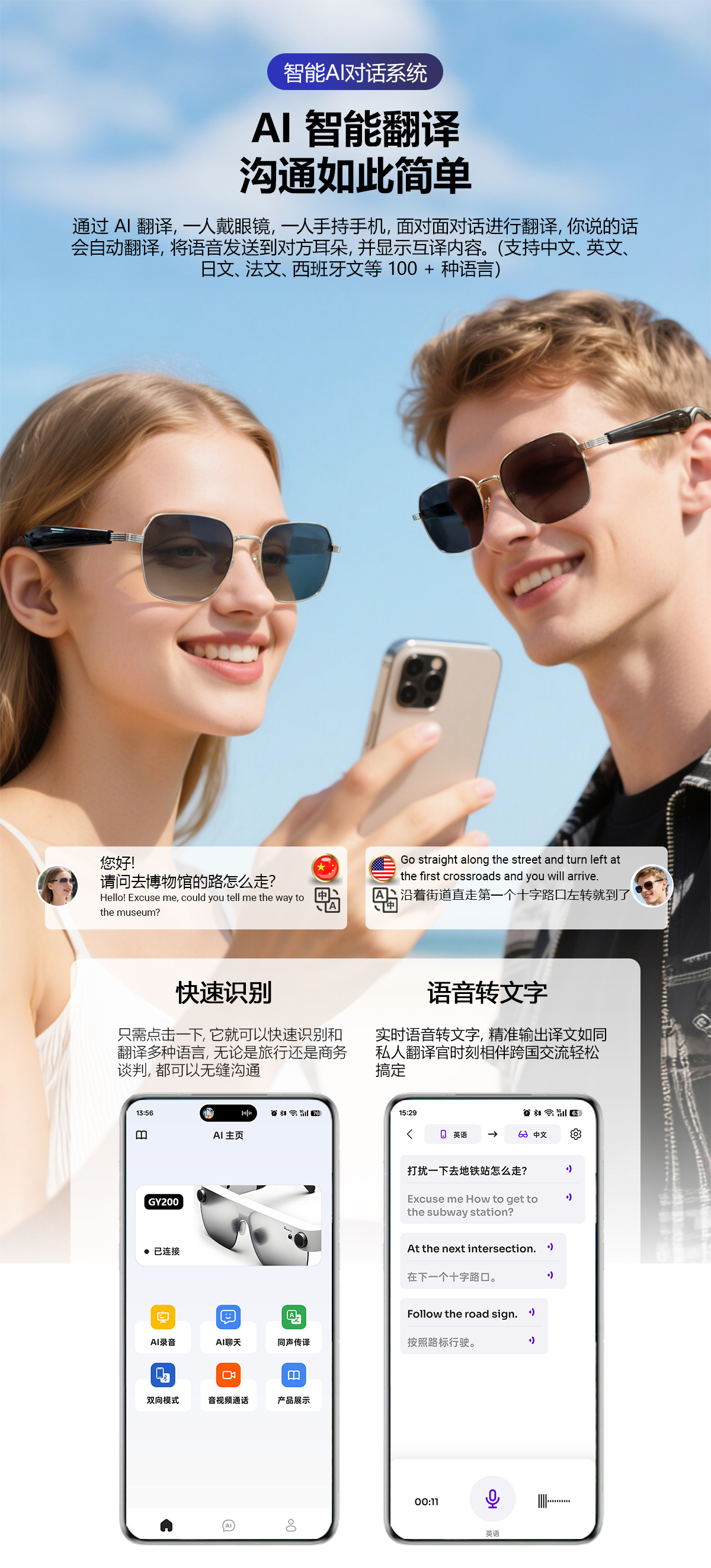 GY200 AI Translation Bluetooth Glasses More than 100 Languages Real-time Translation Glasses Listening to Songs and Calling Smart Glasses
