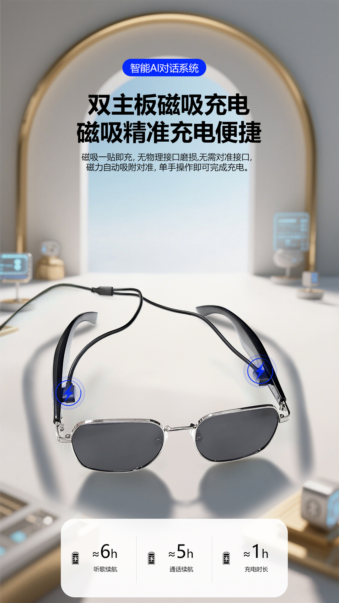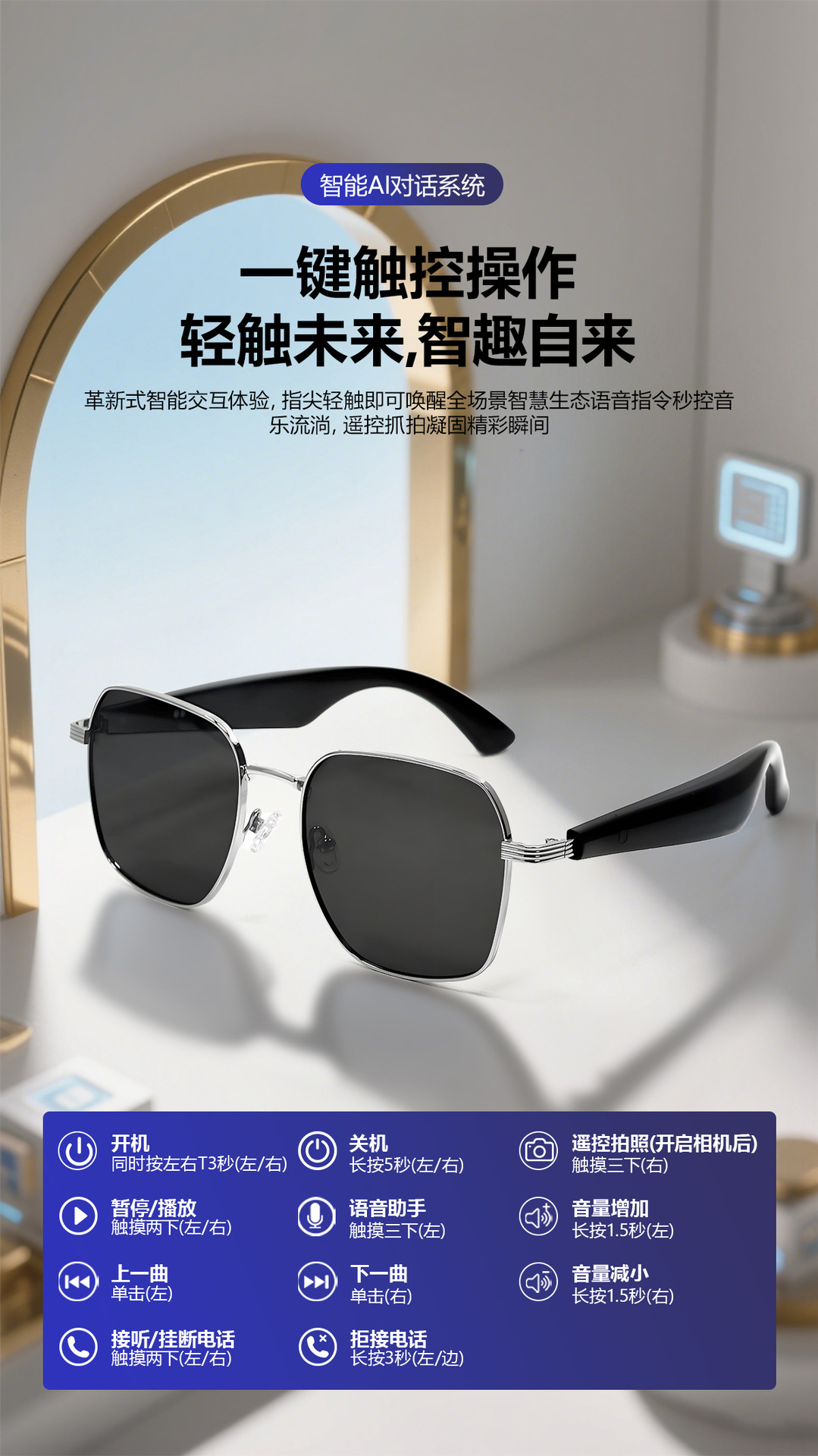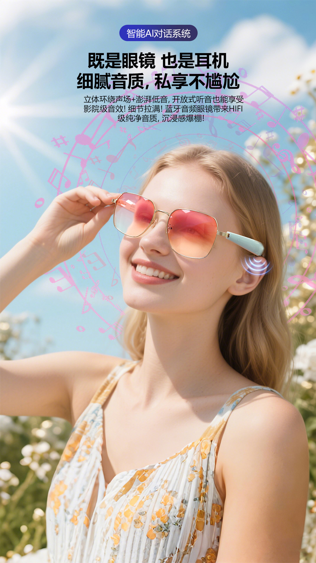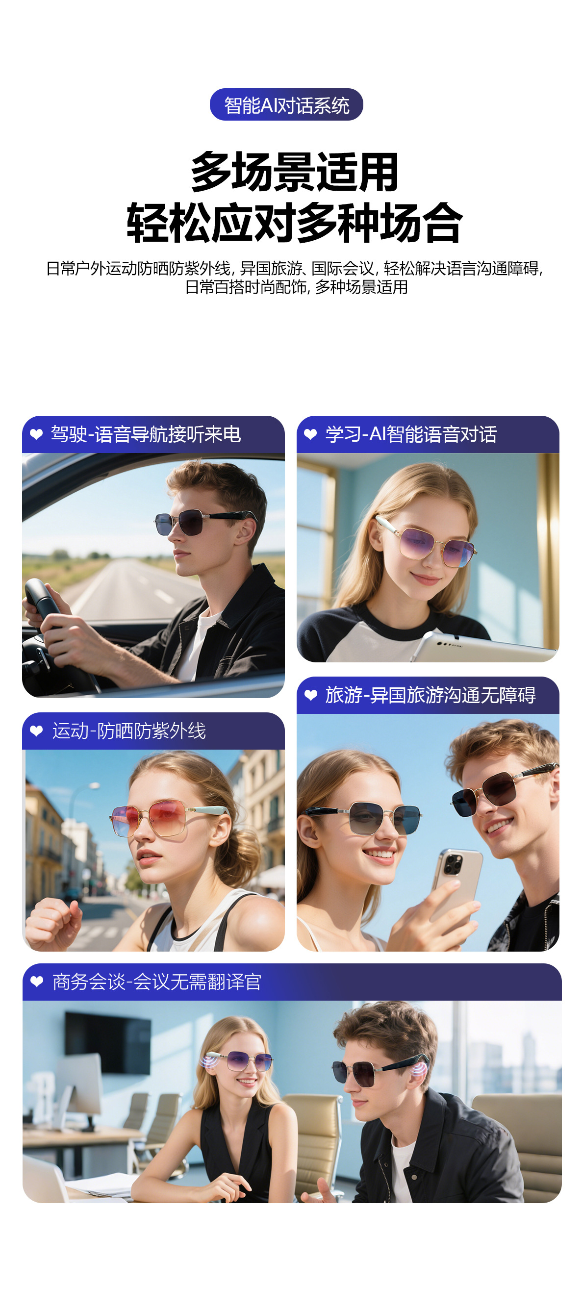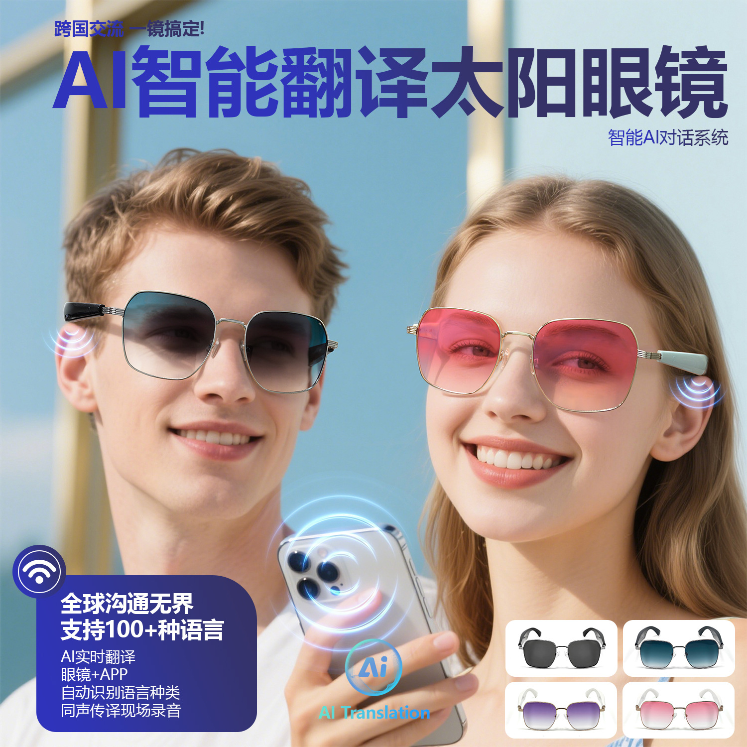 GY200 AI Translation Bluetooth Glasses More than 100 Languages Real-time Translation Glasses Listening to Songs and Calling Smart Glasses