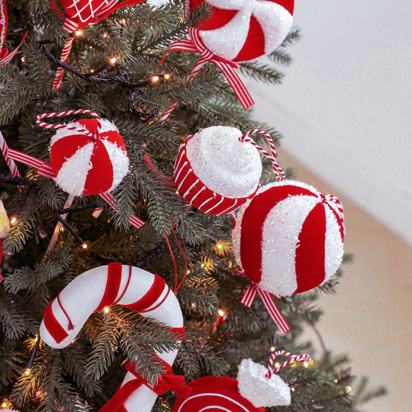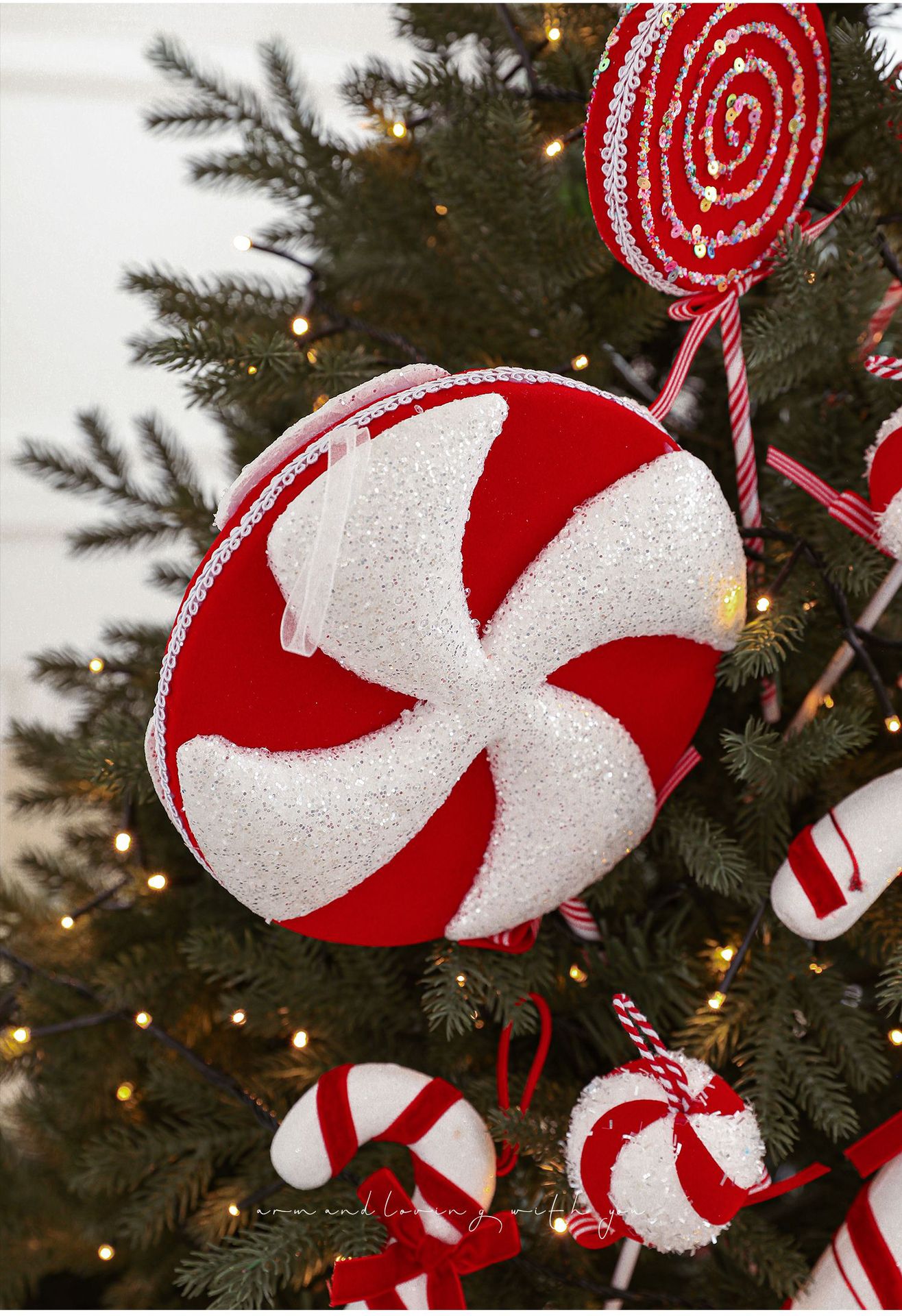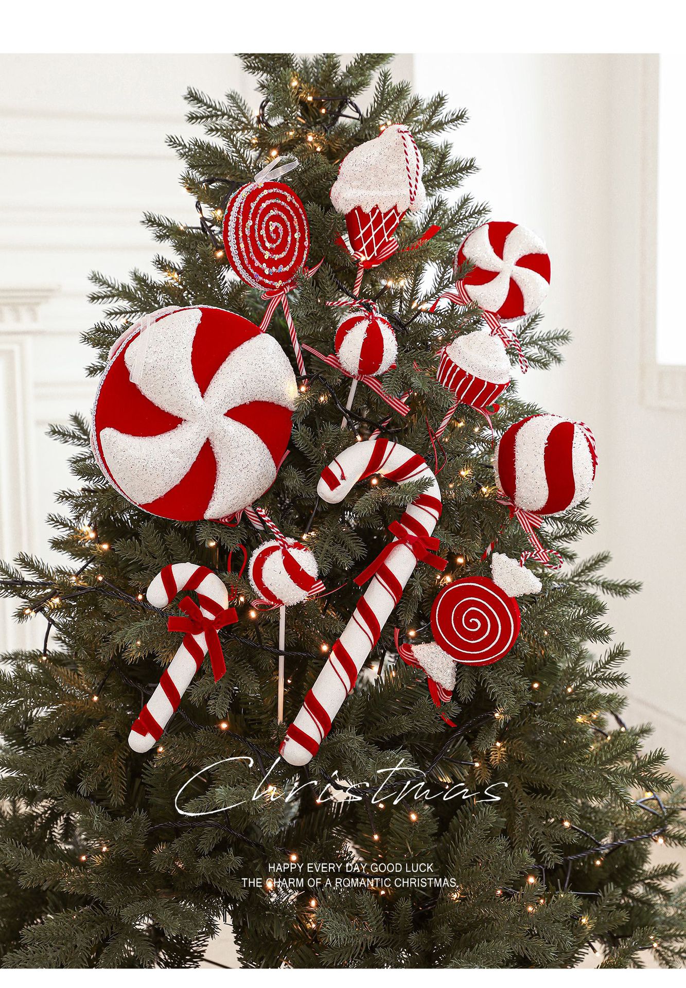 New Christmas decorations red and white flannel candy Christmas ball Christmas tree pendant scene decoration props
