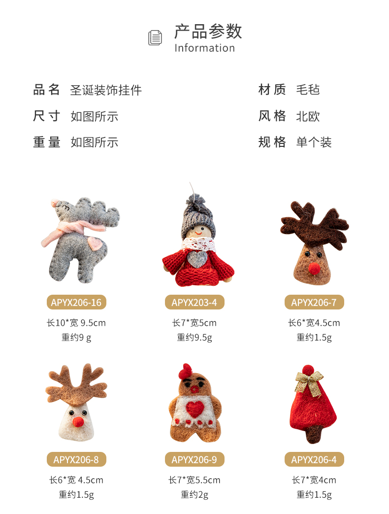 Christmas decorations creative Christmas tree cartoon elk felt pendant DIY material small doll Christmas gifts