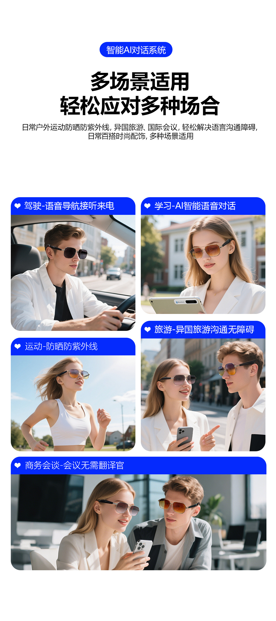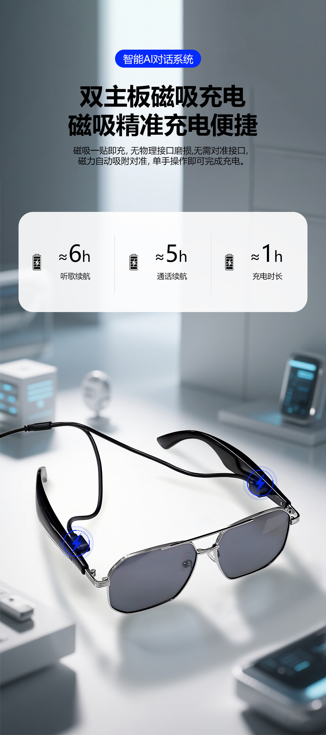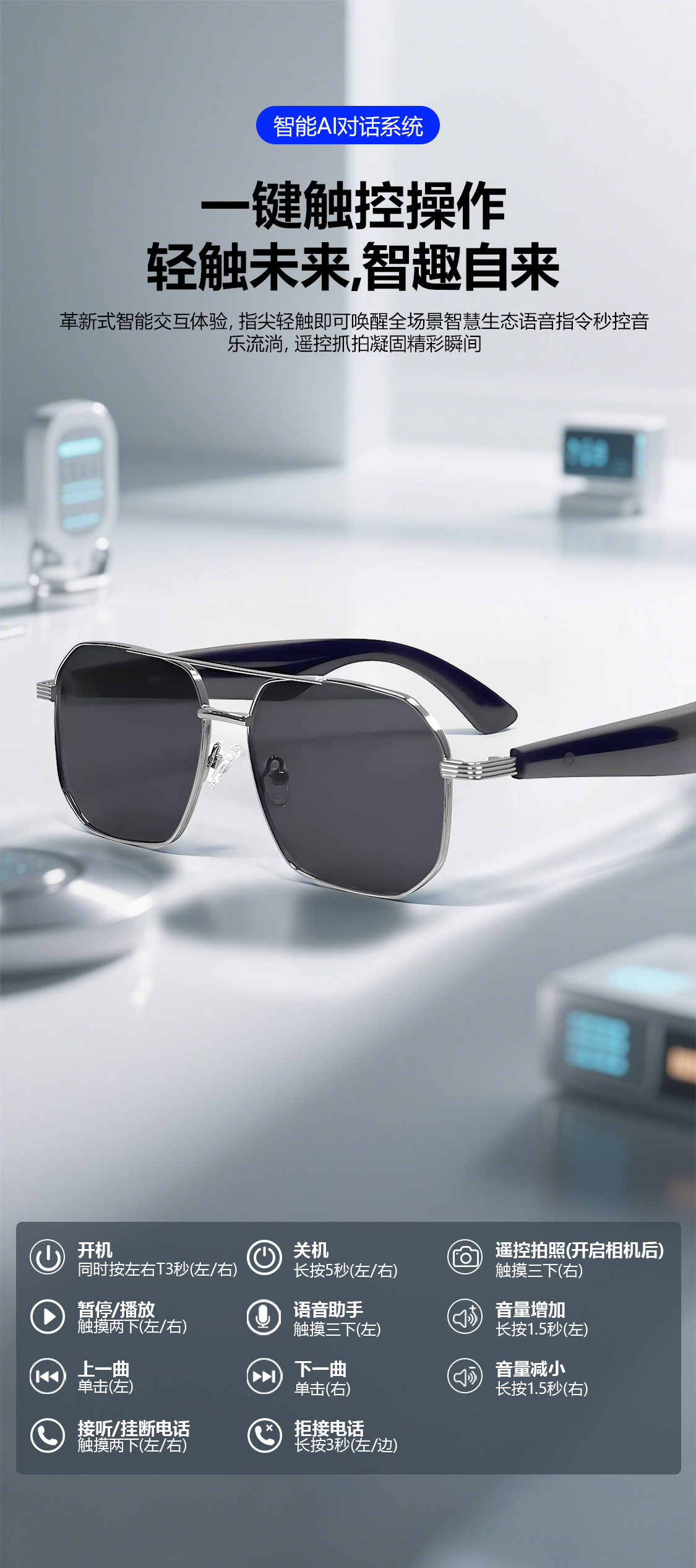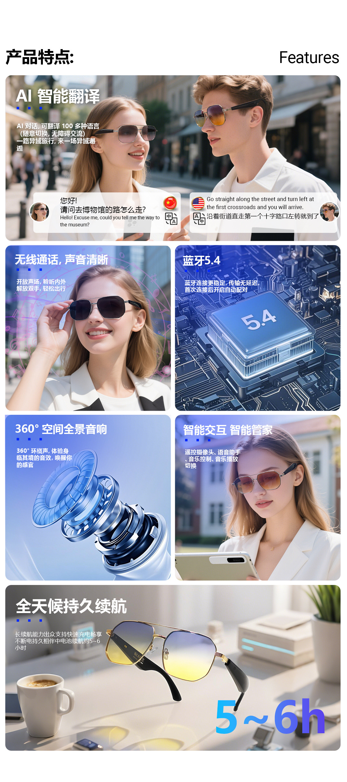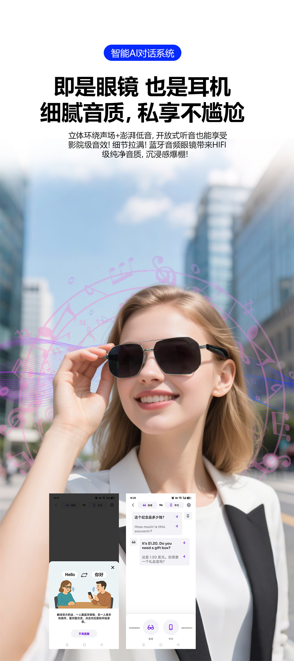 GY300 AI Translation Bluetooth Glasses More than 100 Languages Real-time Translation Glasses Listening to Songs and Calling Smart Glasses