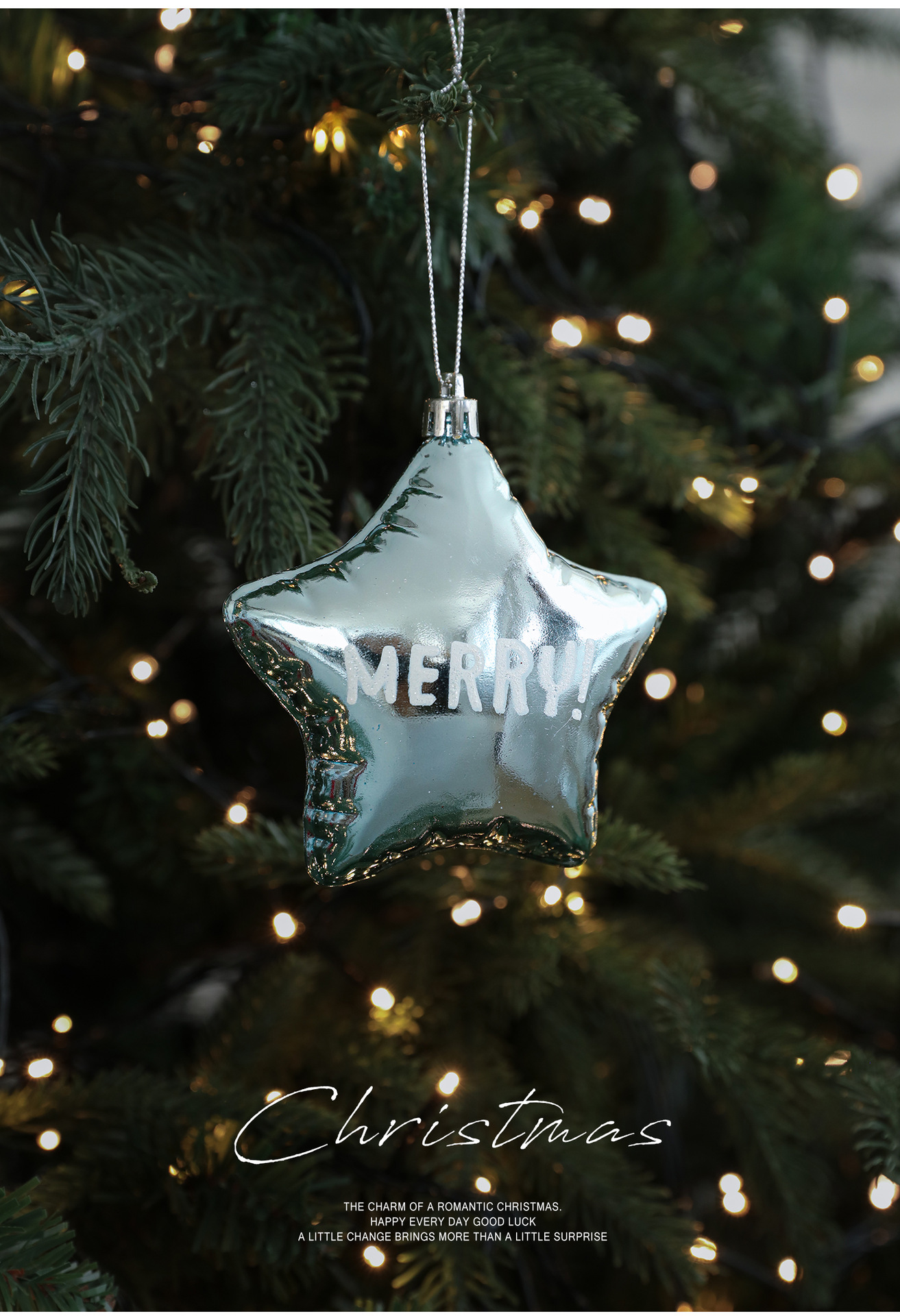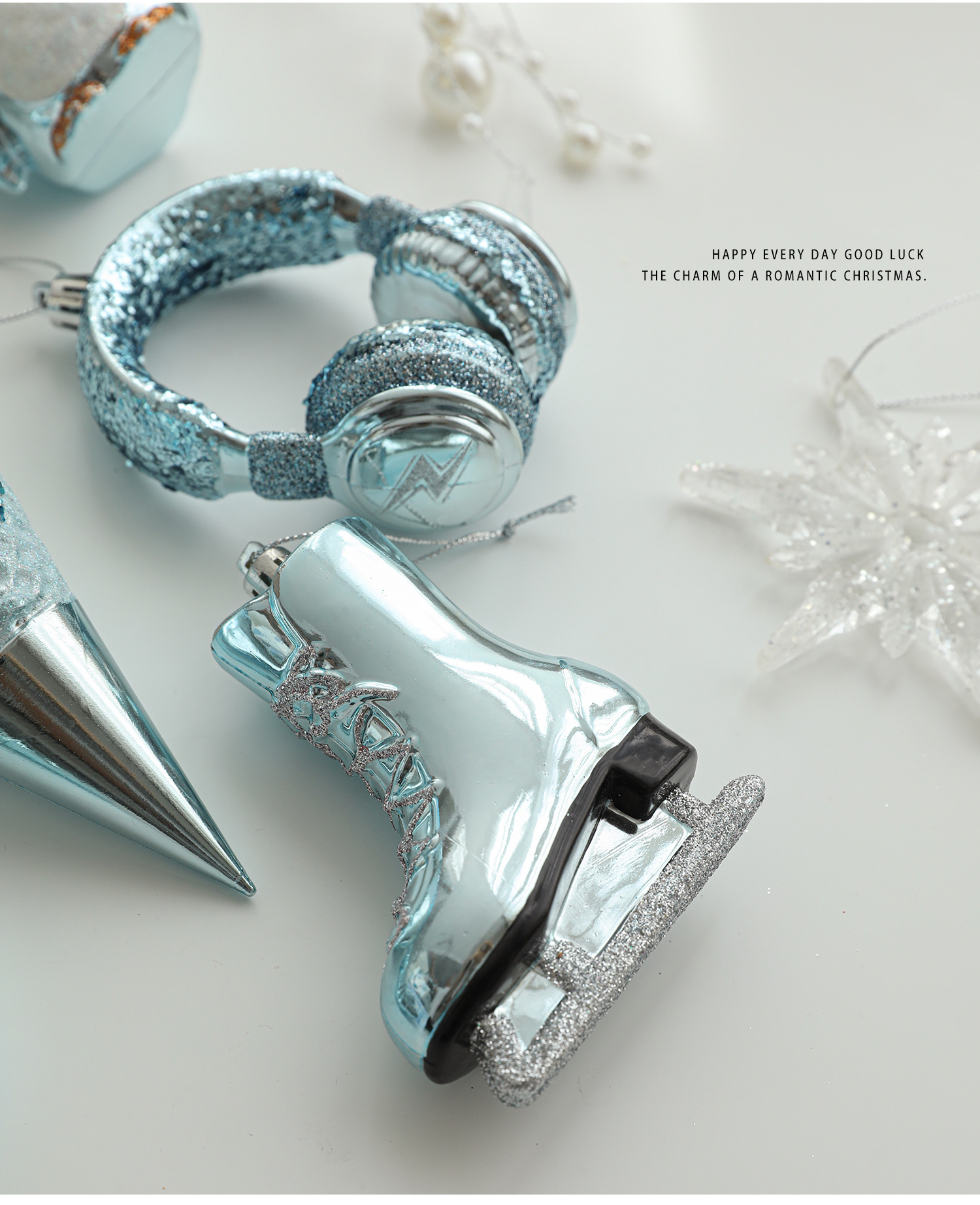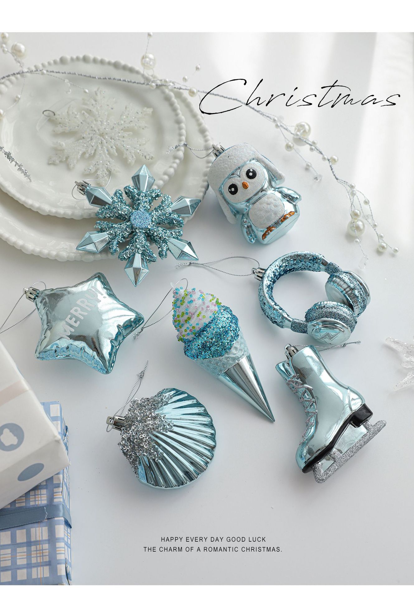 Cross-border blue plastic pendant sticky powder Christmas tree window ornament five-pointed star snowflake cartoon decoration scene layout
