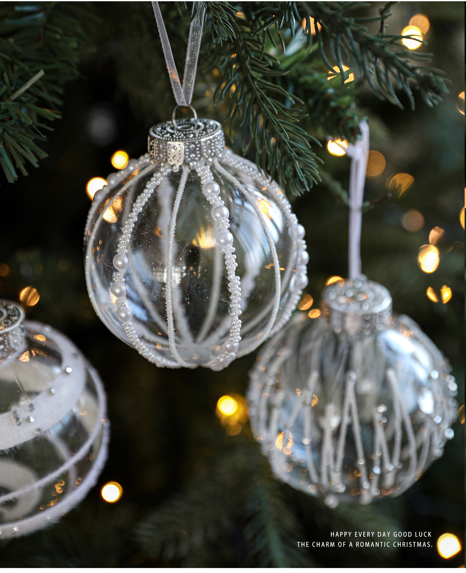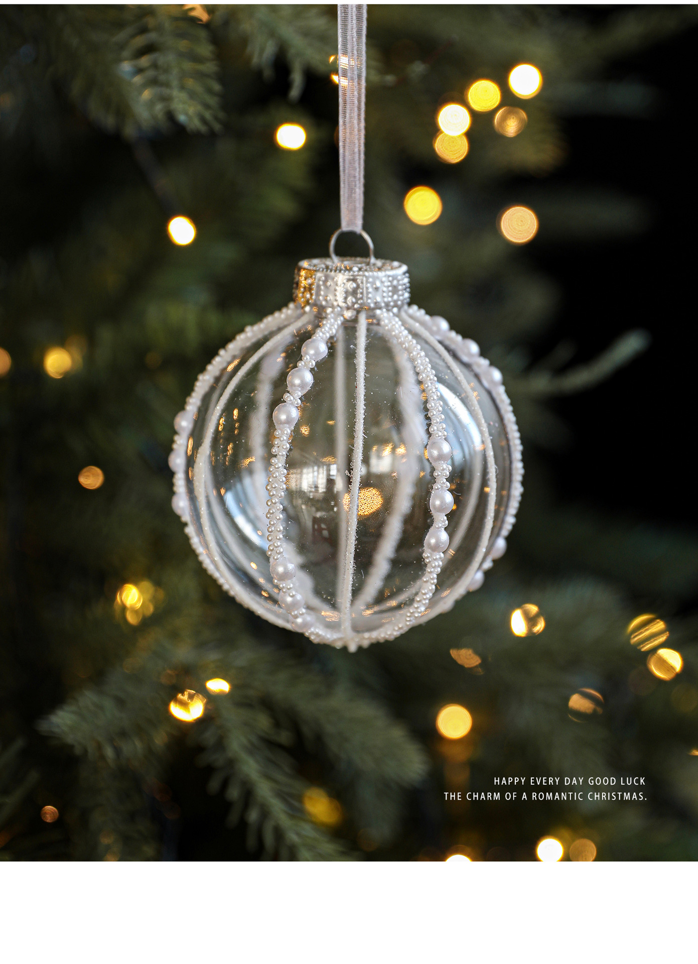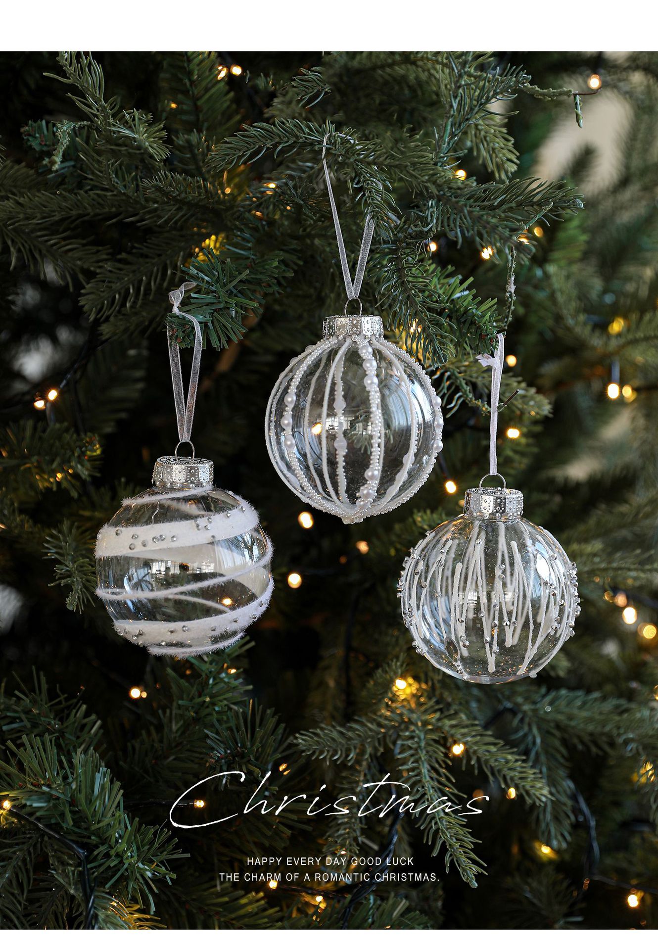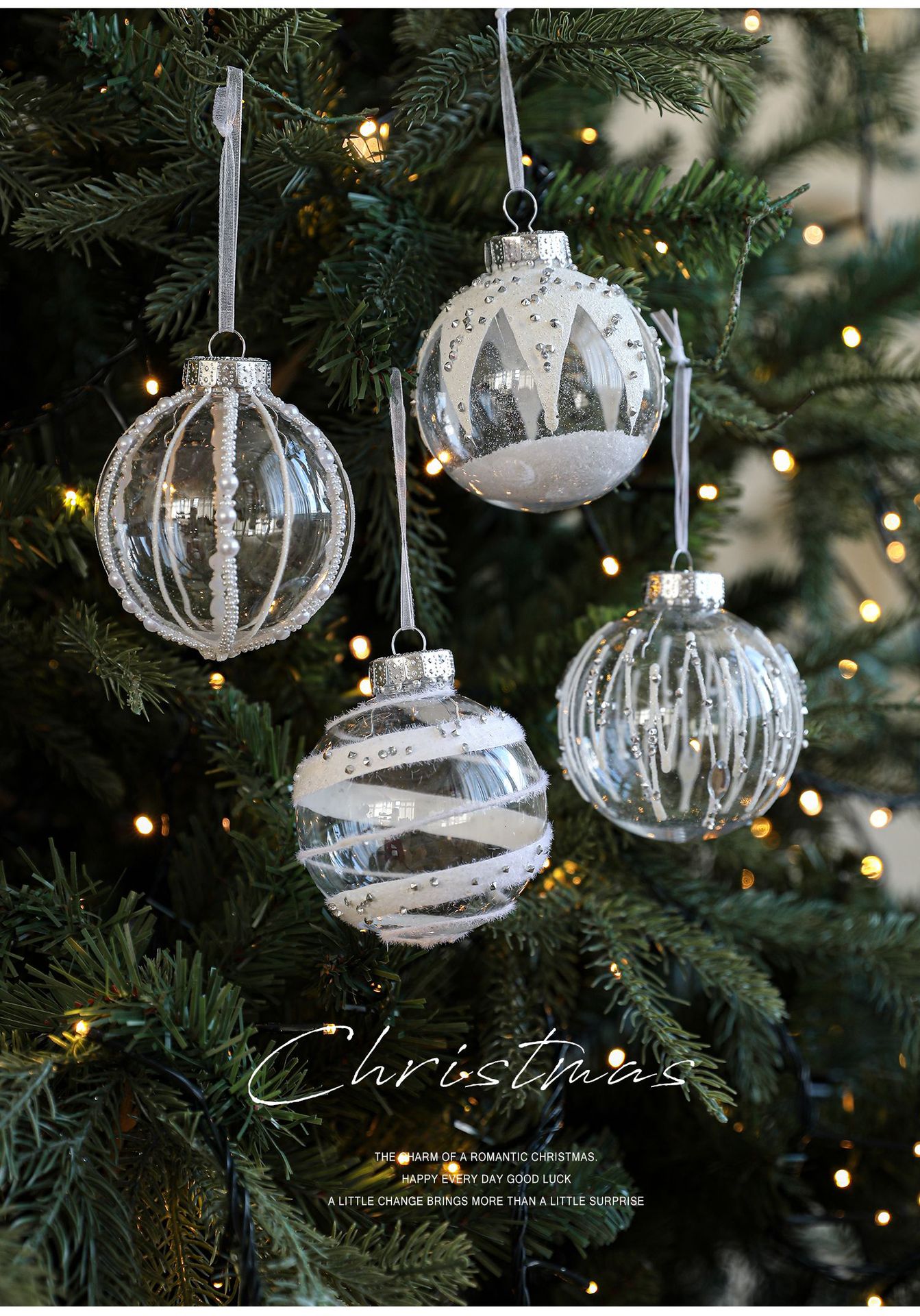 8CM plastic transparent ball Christmas ball stripe sticky white pearl drop ball Christmas tree decoration scene arrangement