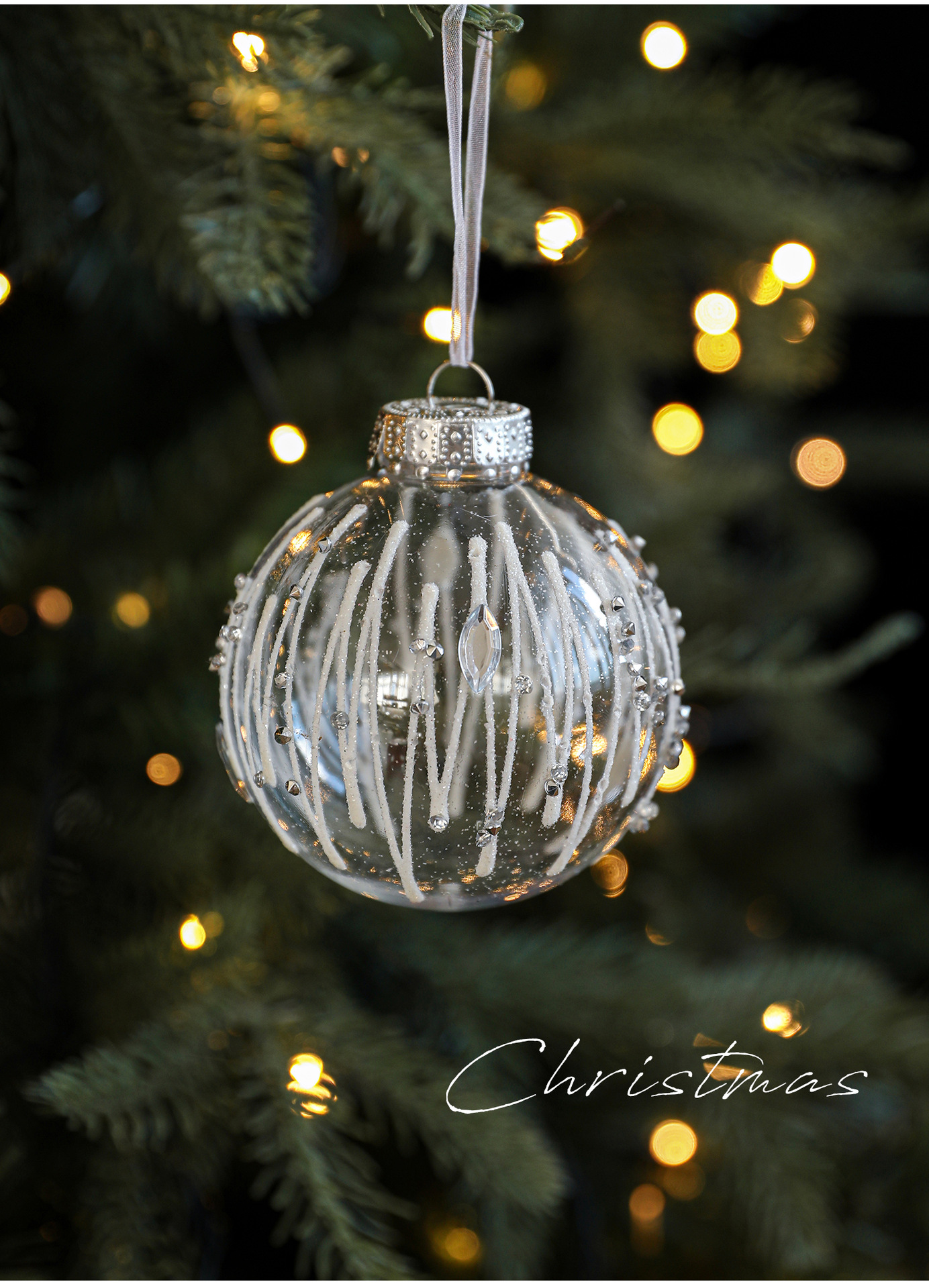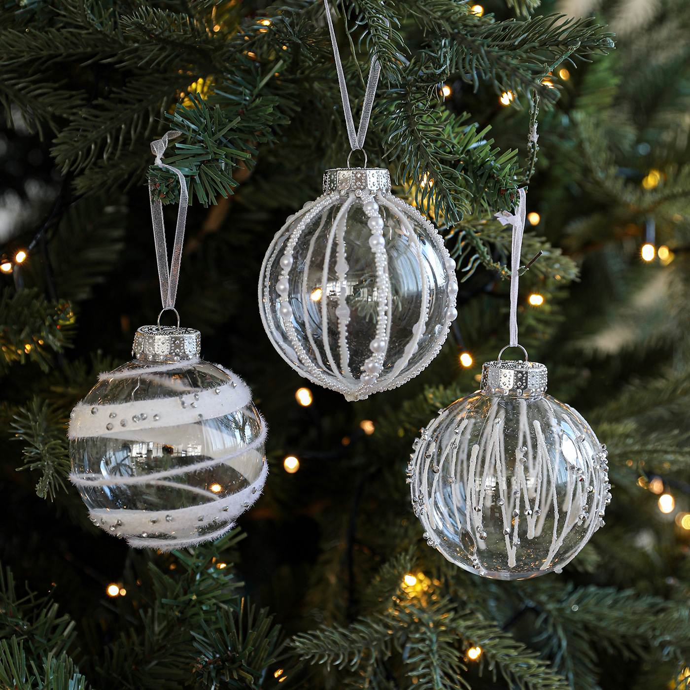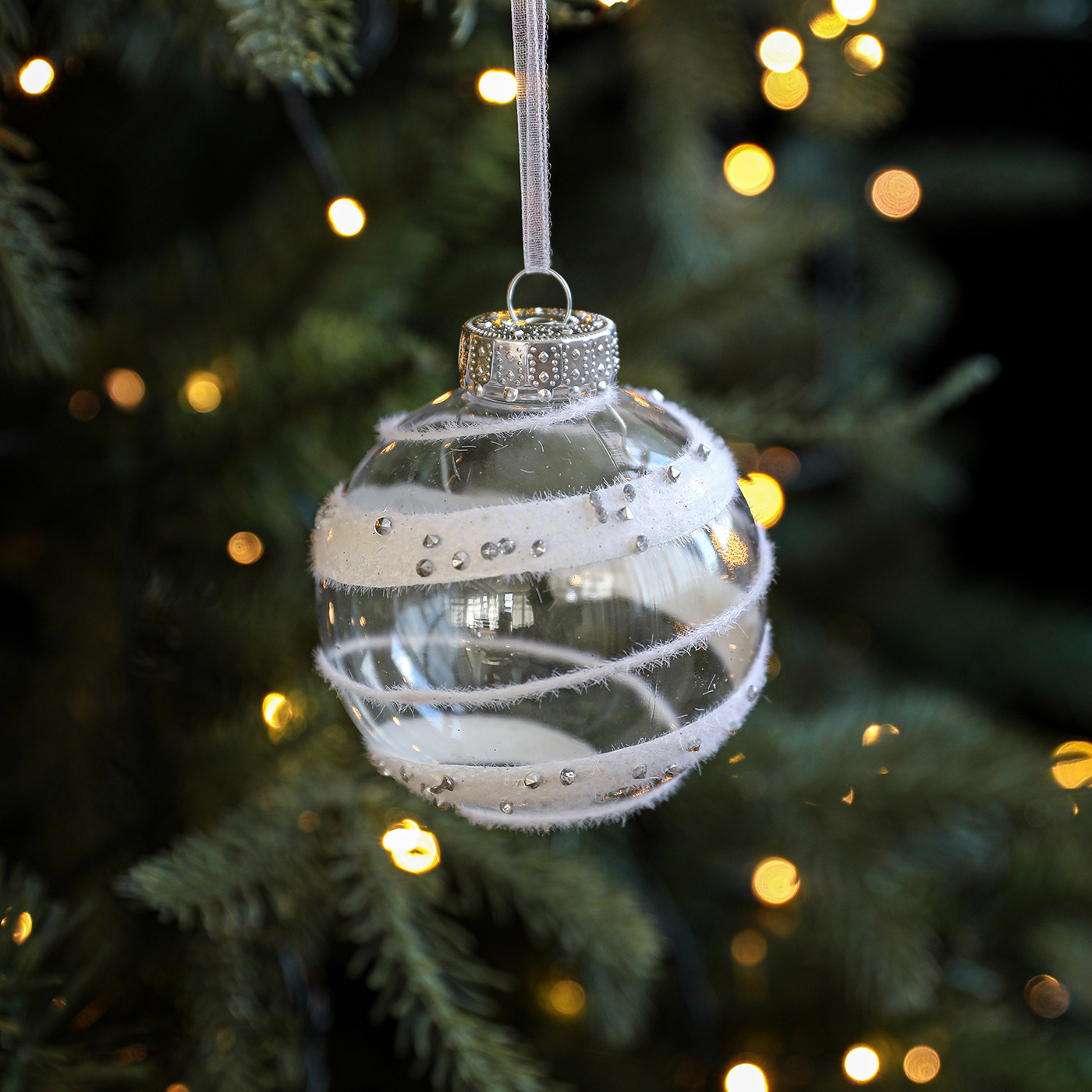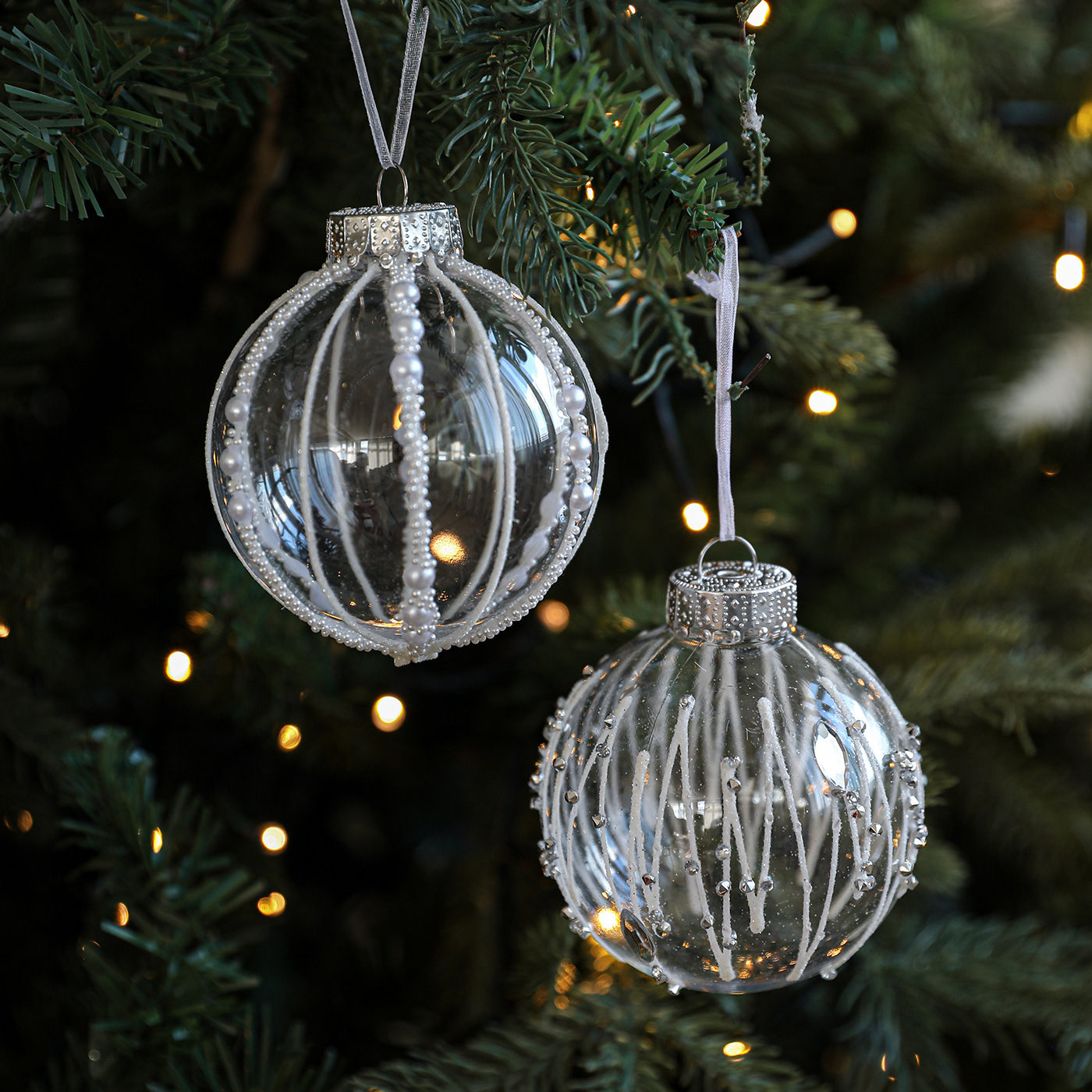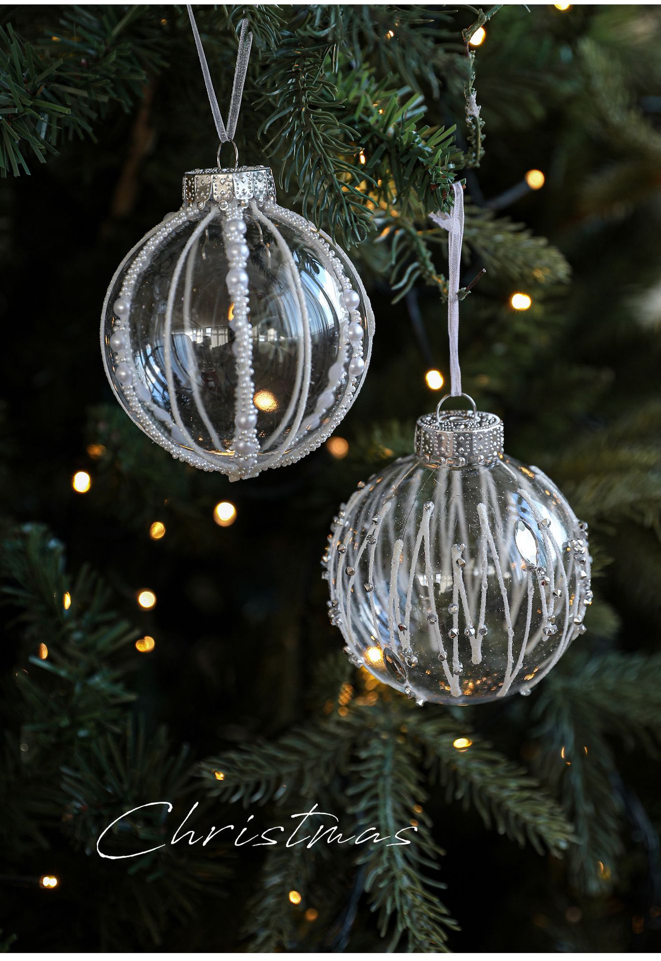 8CM plastic transparent ball Christmas ball stripe sticky white pearl drop ball Christmas tree decoration scene arrangement