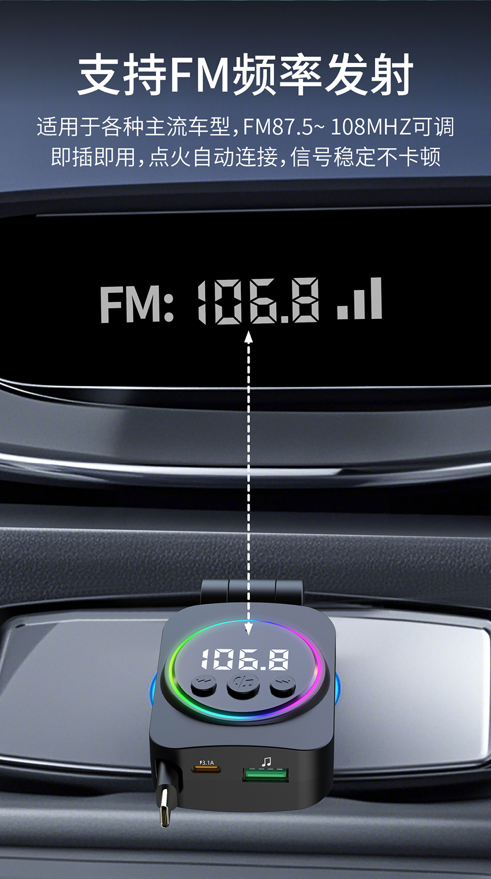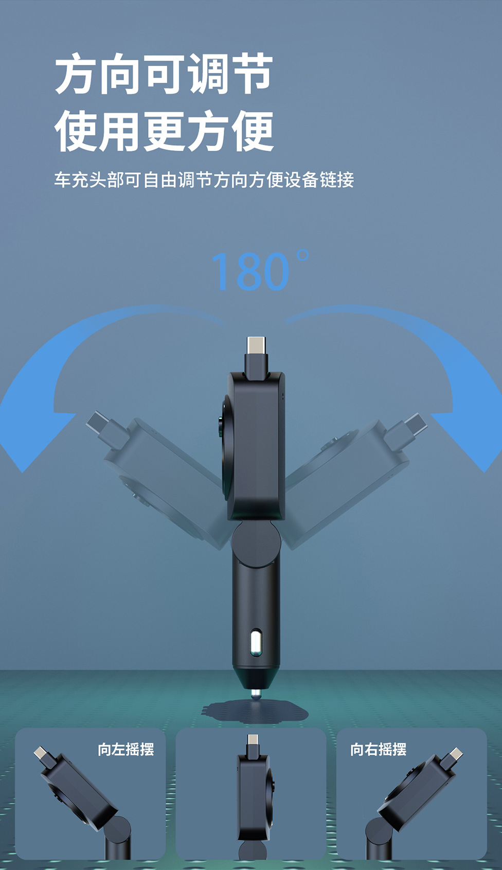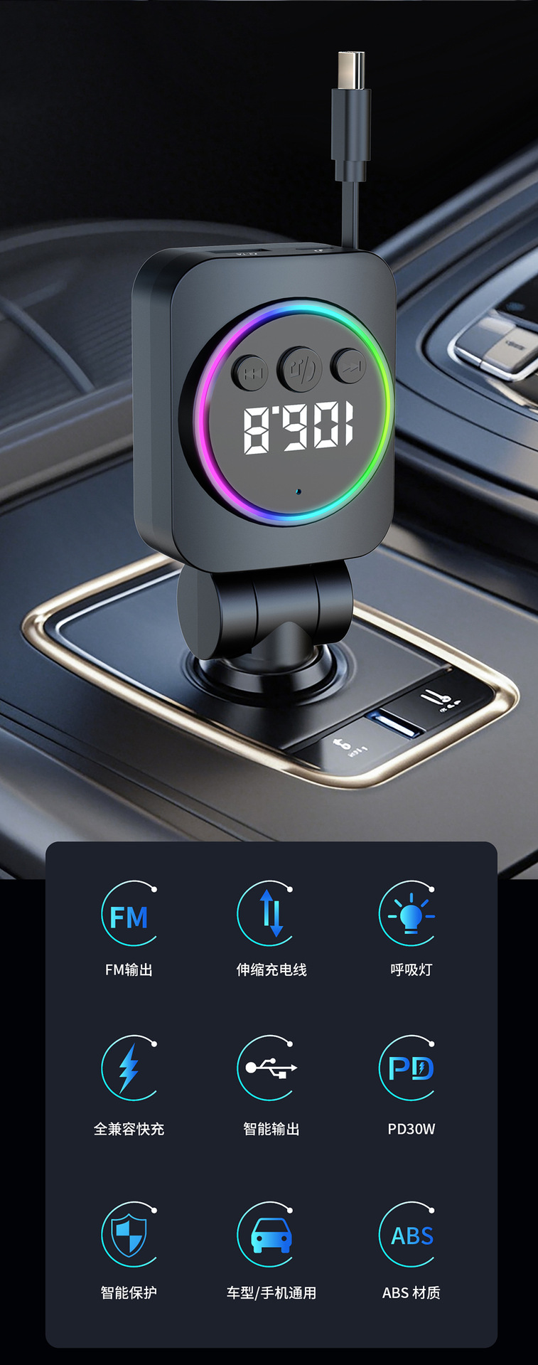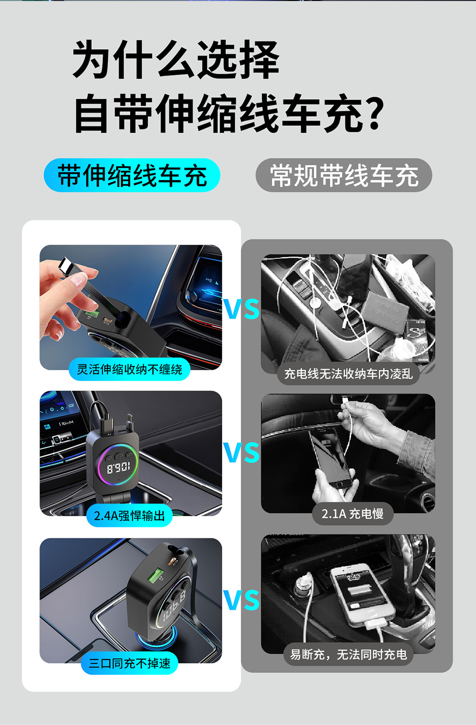 Telescopic Cord Car Charger Fast Charging 45W Digital Display Multi-function 3-in-1 Car Cigarette Lighter Car Charger Durable