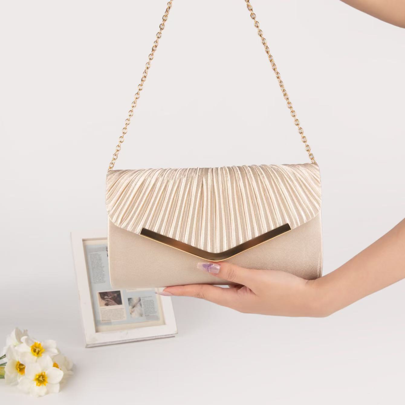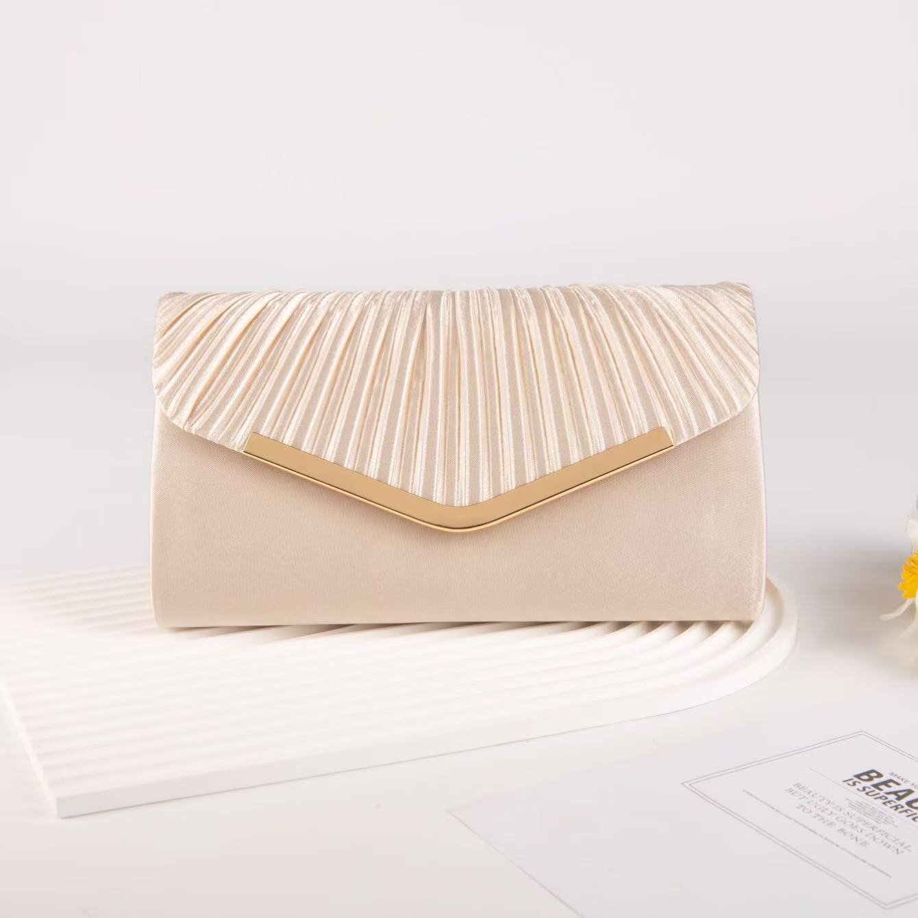 Cross-border new satin dinner bag high-end banquet clutch bag crossbody ladies celebrity pleated high-end envelope bag
