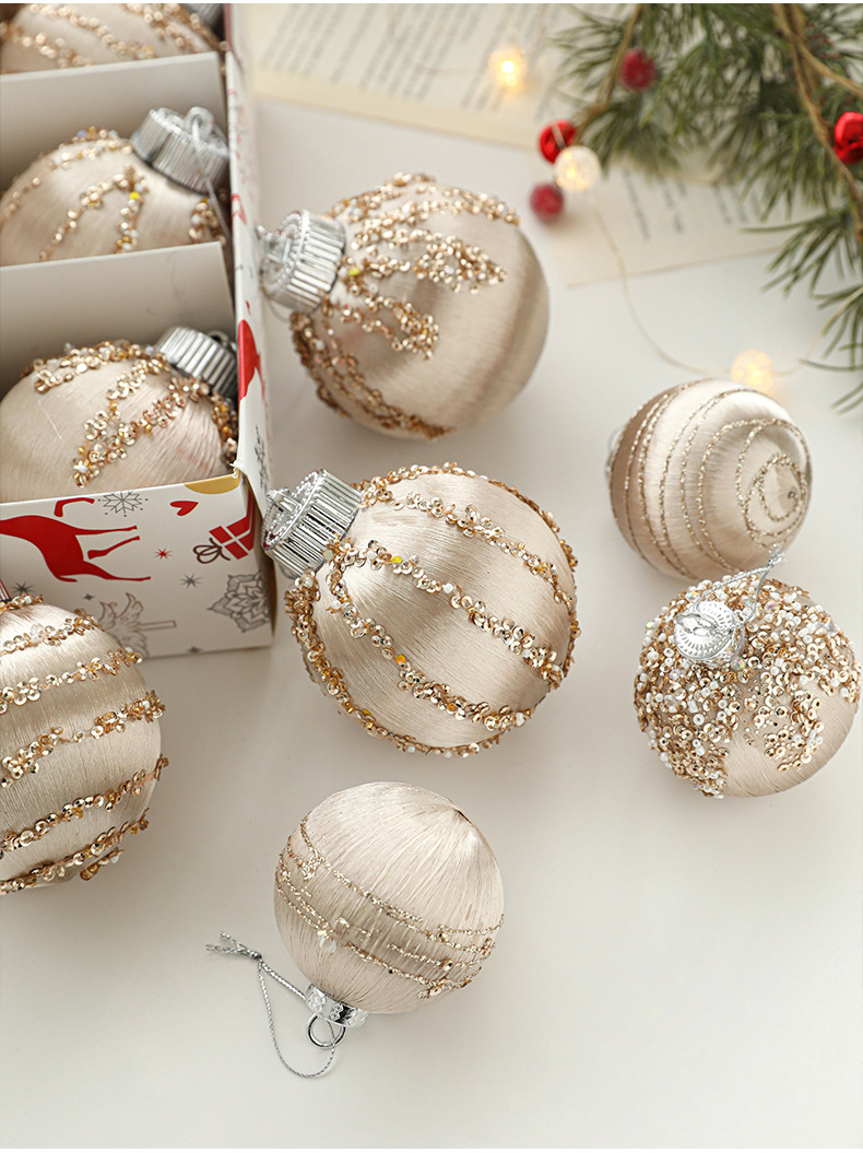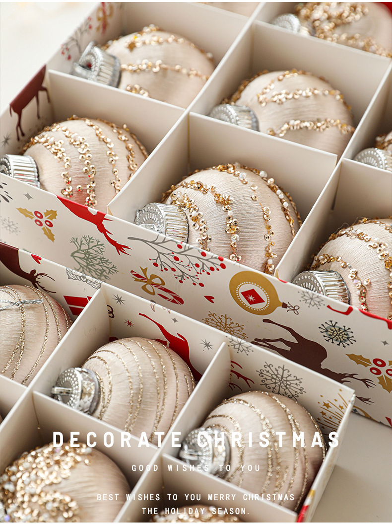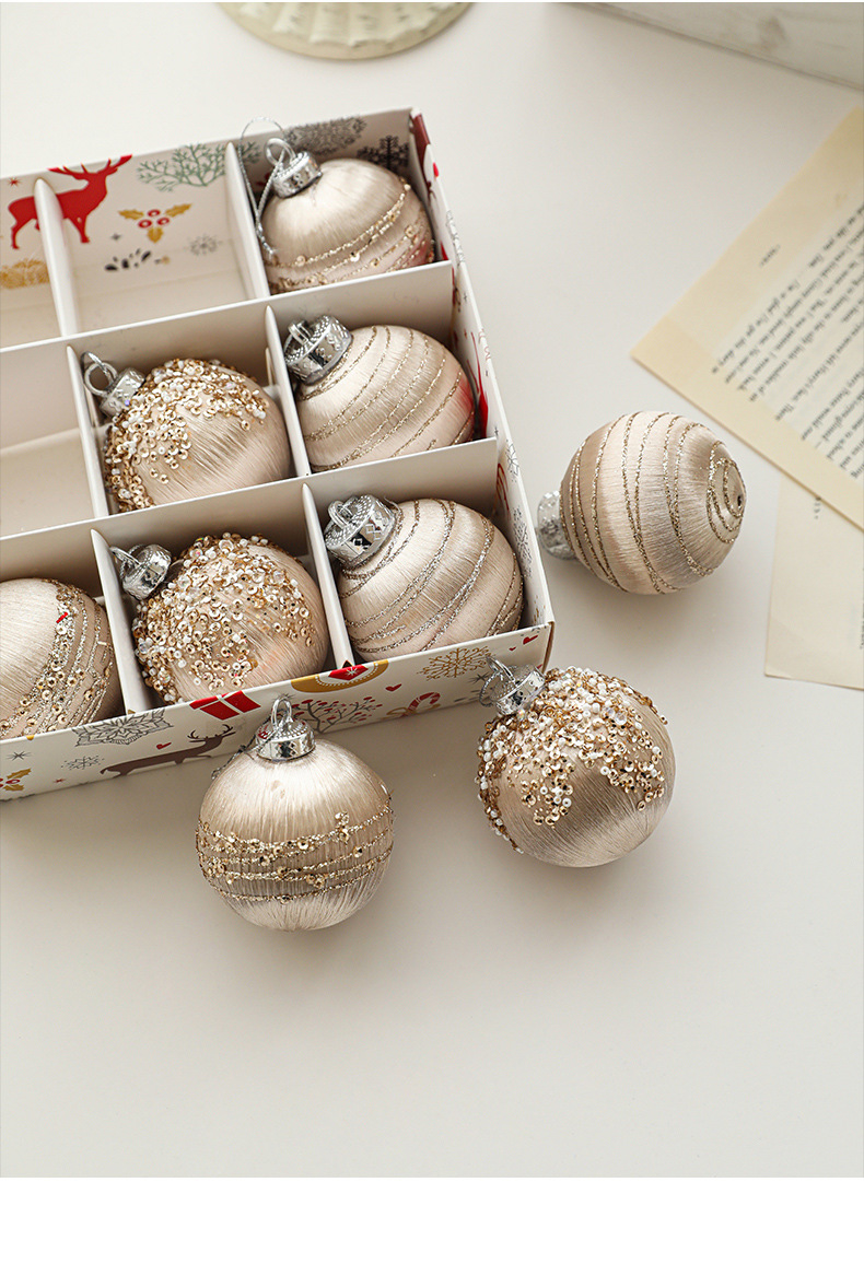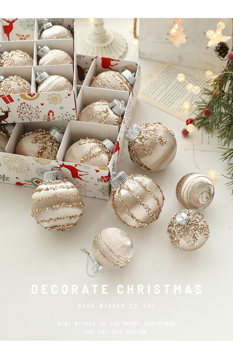 Champagne Christmas Ball Set Sticky Powder Line Foam Silk Ball Fantastic Plastic Ball Box Christmas Tree Pendant Decoration