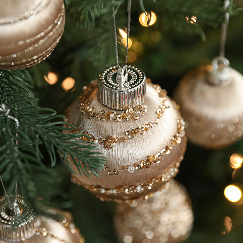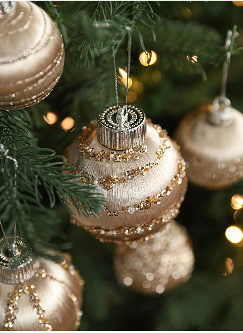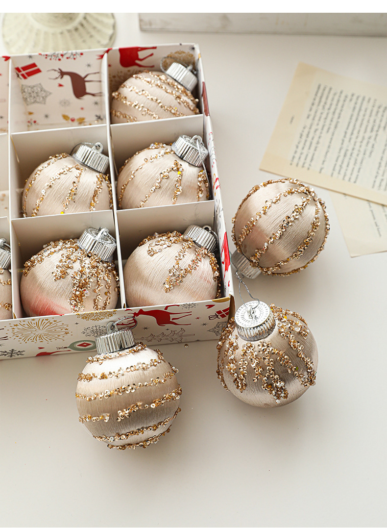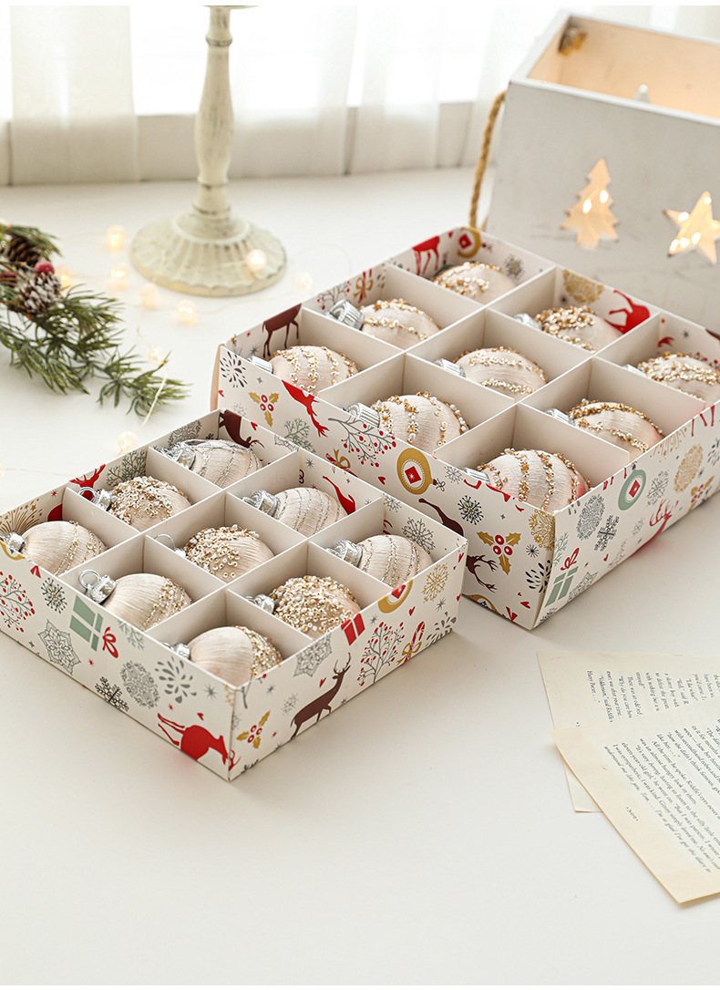 Champagne Christmas Ball Set Sticky Powder Line Foam Silk Ball Fantastic Plastic Ball Box Christmas Tree Pendant Decoration