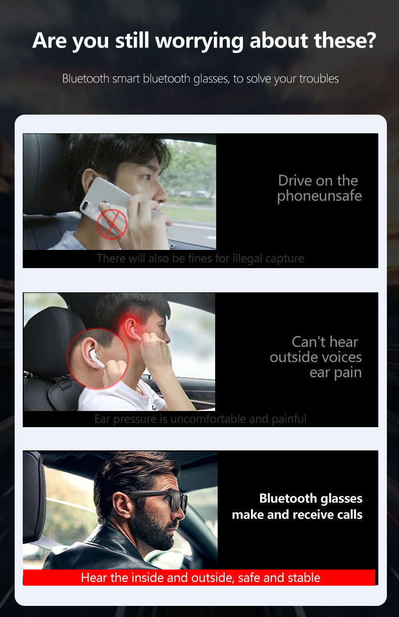 Smart glasses Driver's sunglasses anti-blue light Bluetooth headset AI audio glasses Free your ears