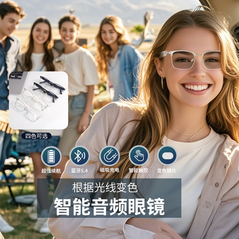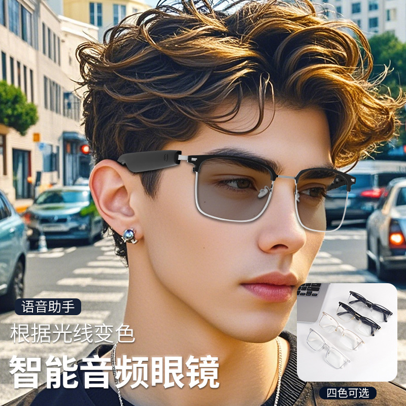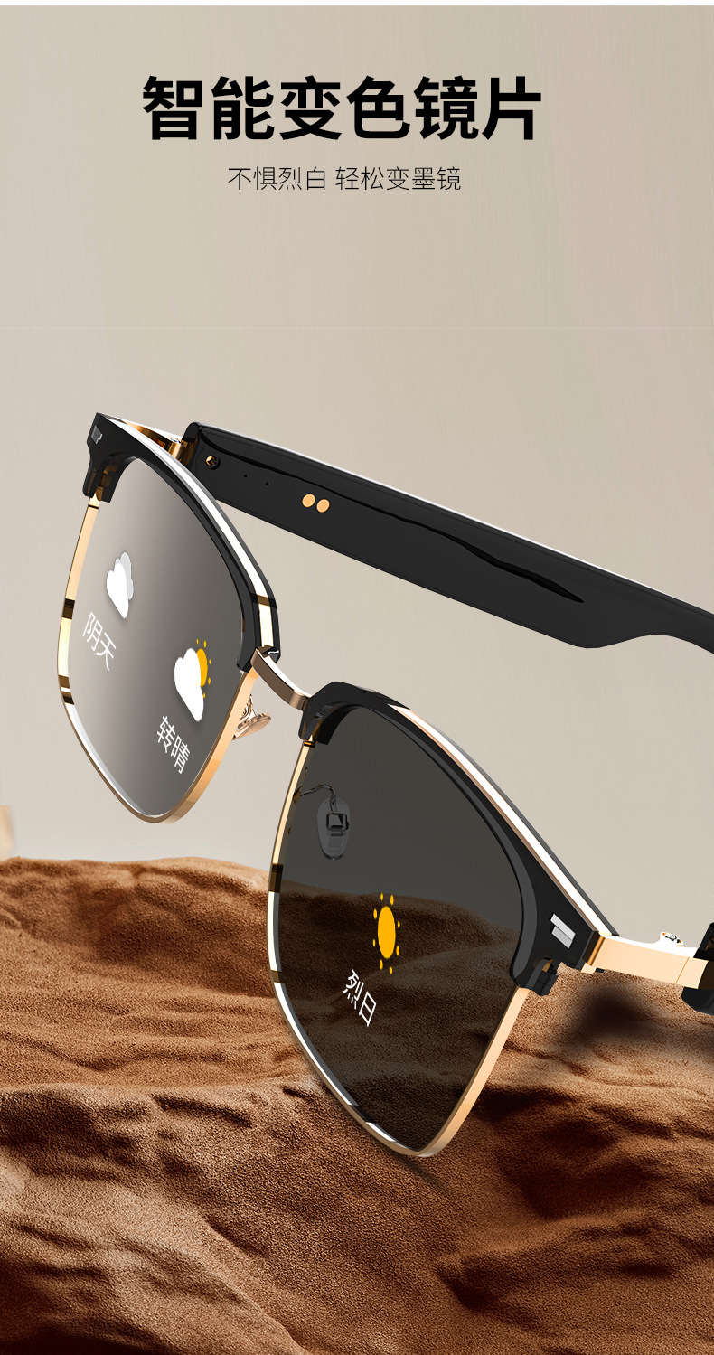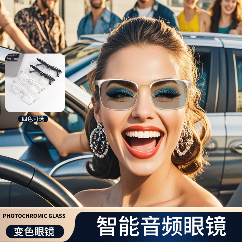 Cross-border business smart audio Bluetooth glasses blue light color-changing listening to calls high-end plates interchangeable lenses and sunglasses