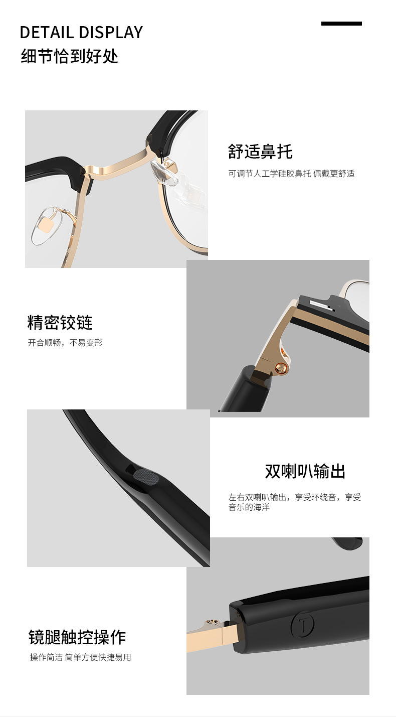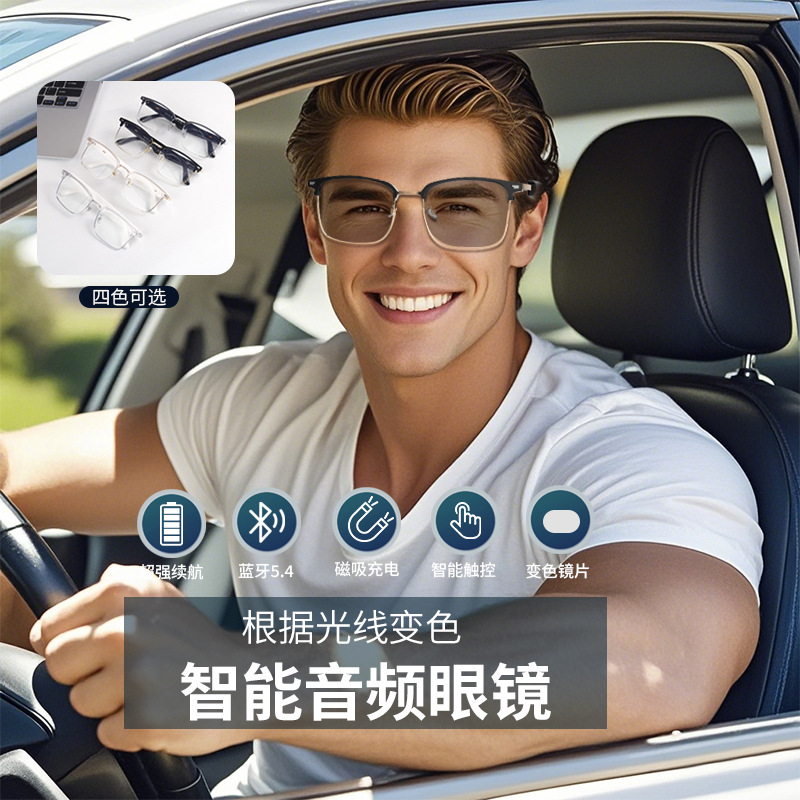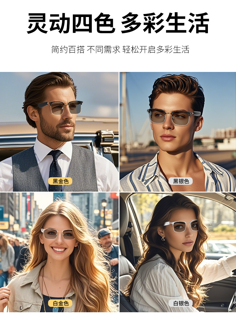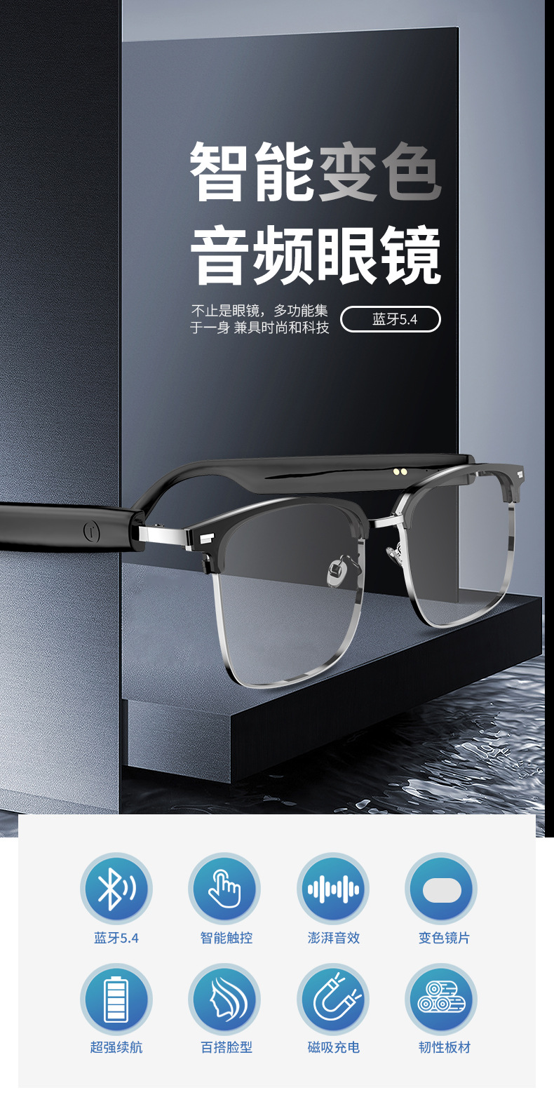 Cross-border business smart audio Bluetooth glasses blue light color-changing listening to calls high-end plates interchangeable lenses and sunglasses