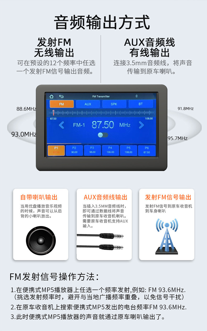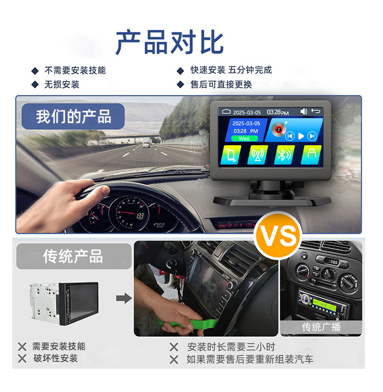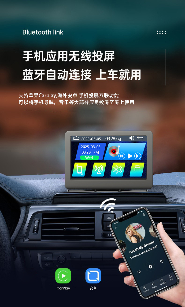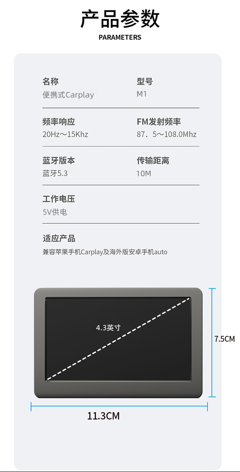4.3 inch wireless wired carplay car Bluetooth player FM transmits high-definition reversing image stereo