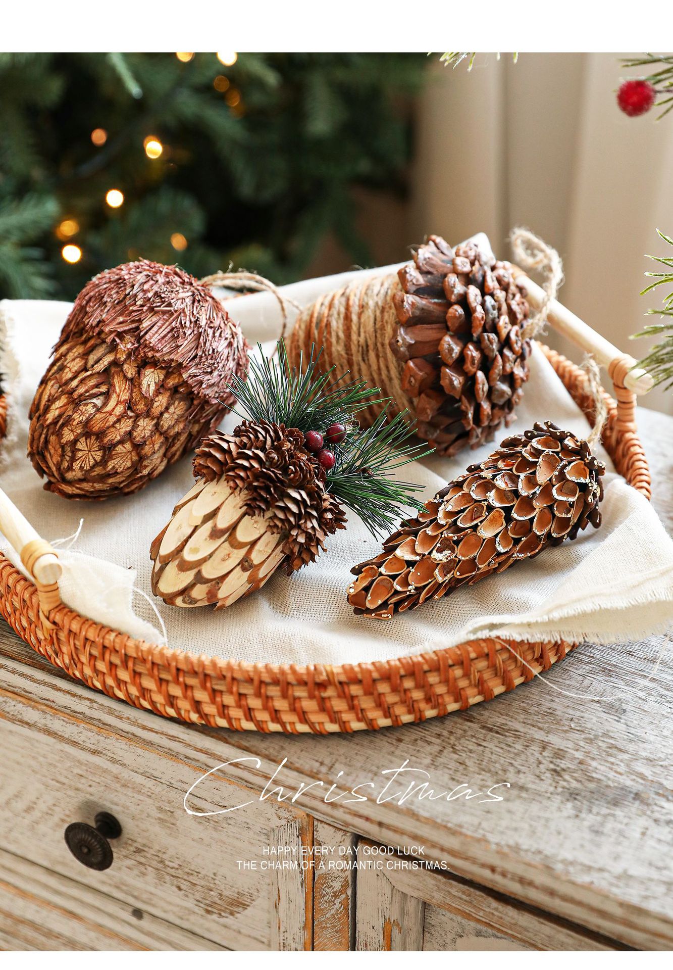 New Wooden Large Pine Cone Pendant Foam Christmas Tree Pendant Acorn Wood Chip Decoration Scene Arrangement Ornament
