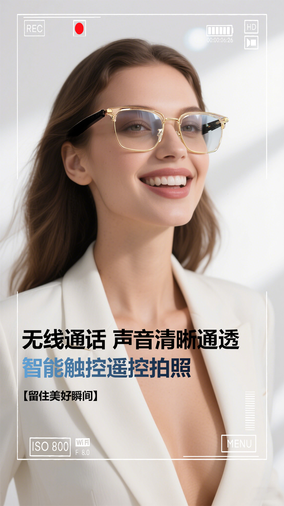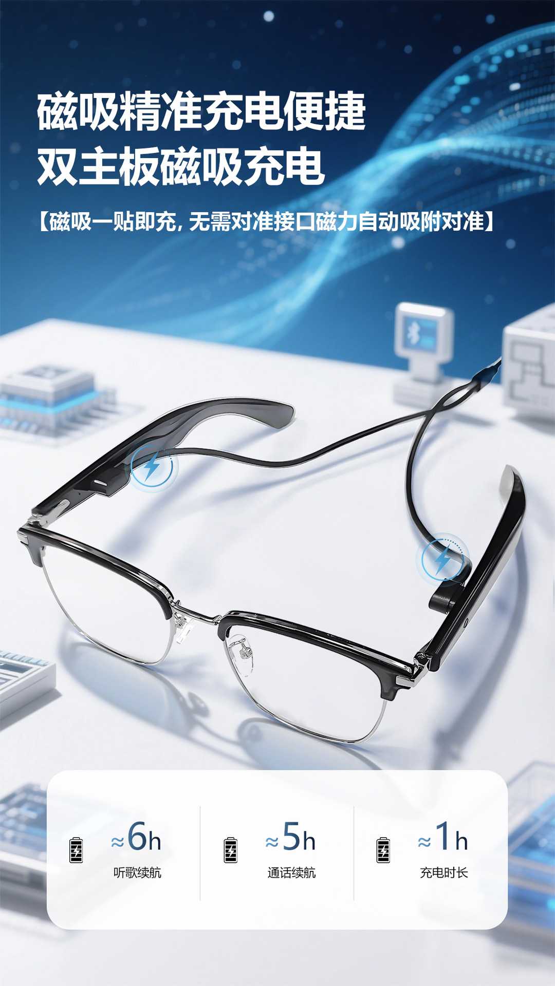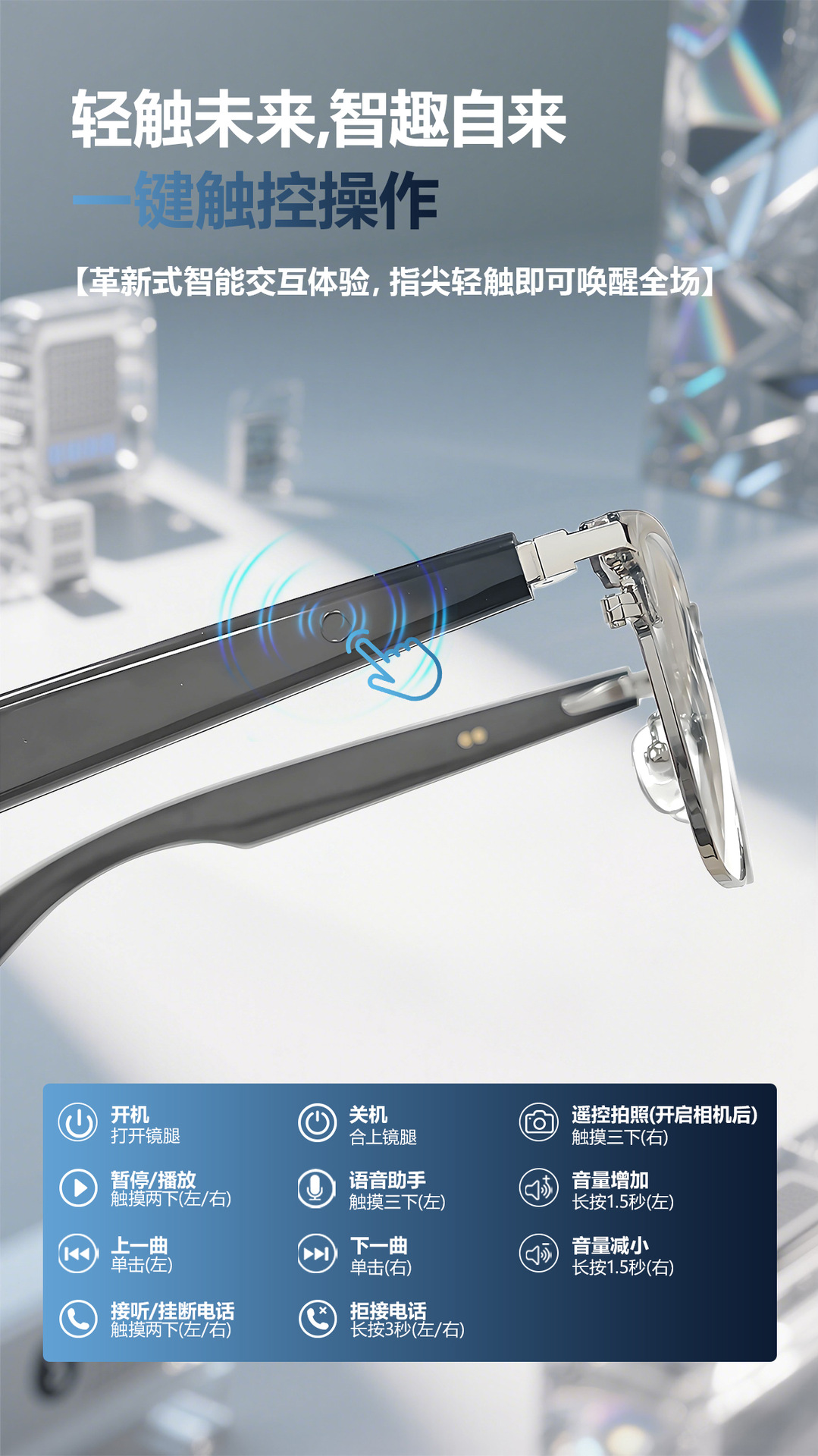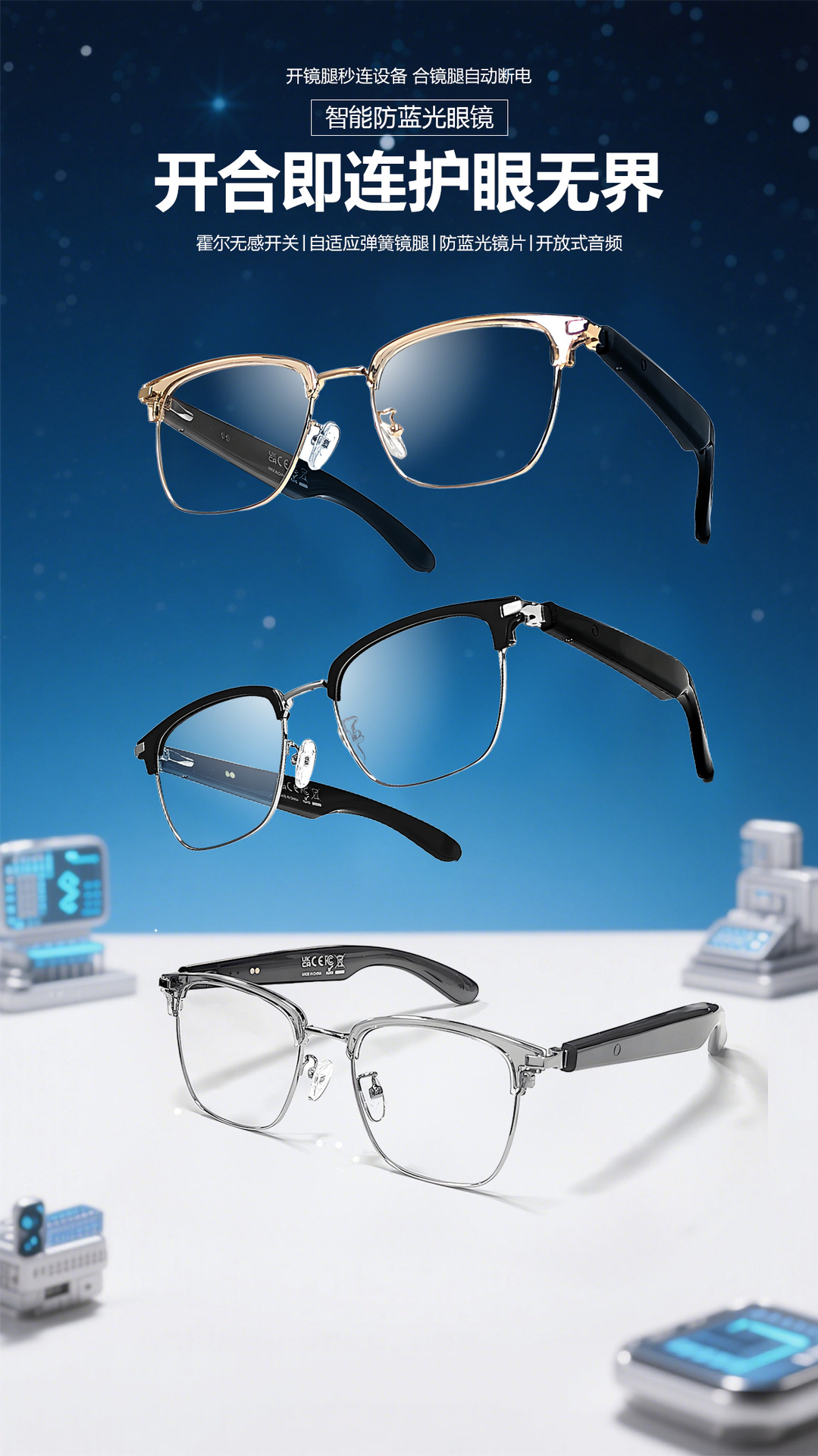 GT33 automatic on/off Bluetooth glasses metal spring hinge design AI smart glasses listening to songs and call glasses