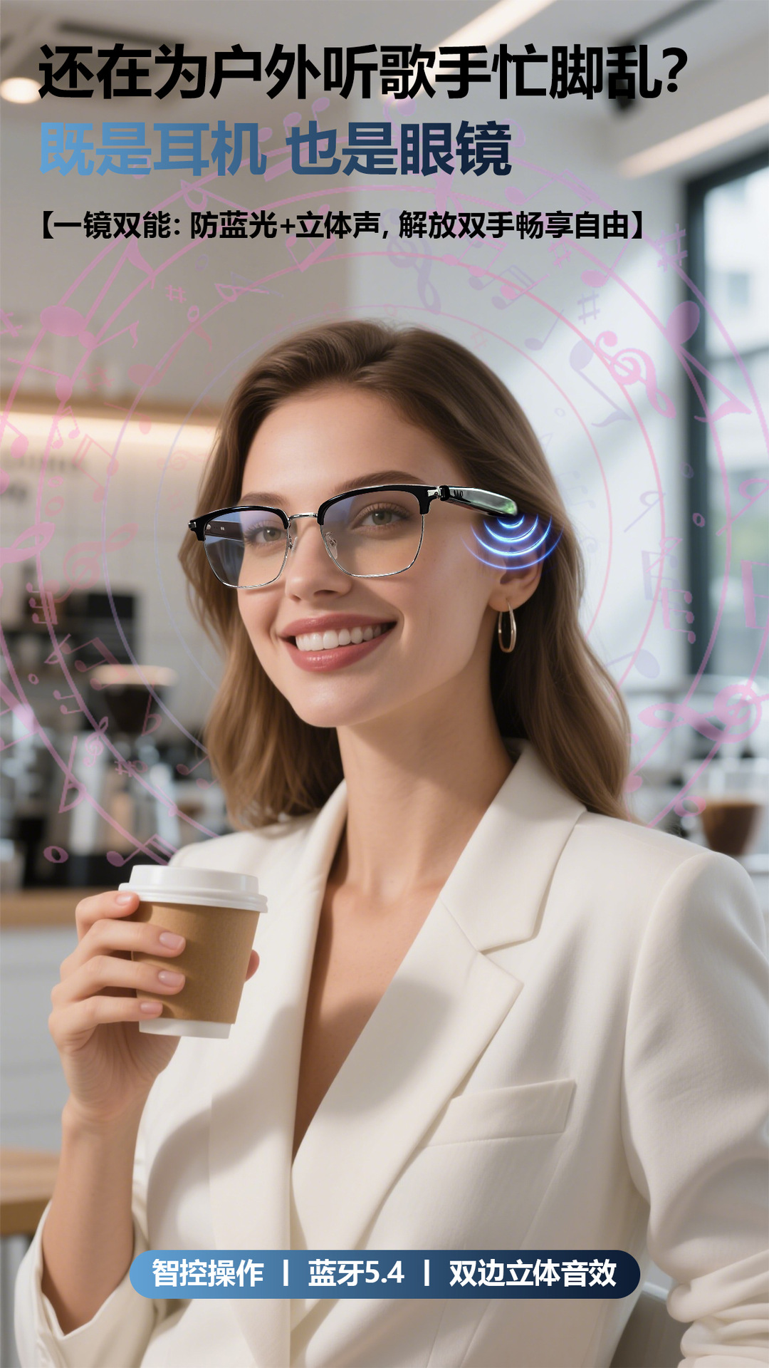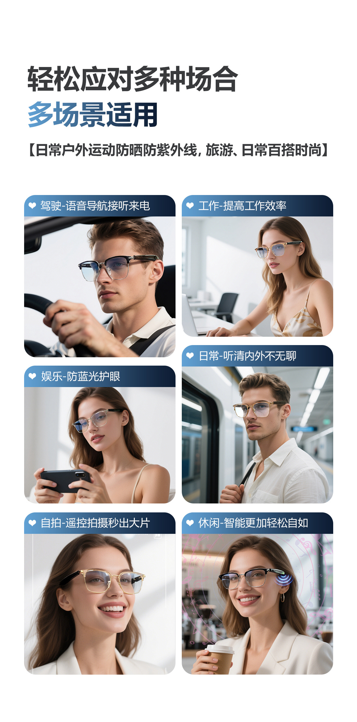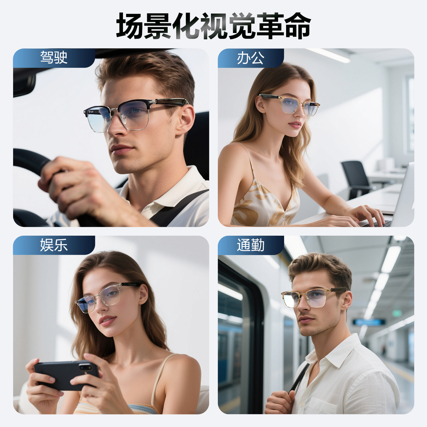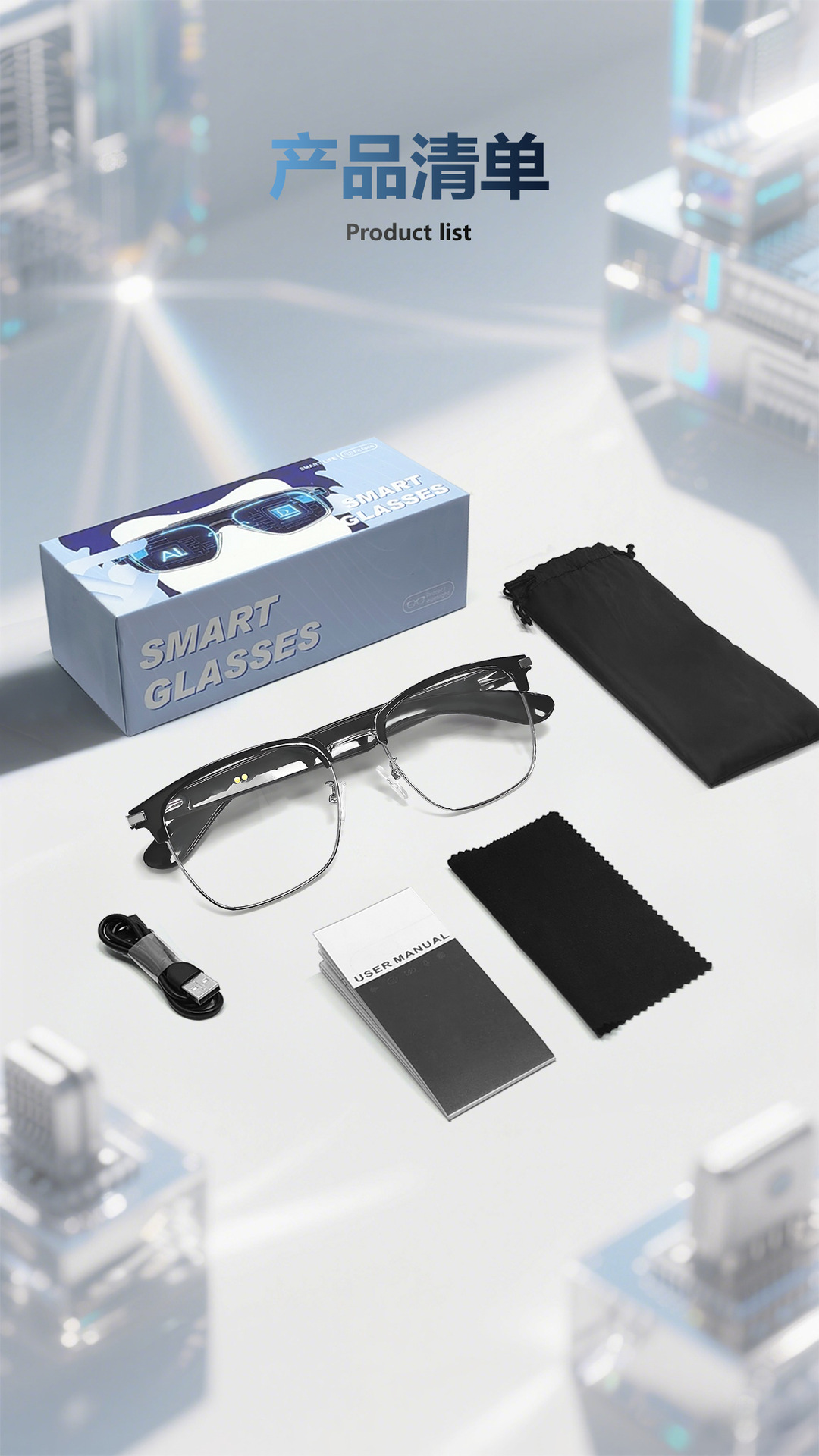 GT33 automatic on/off Bluetooth glasses metal spring hinge design AI smart glasses listening to songs and call glasses