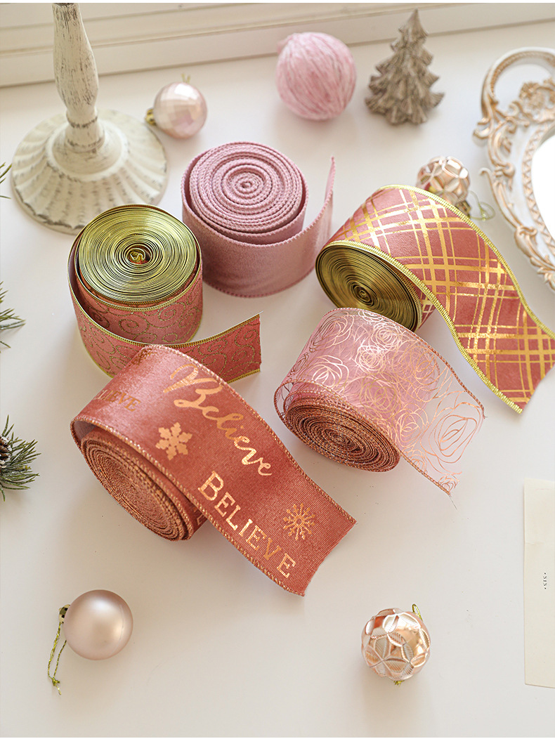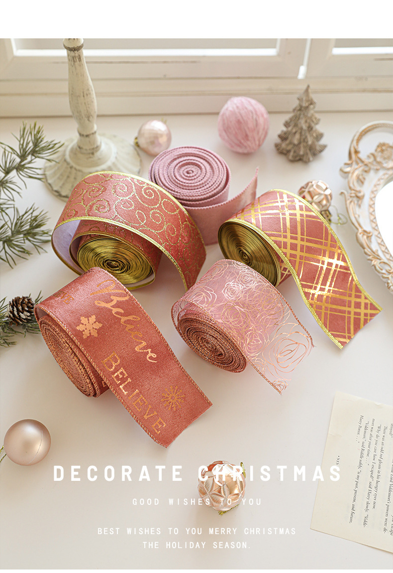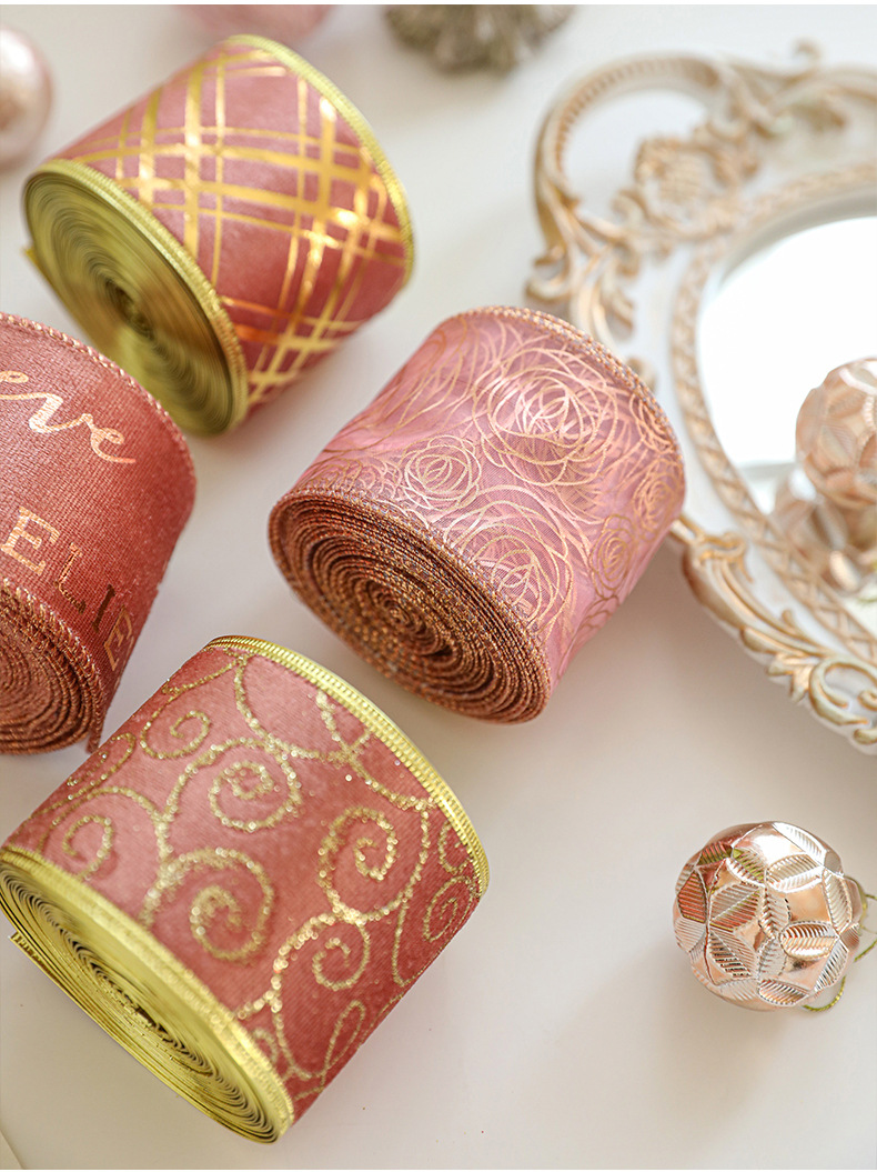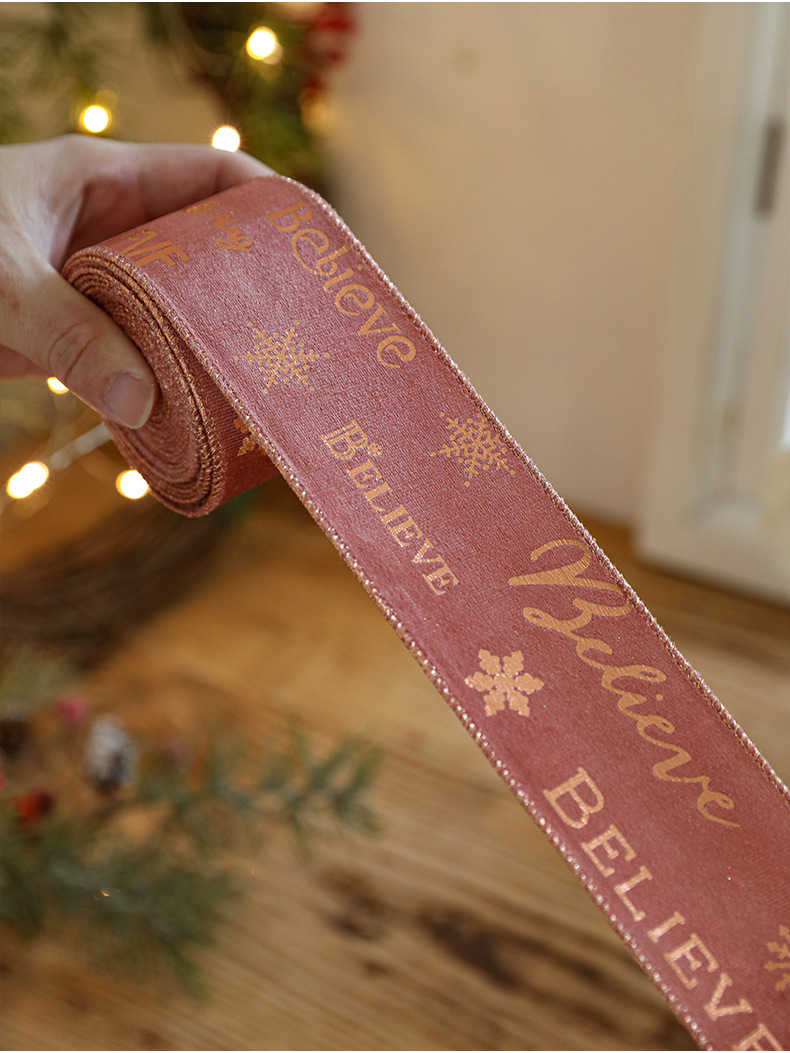 Christmas decoration webbing bow making streamer bronzing ribbon Christmas gift strap dress up printed ribbon