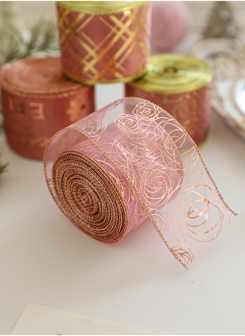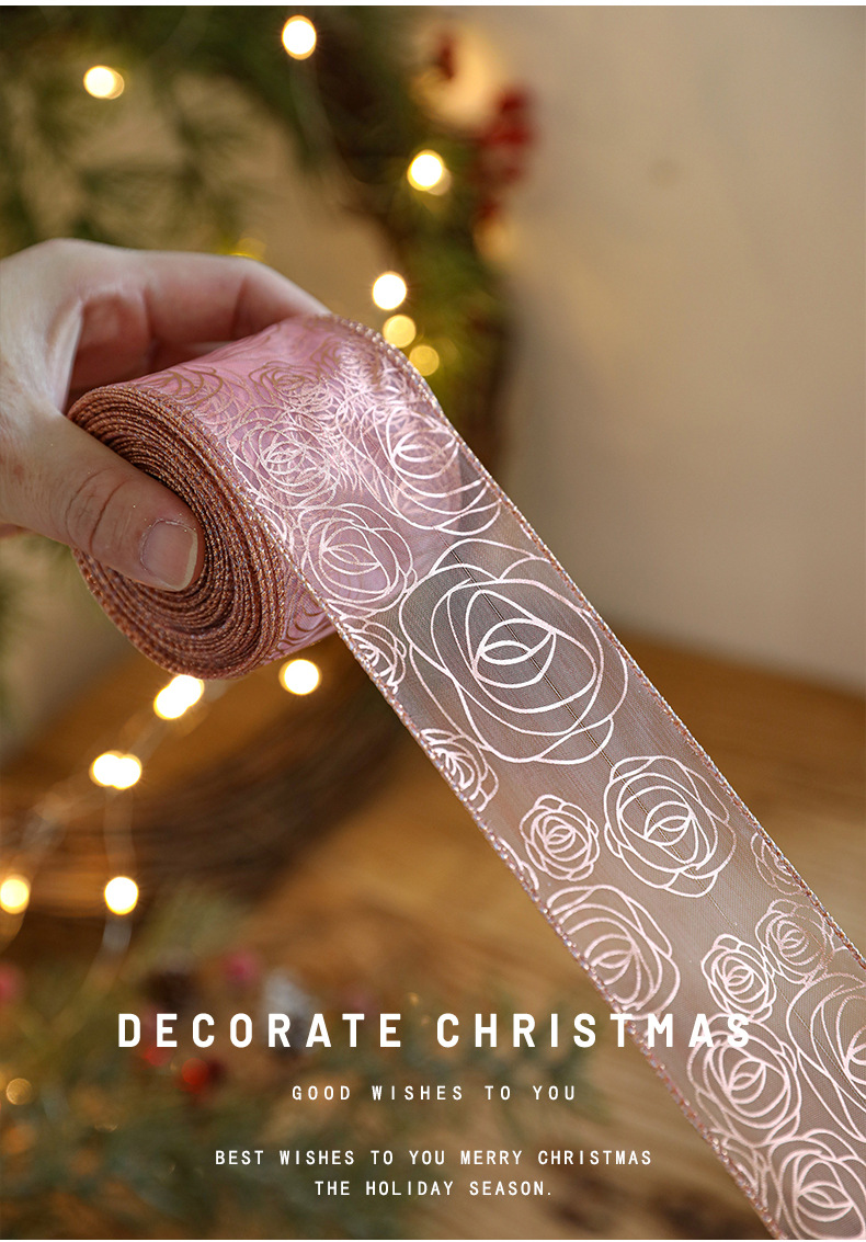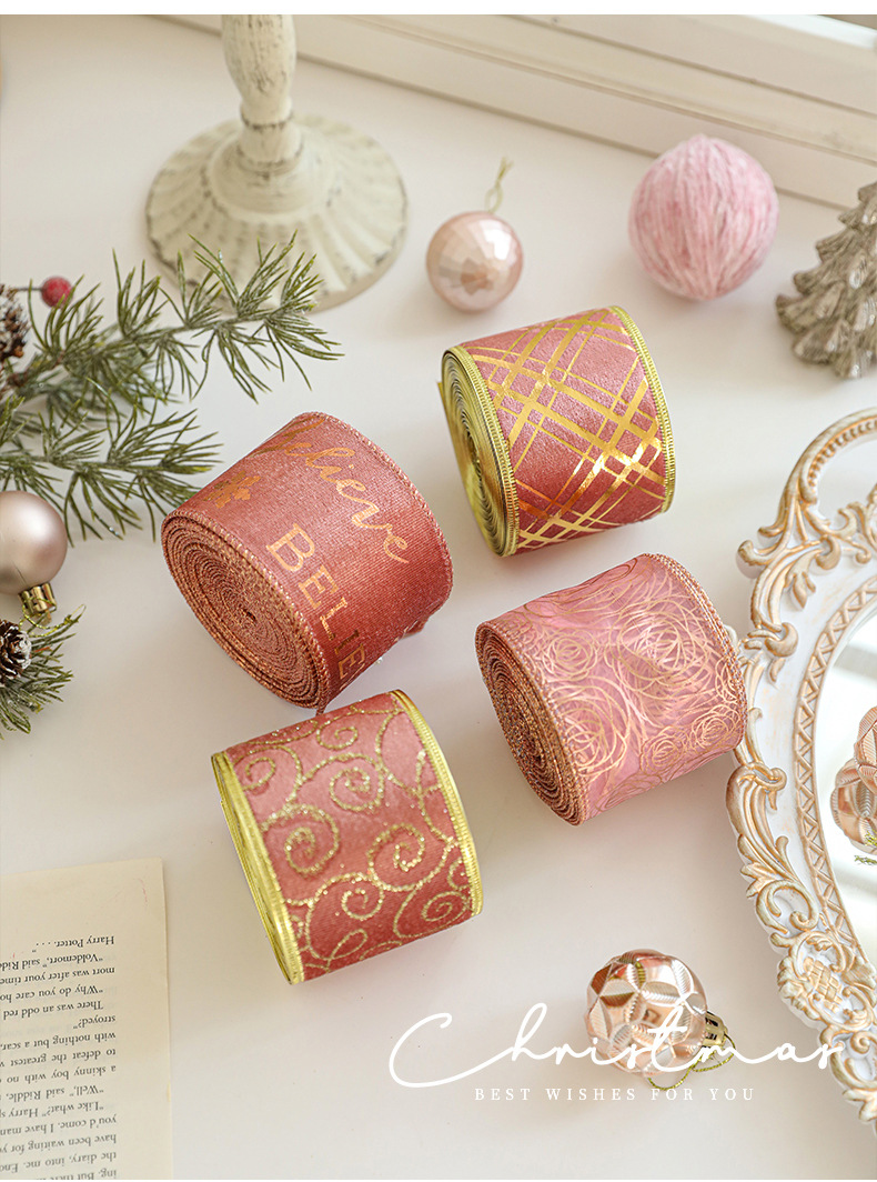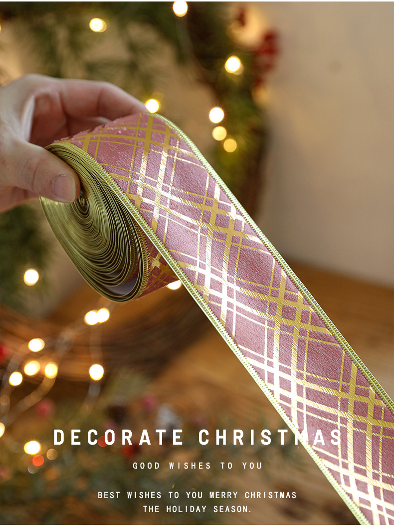 Christmas decoration webbing bow making streamer bronzing ribbon Christmas gift strap dress up printed ribbon