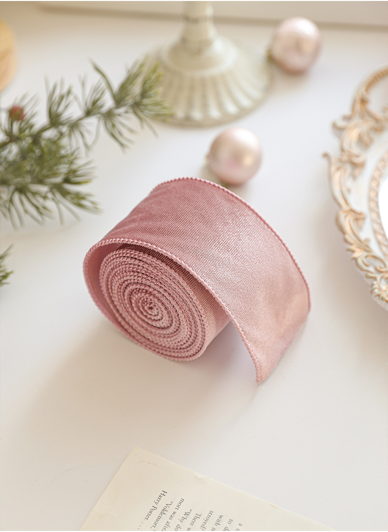 藕粉细纹纯色织带