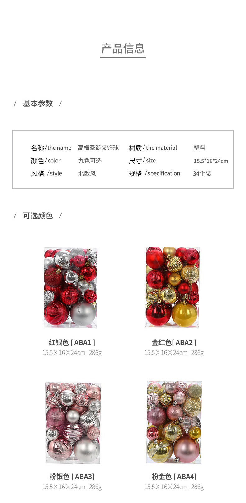 Christmas Ball Decoration Drop Ball Blue High Gloss Painted Box Ball 34 Pack Christmas Tree Decoration Pendant Decoration