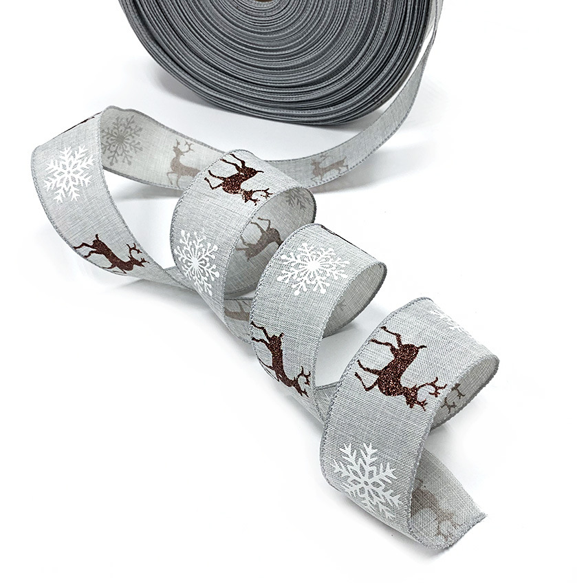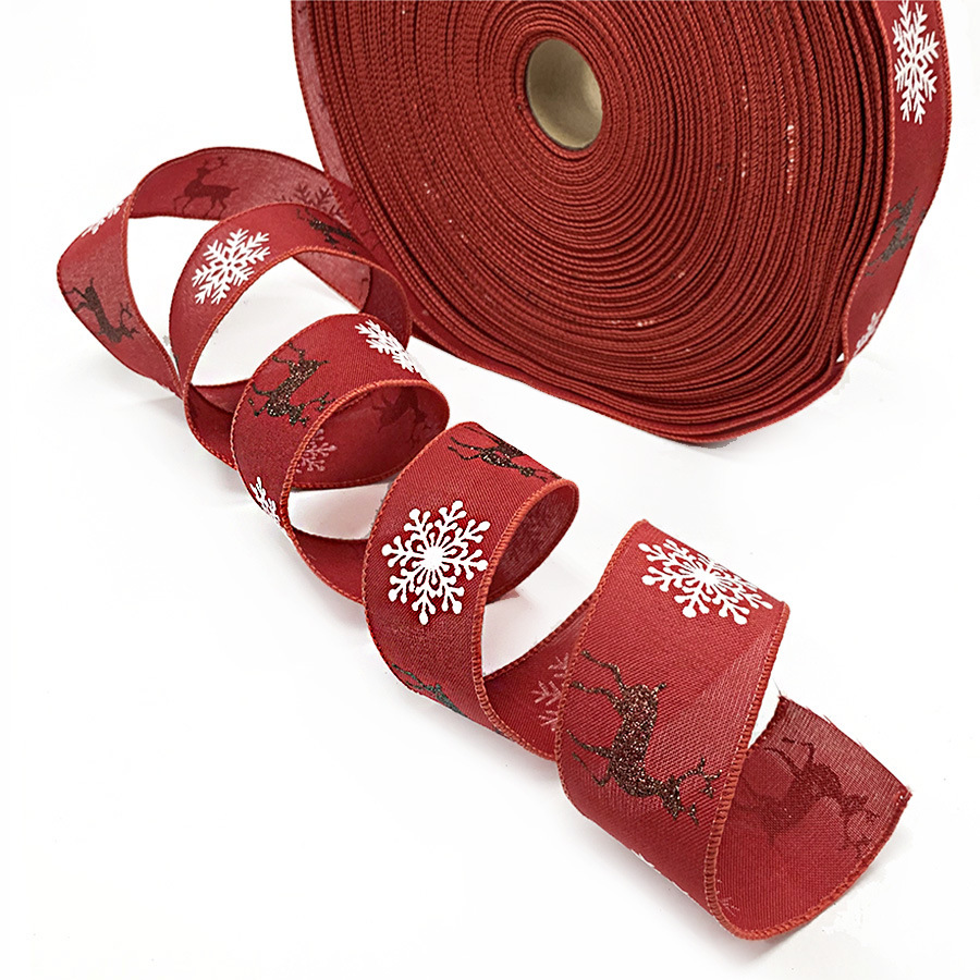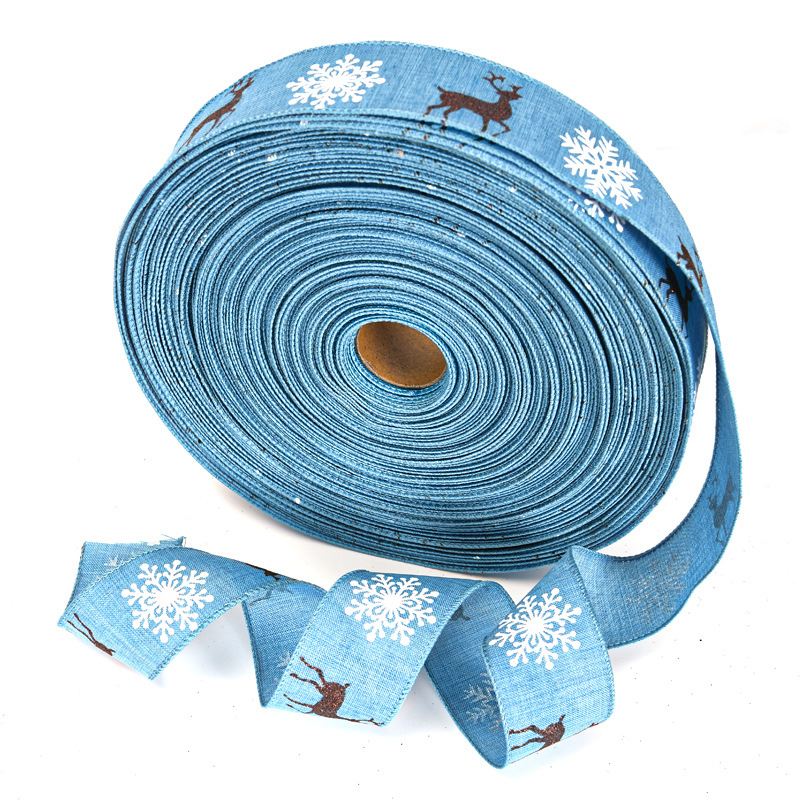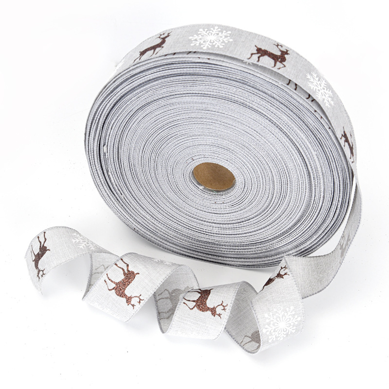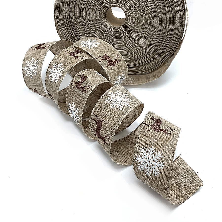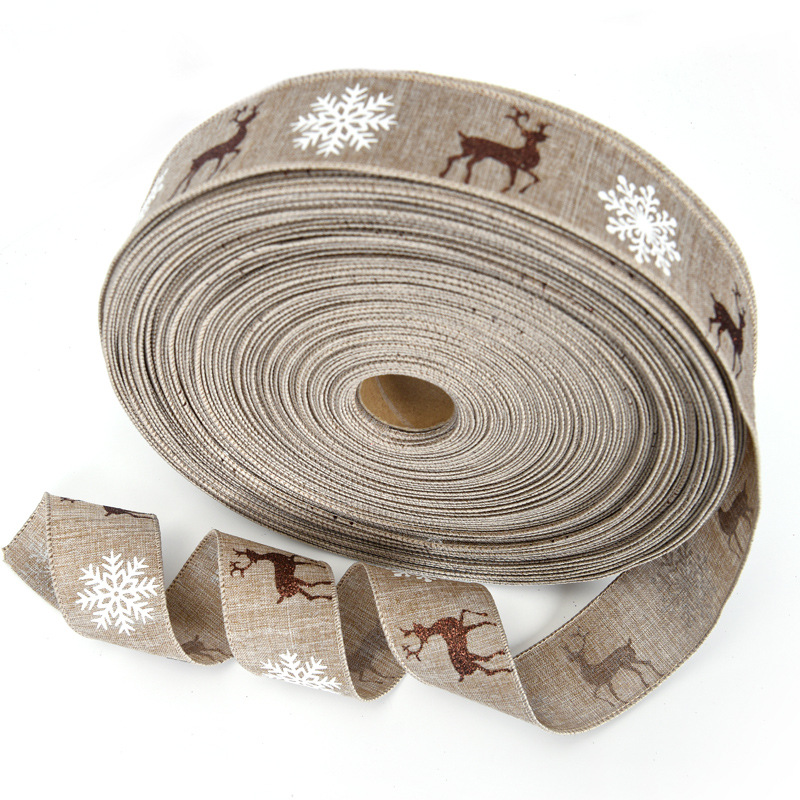 Christmas linen webbing snowflake elk Santa Claus Christmas tree decoration webbing DIY gift wrapping ribbon