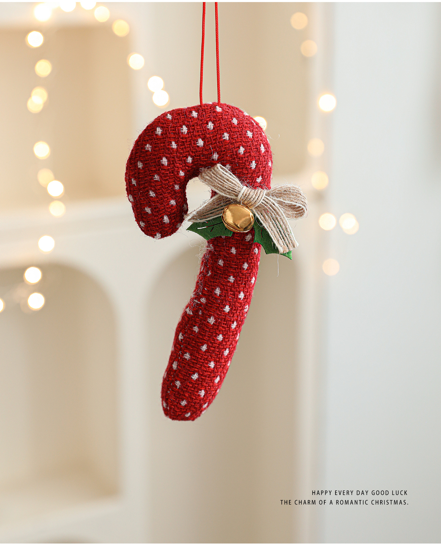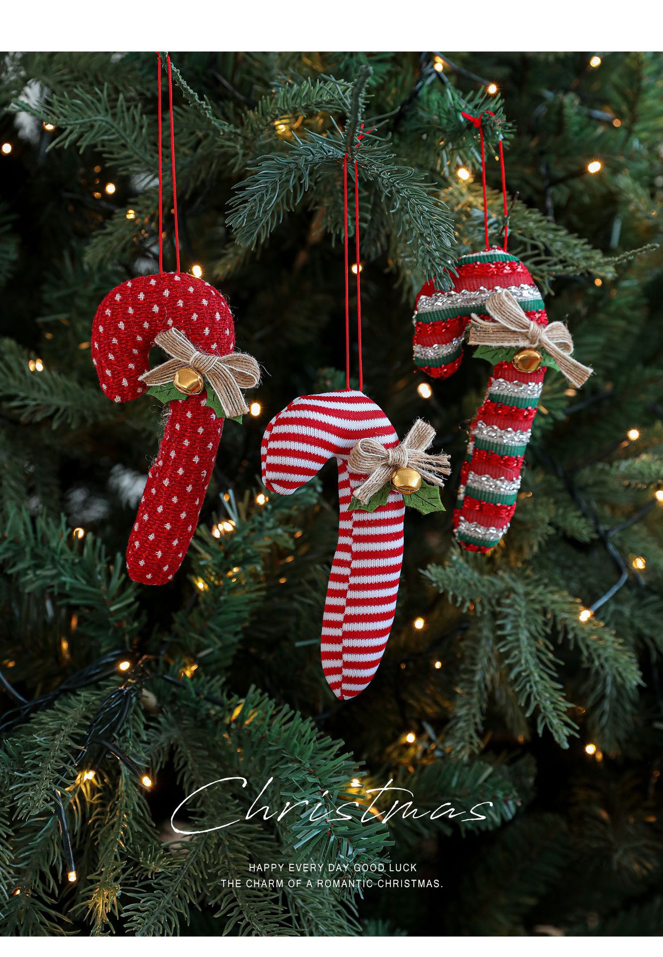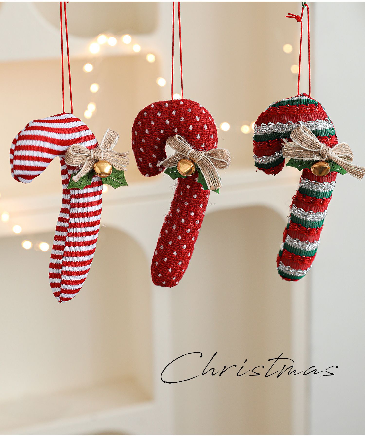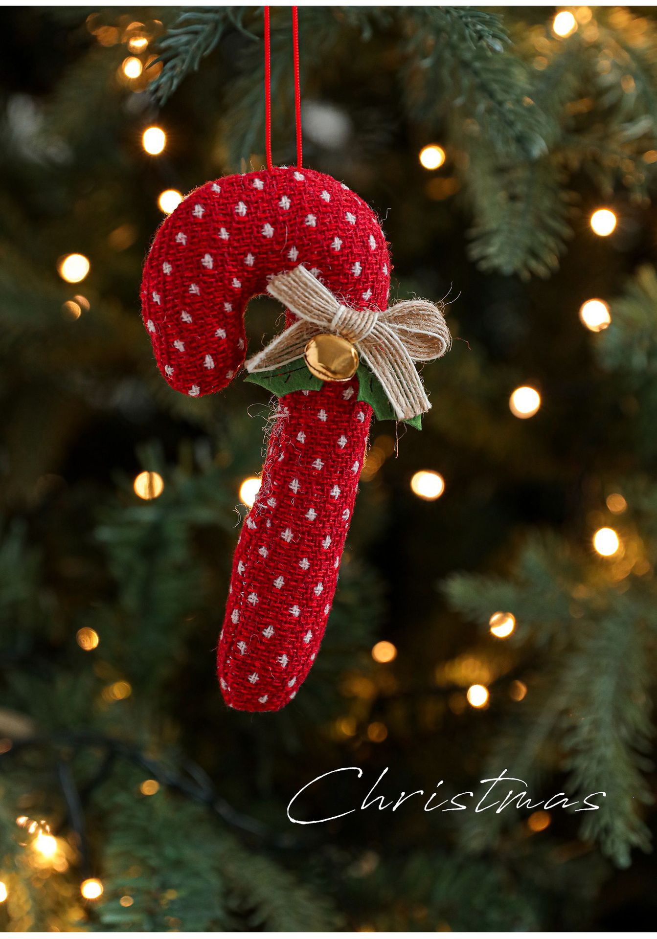 Cross-border cartoon fabric crutches candy opposite-sex pendants red Christmas tree ornaments bells bow charms