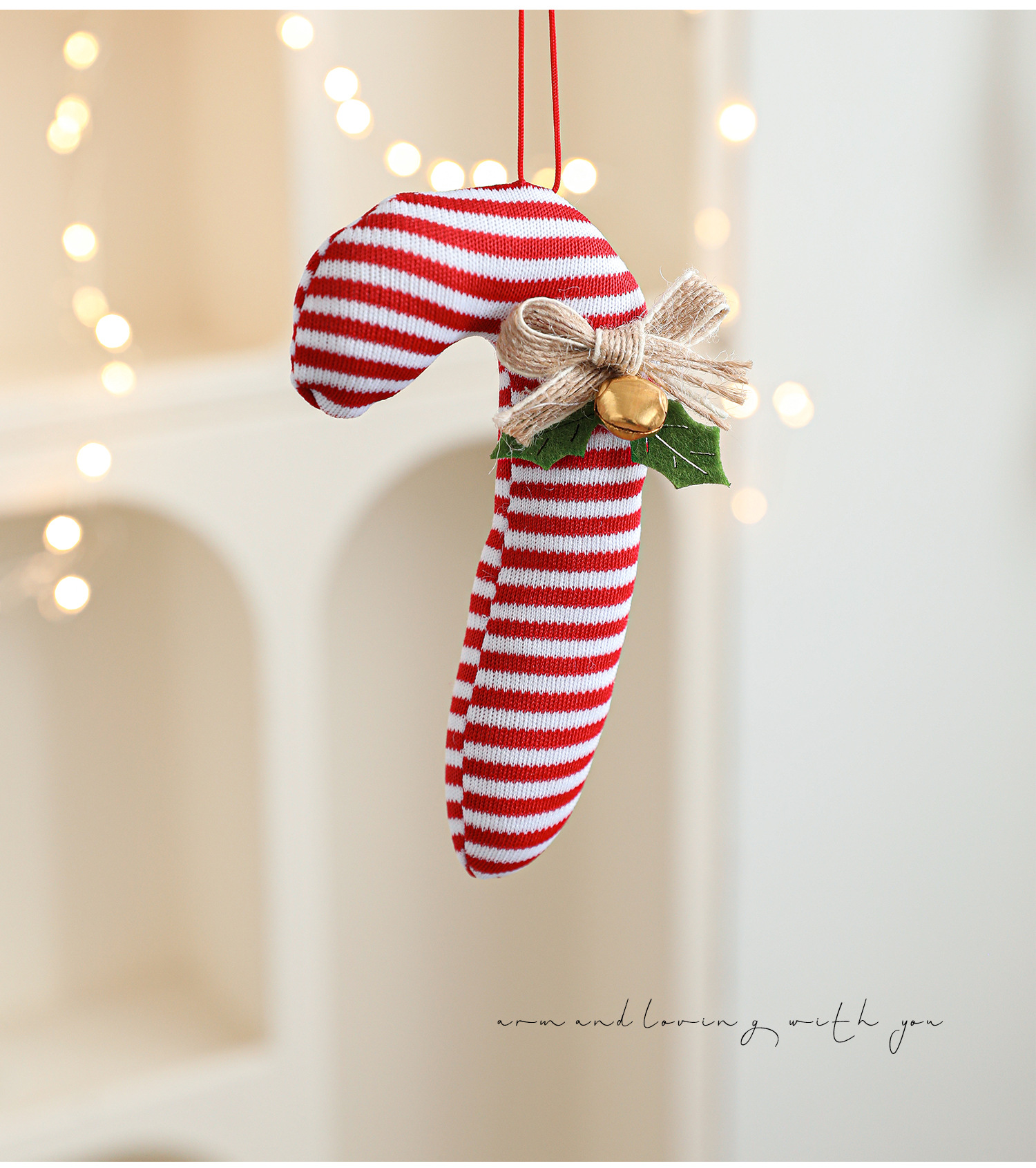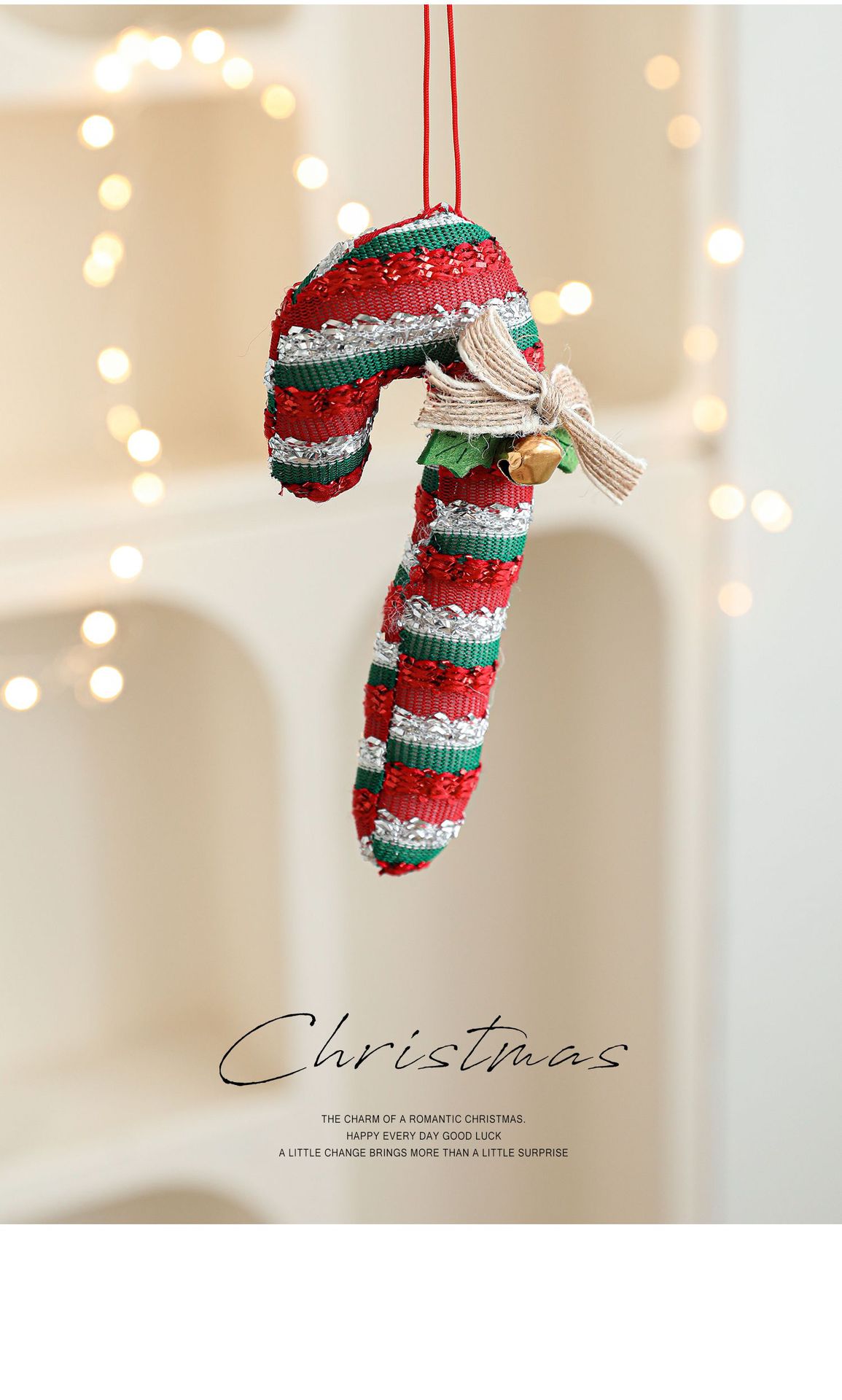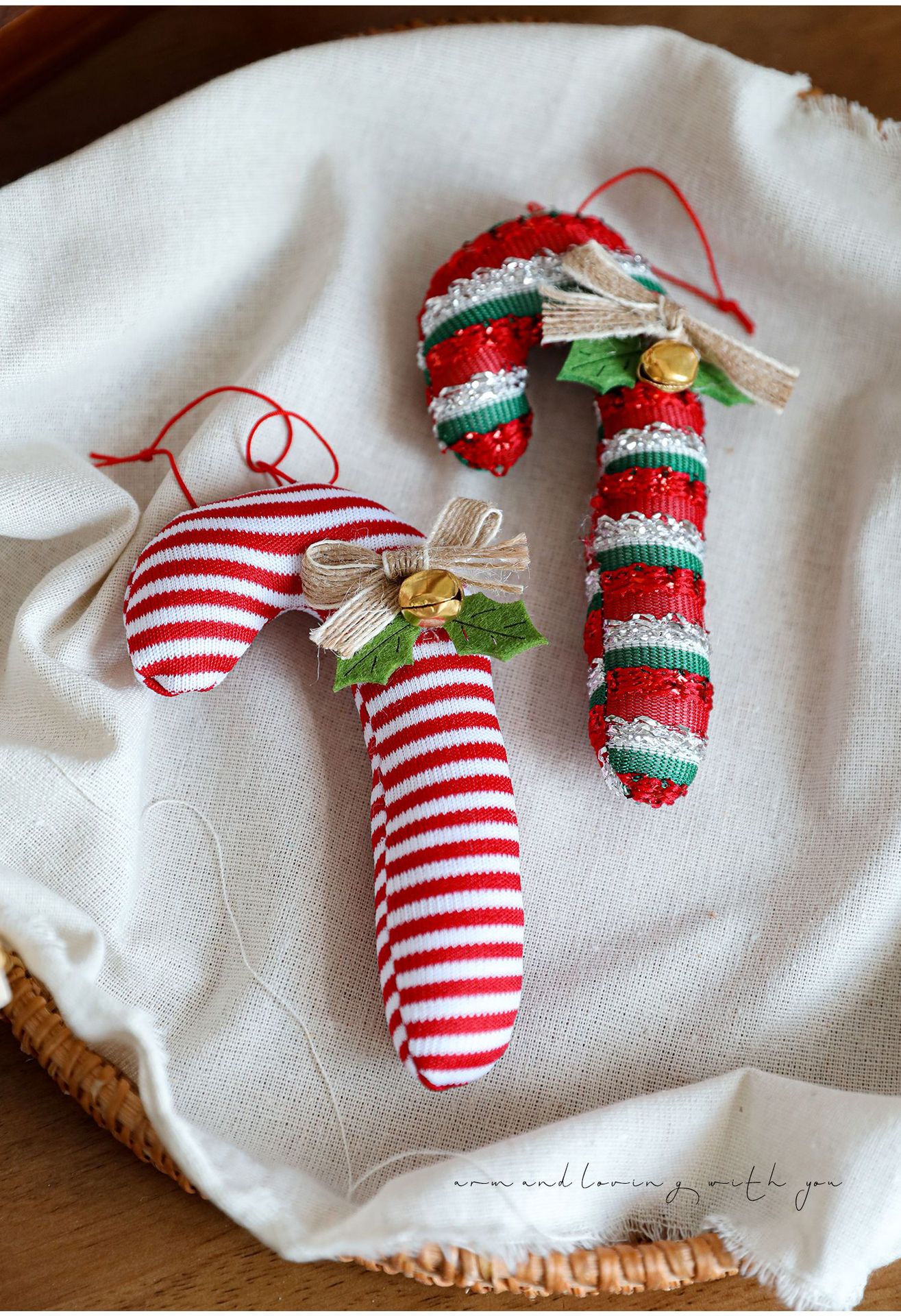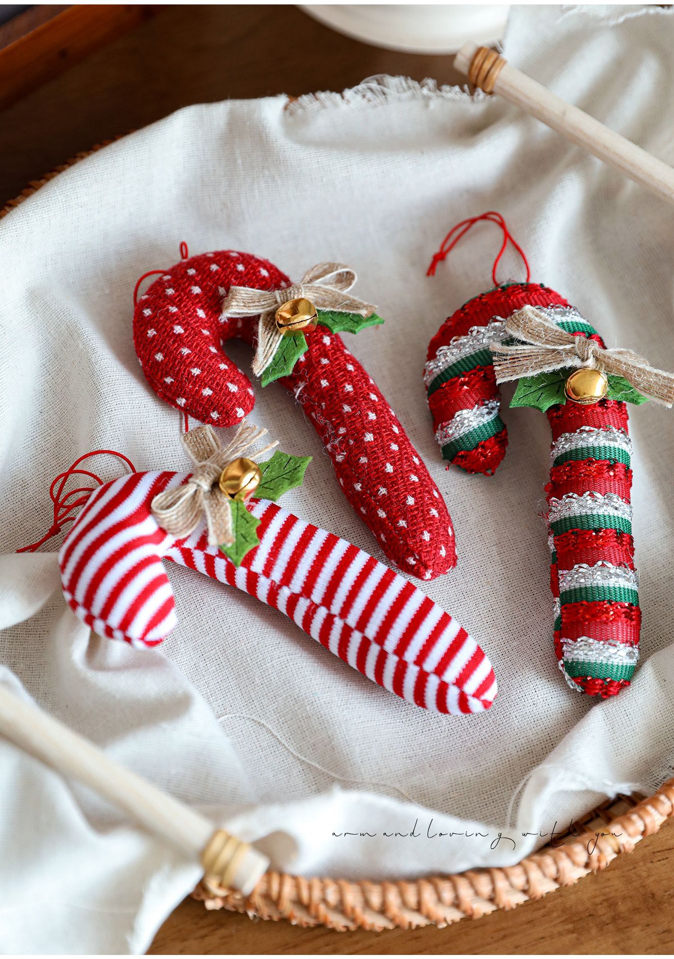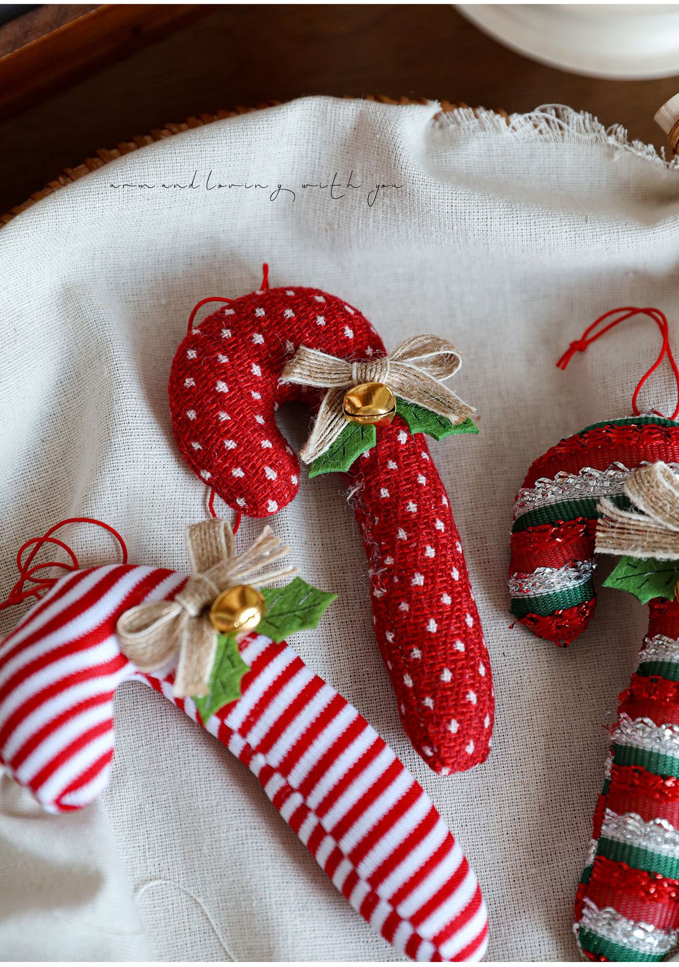 Cross-border cartoon fabric crutches candy opposite-sex pendants red Christmas tree ornaments bells bow charms