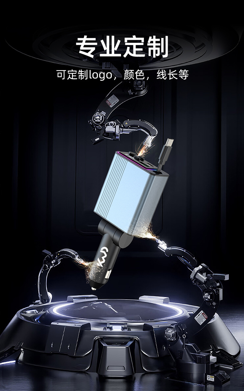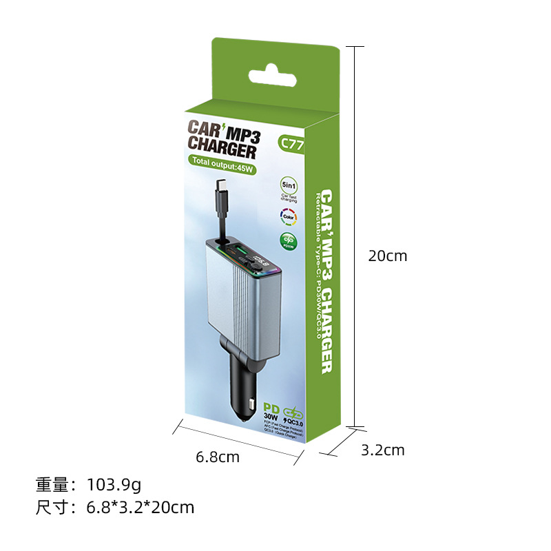 Cross-border telescopic cable car mobile phone charger 100W super fast charging pd30W fast charging multi-function with cigarette lighter