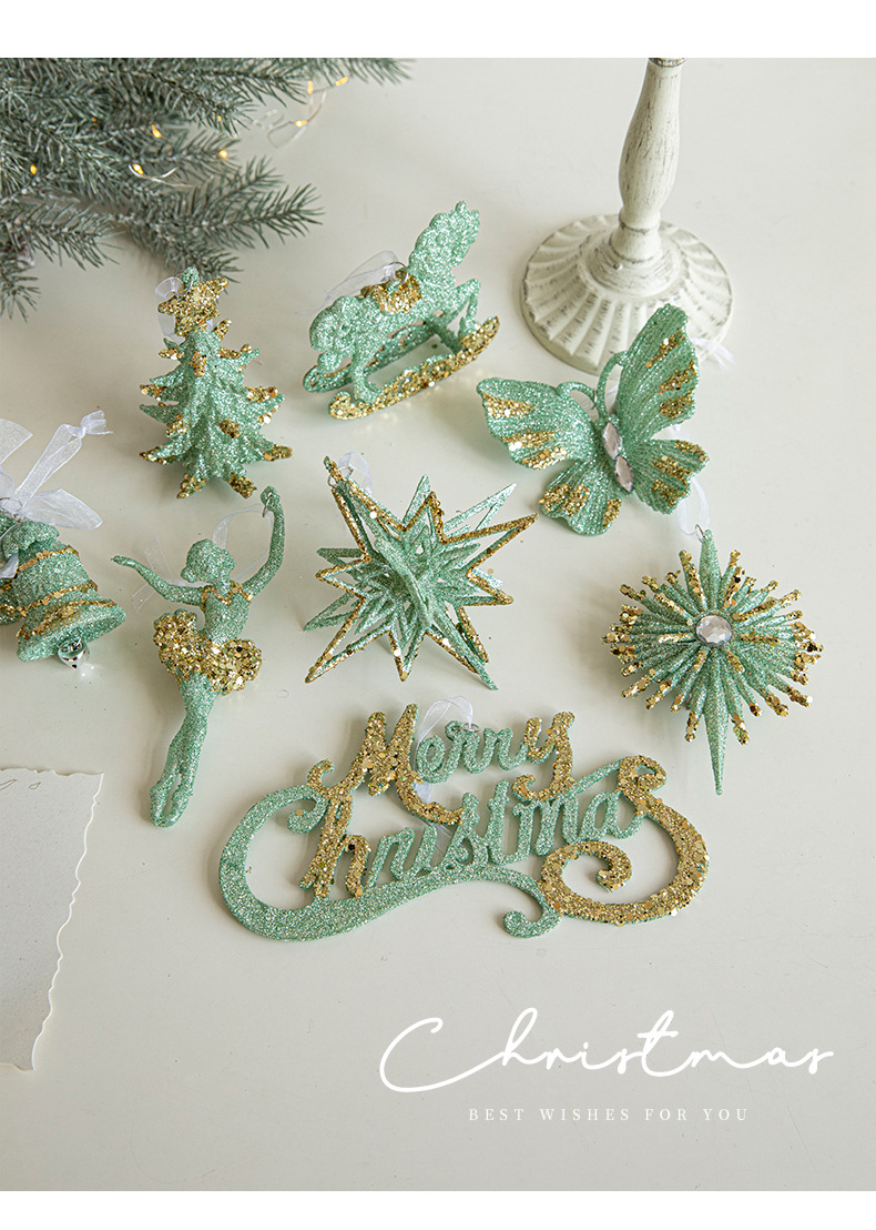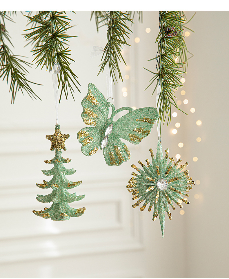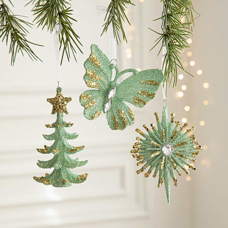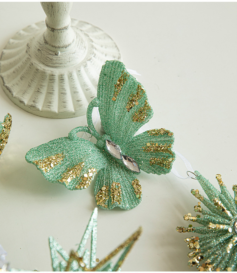 New Christmas decorations, green butterfly ornaments, Christmas tree pendants, European plastic decoration supplies in stock
