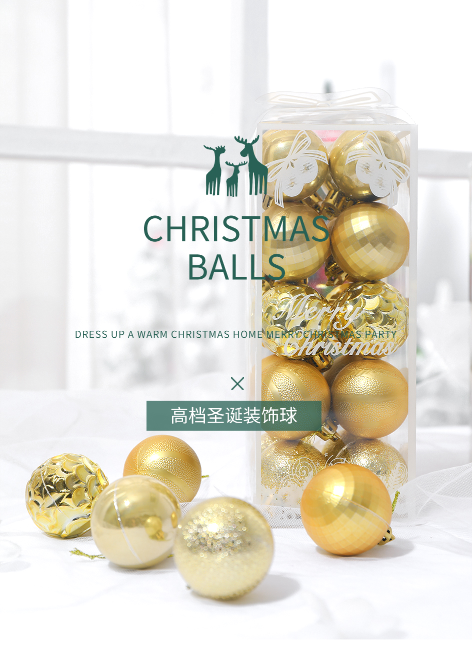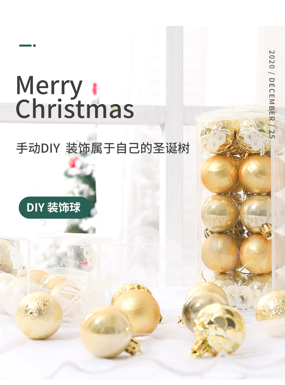 Christmas Ornaments 4cm Gold Silver Pink Champagne Christmas Ball Christmas Tree Pendant Set Box Wholesale