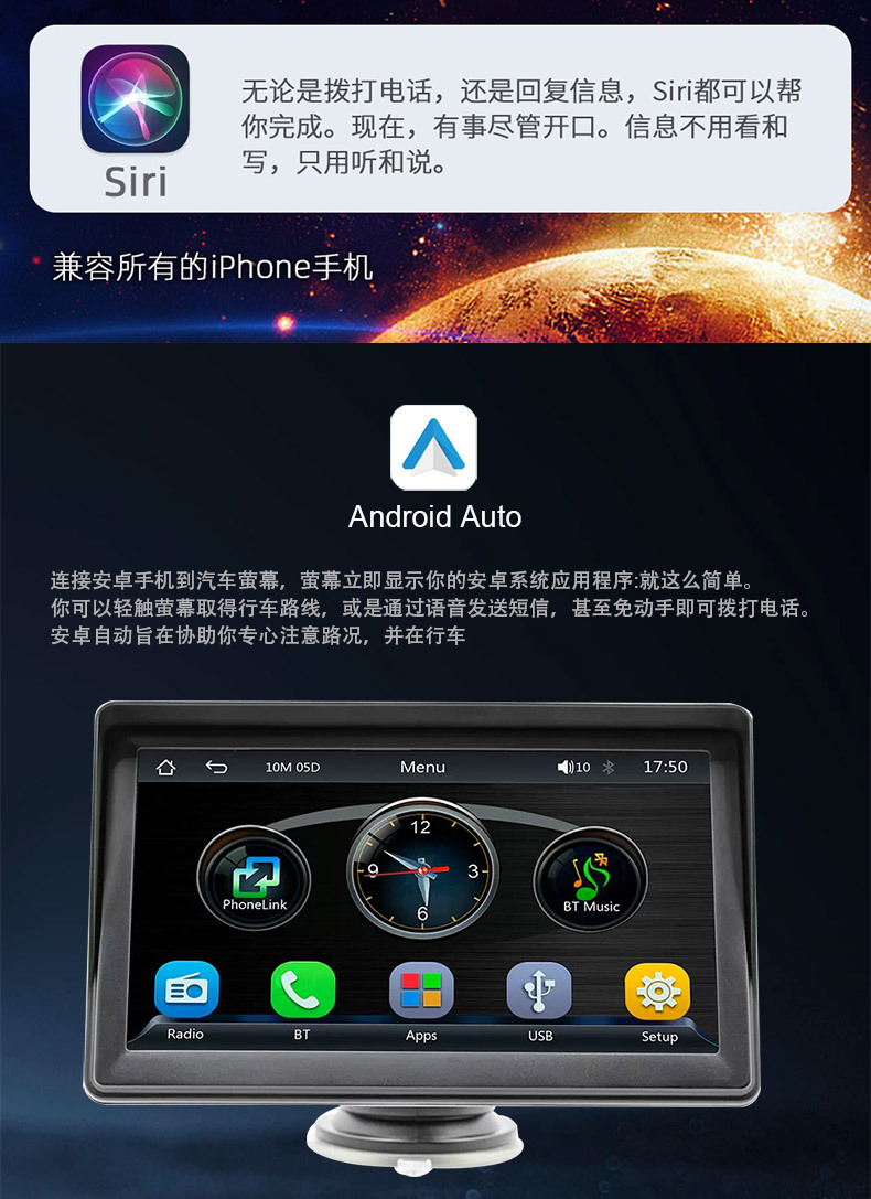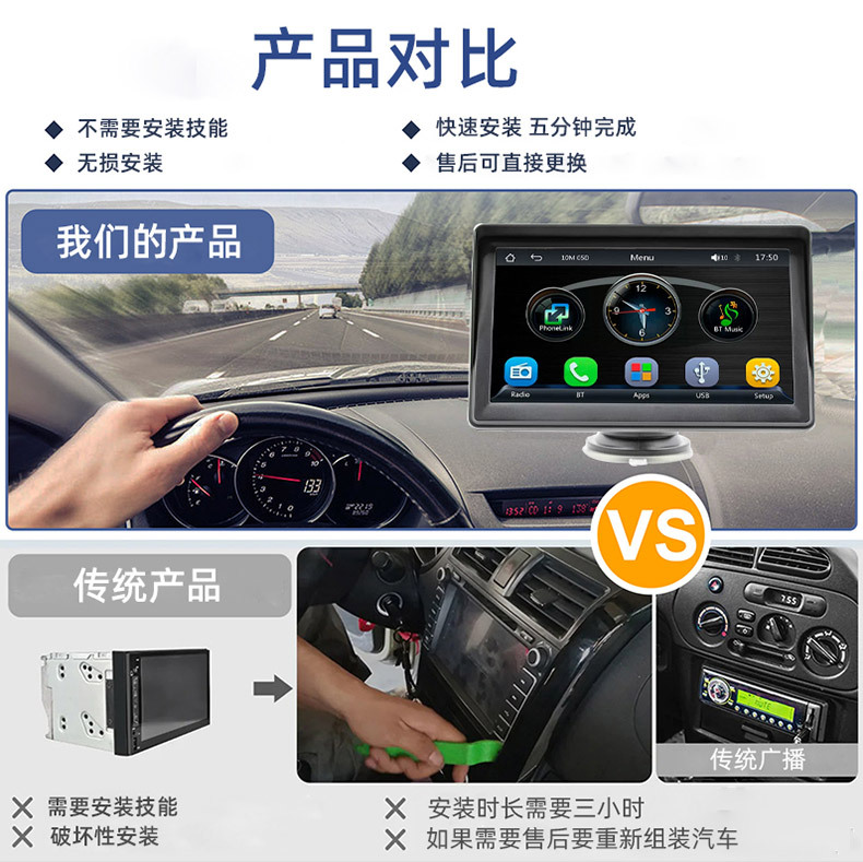 Customized 7 inch carplay portable screen sun visor, Bluetooth car MP5 player, clear large screen car central control screen