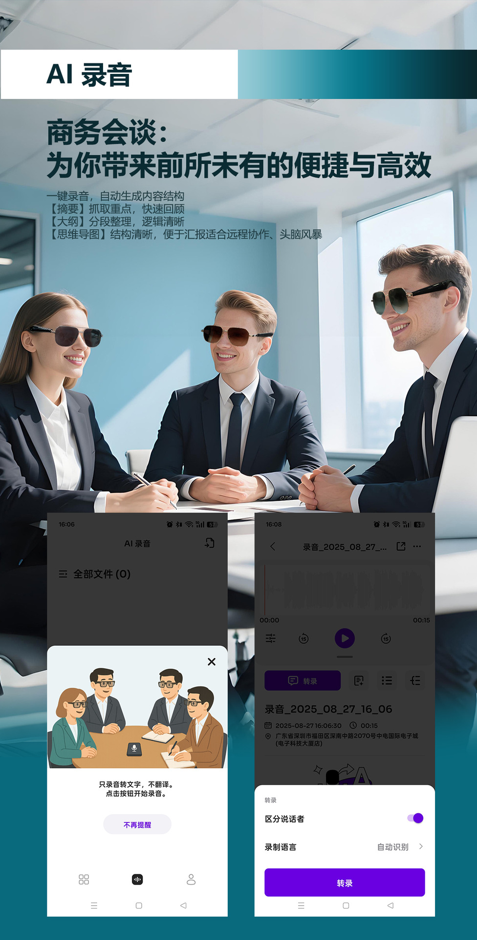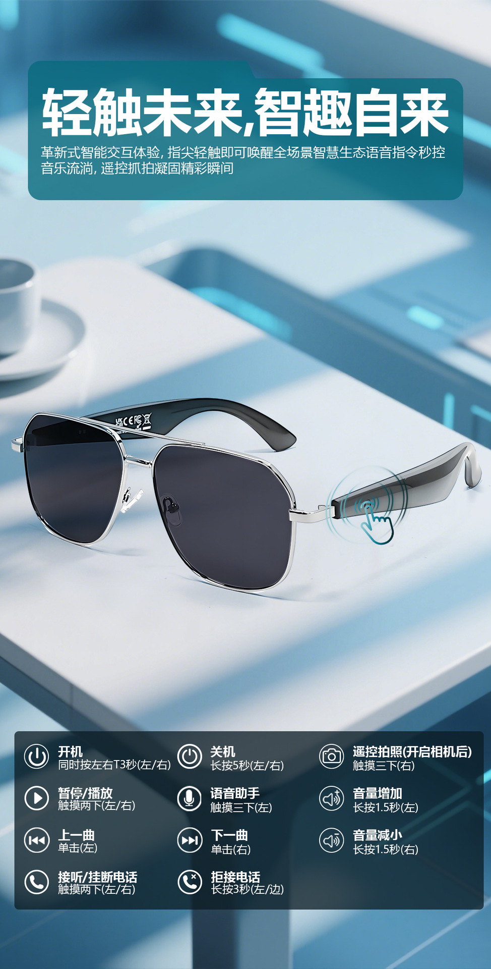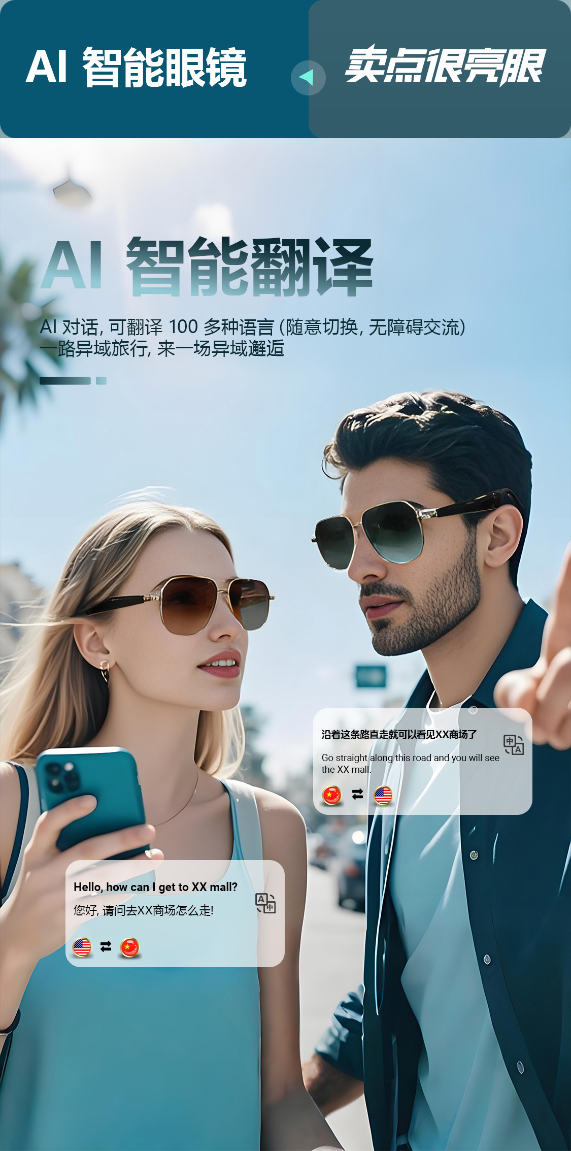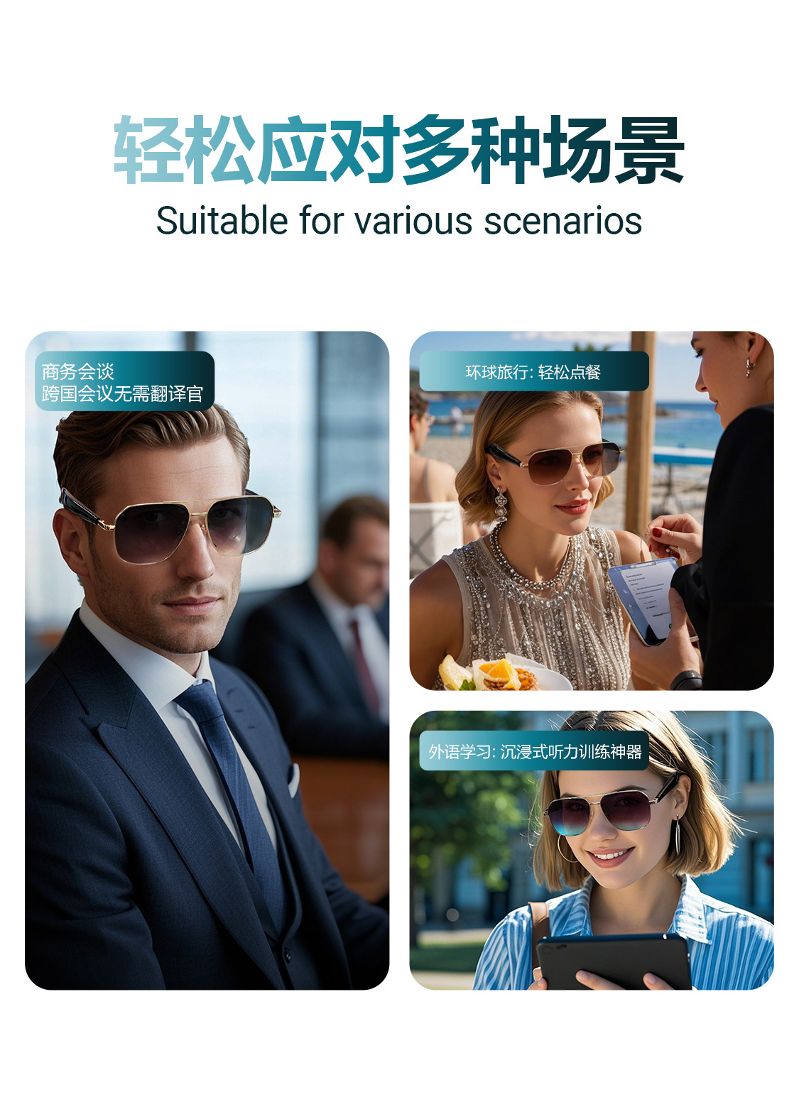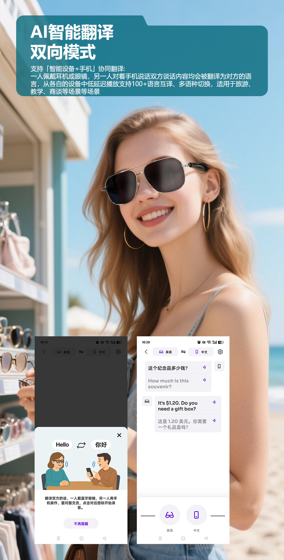 GY100 AI Translator Bluetooth Glasses More than 100 Languages Real-time Translation Glasses Listening to Songs and Calling Smart Glasses