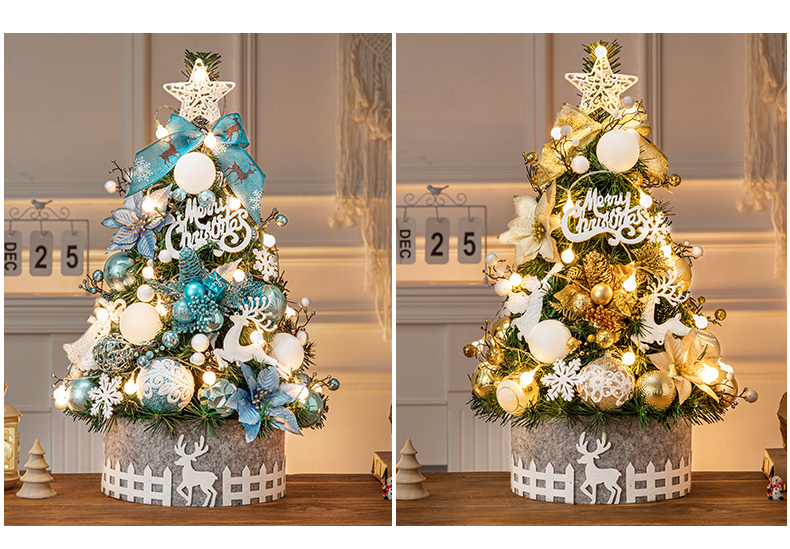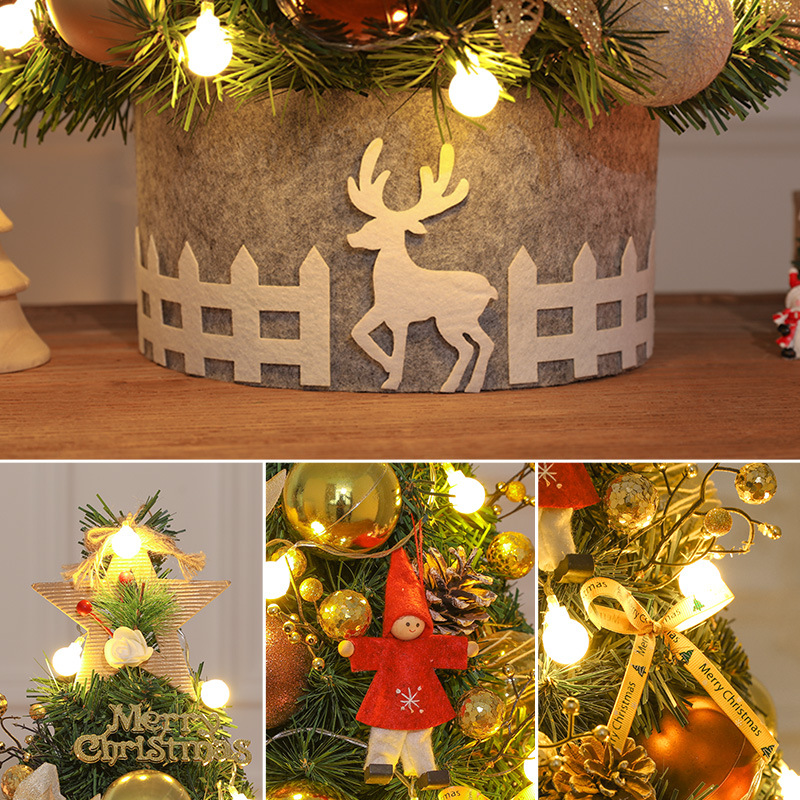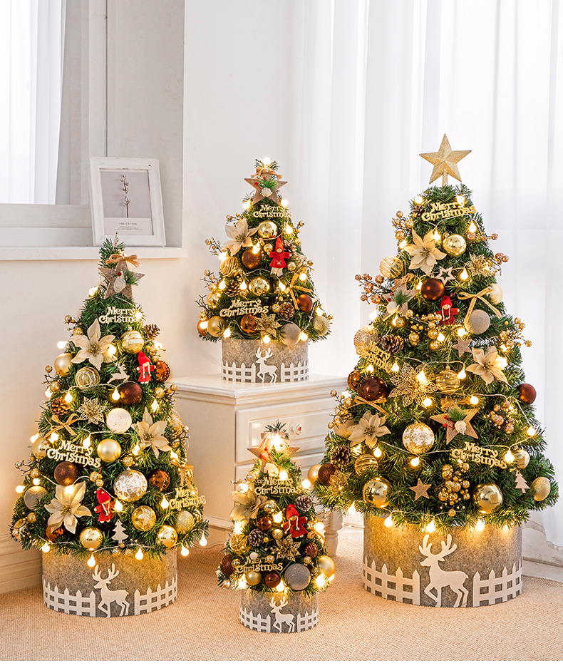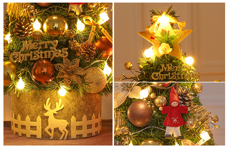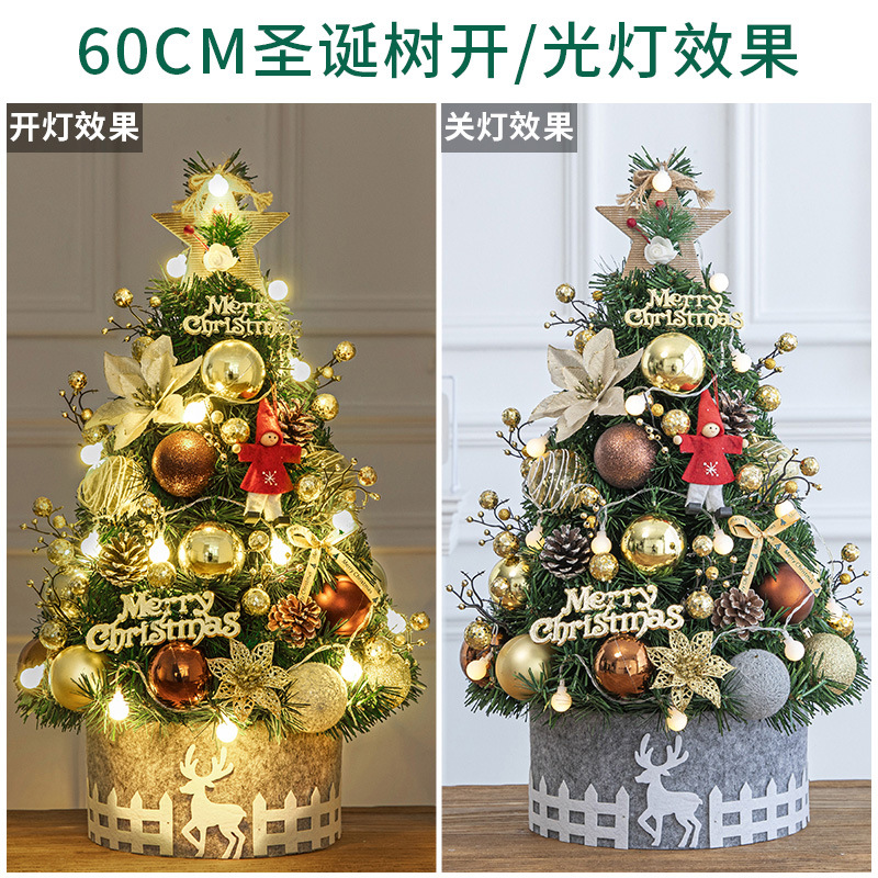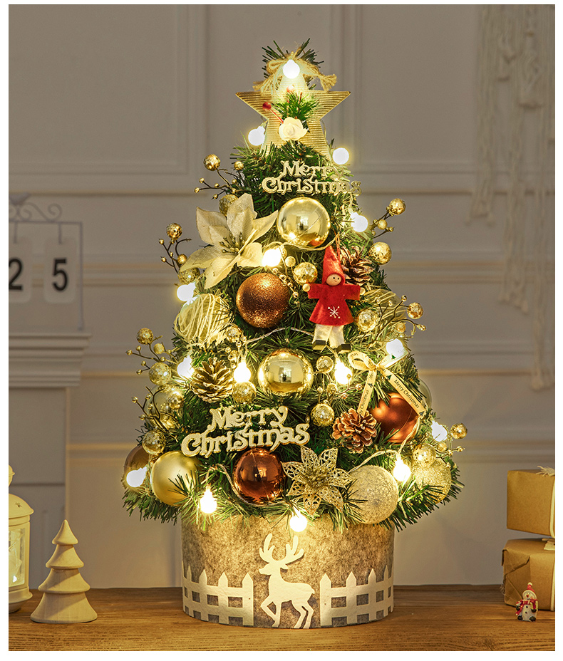 Cross Border 60cm Mini Small Christmas Tree Package Tree PVC Home Decorative Gold Christmas Tabletop Ornament