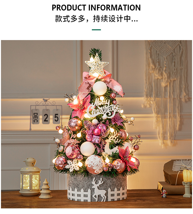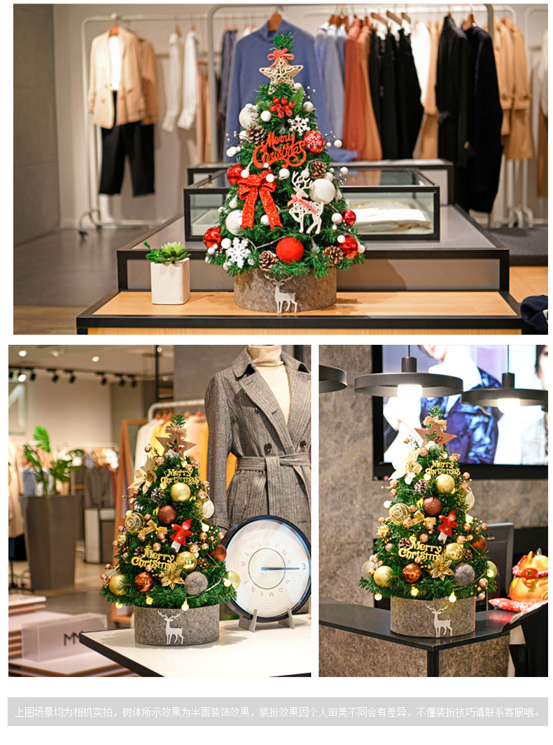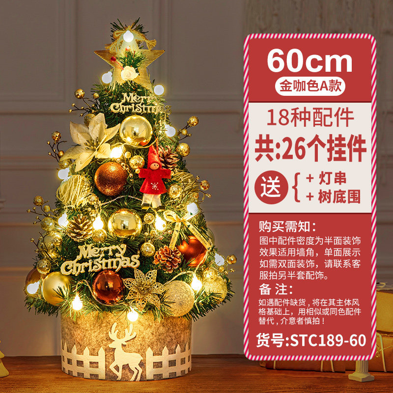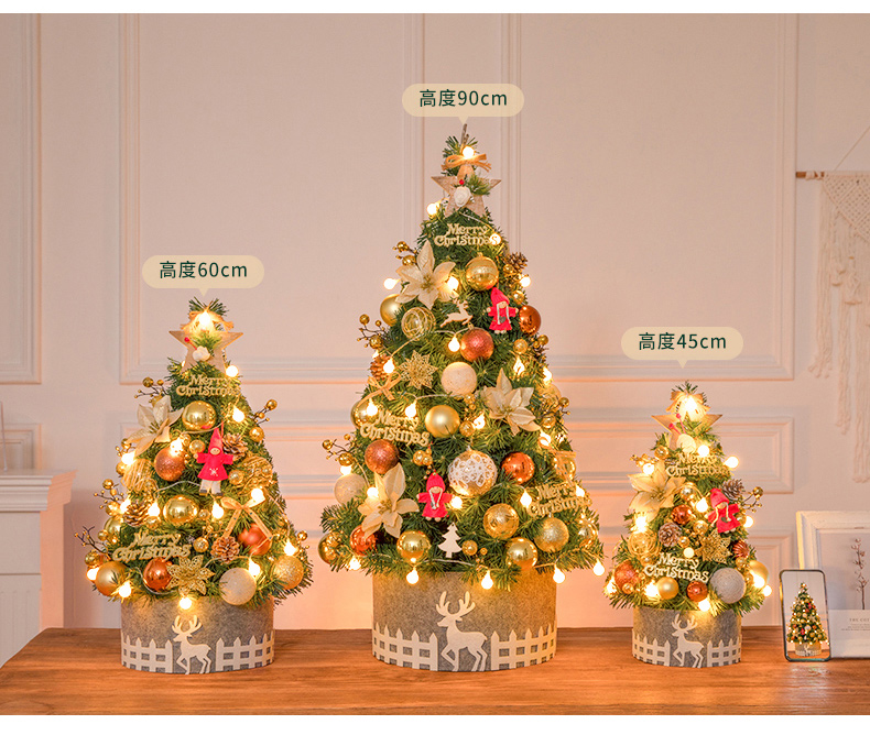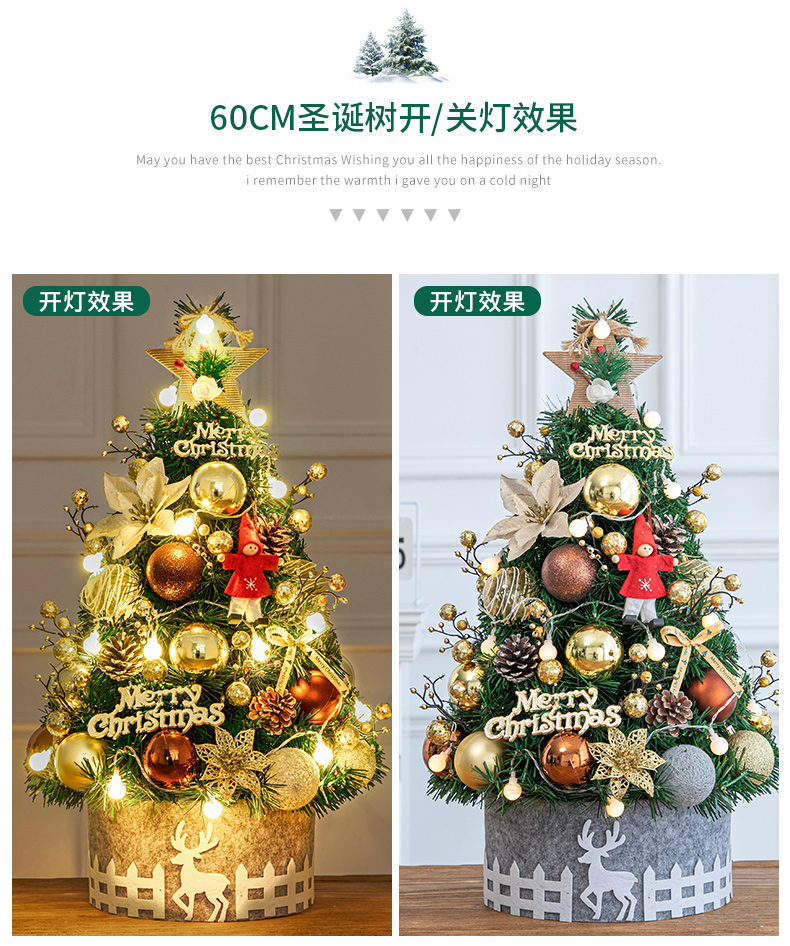 Cross Border 60cm Mini Small Christmas Tree Package Tree PVC Home Decorative Gold Christmas Tabletop Ornament