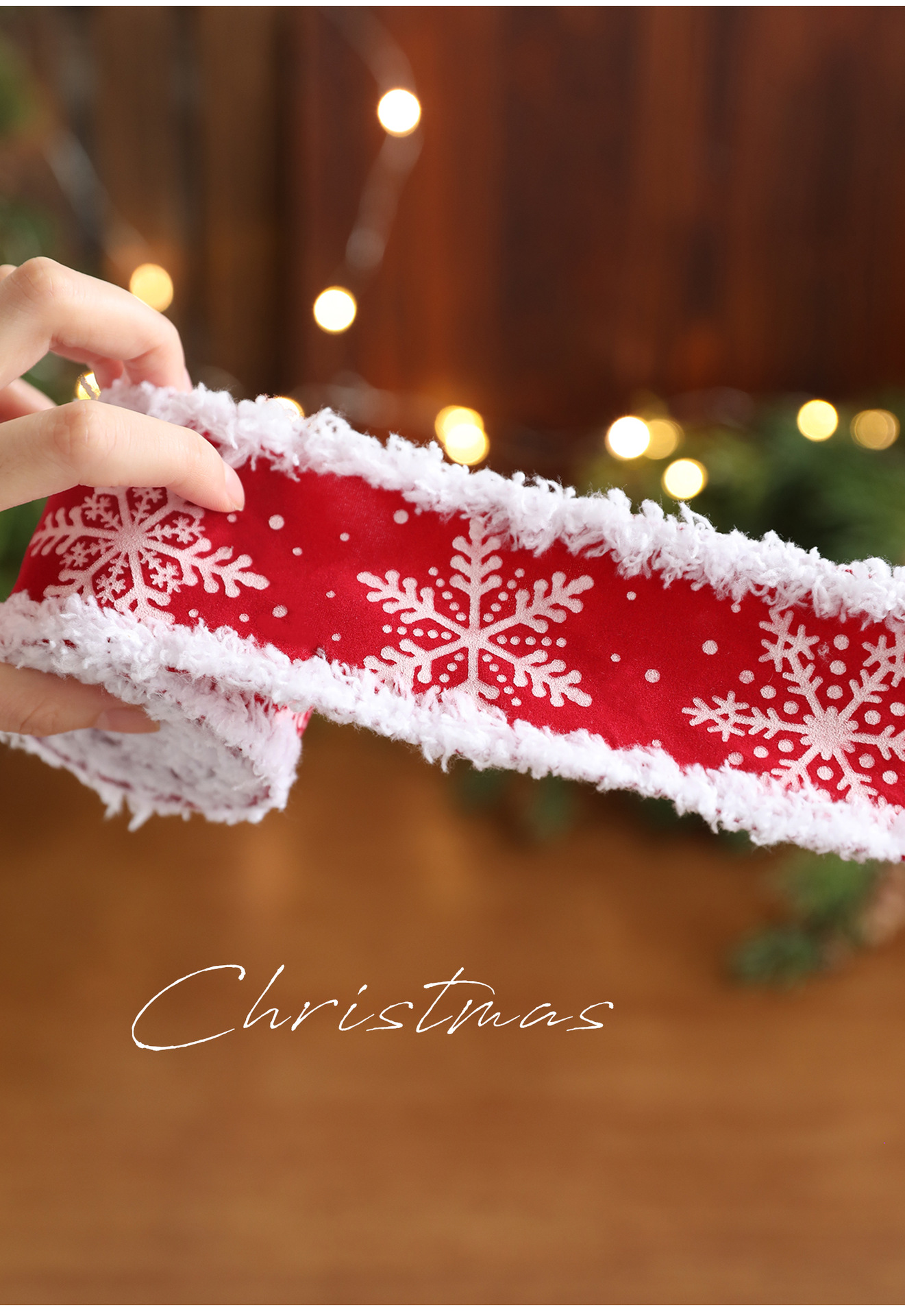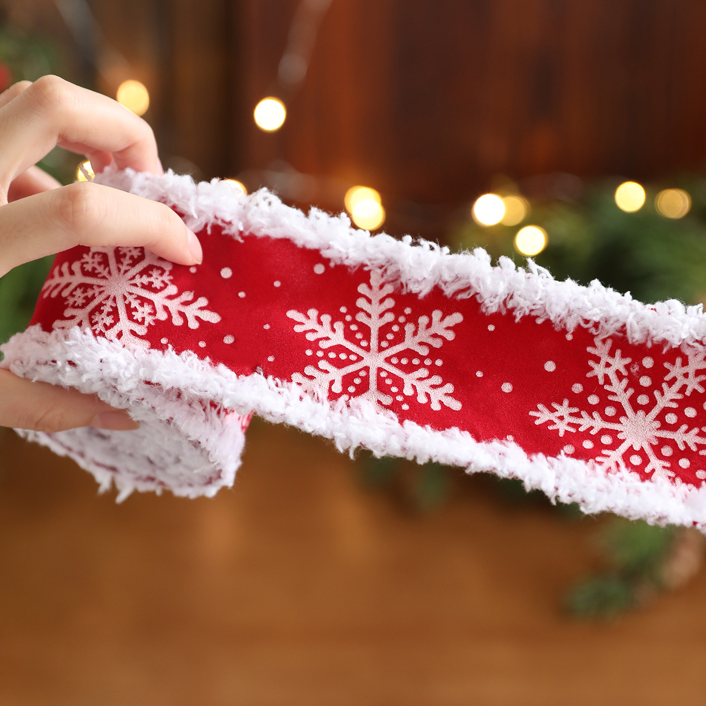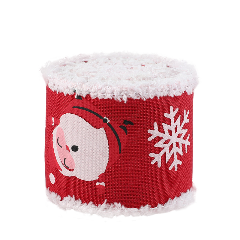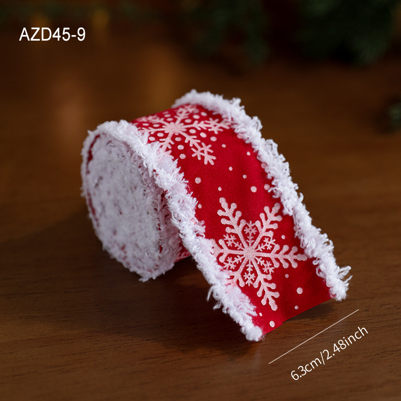 New red white velvet trim webbing snowflake print Christmas bow gift strap ribbon decoration accessory