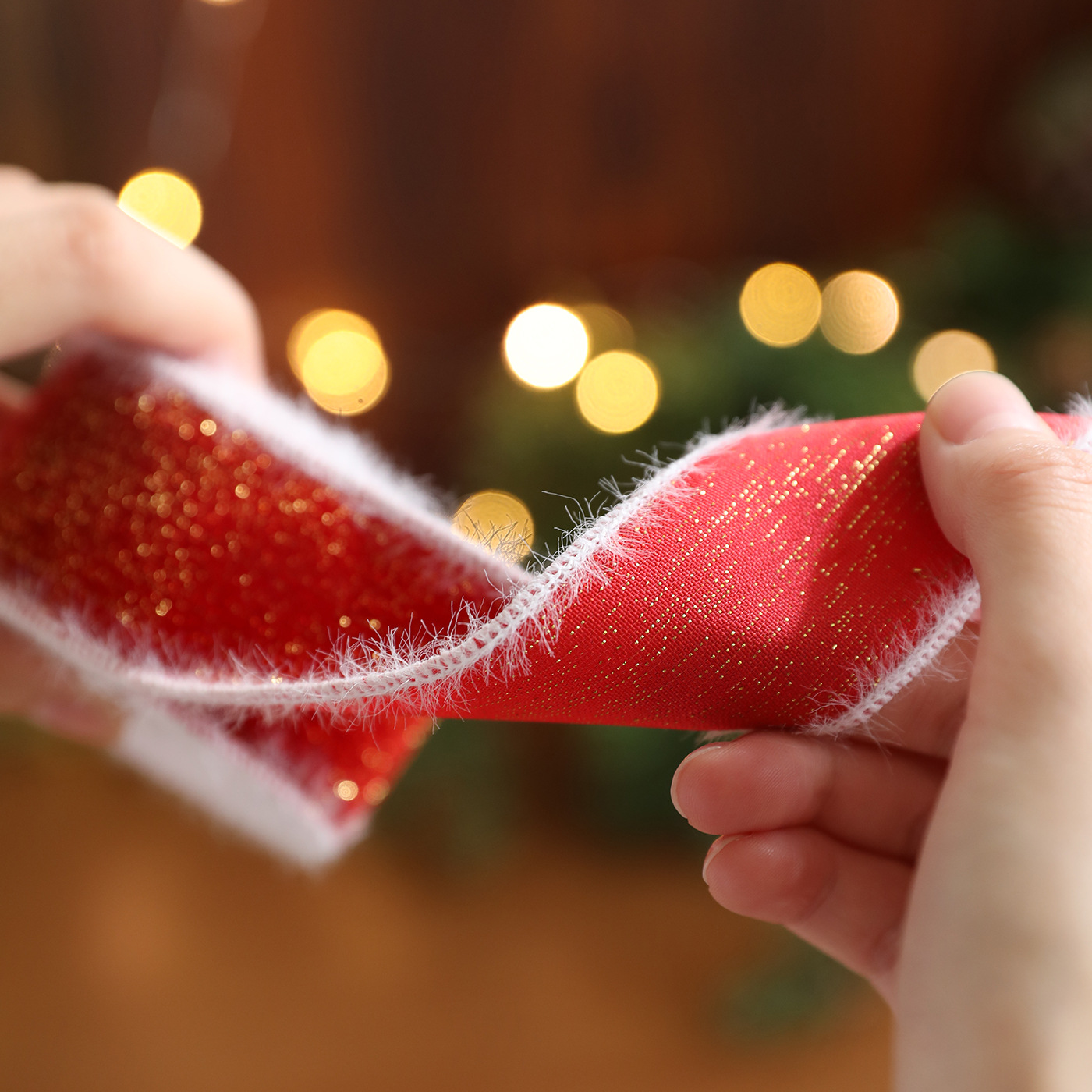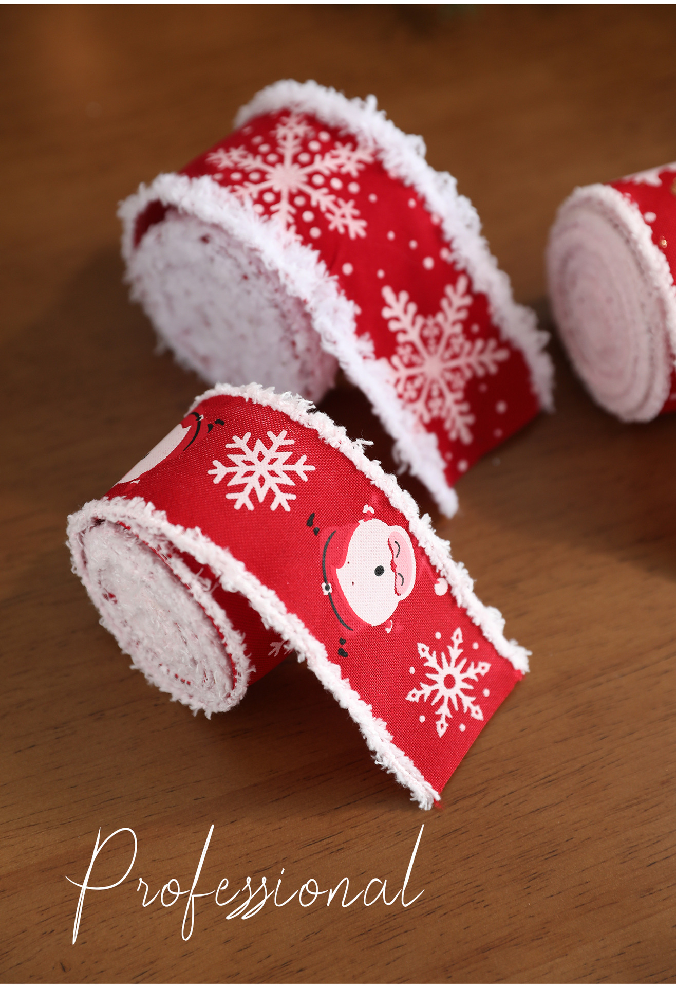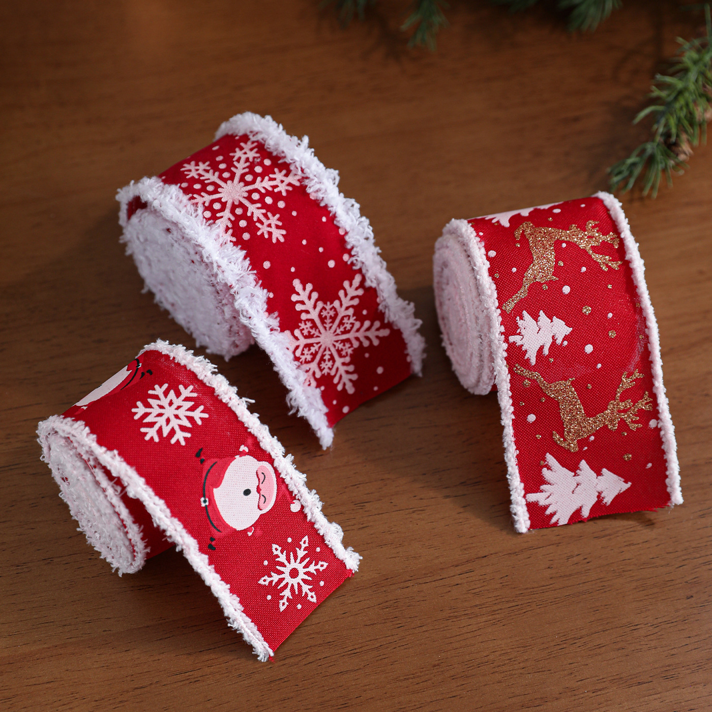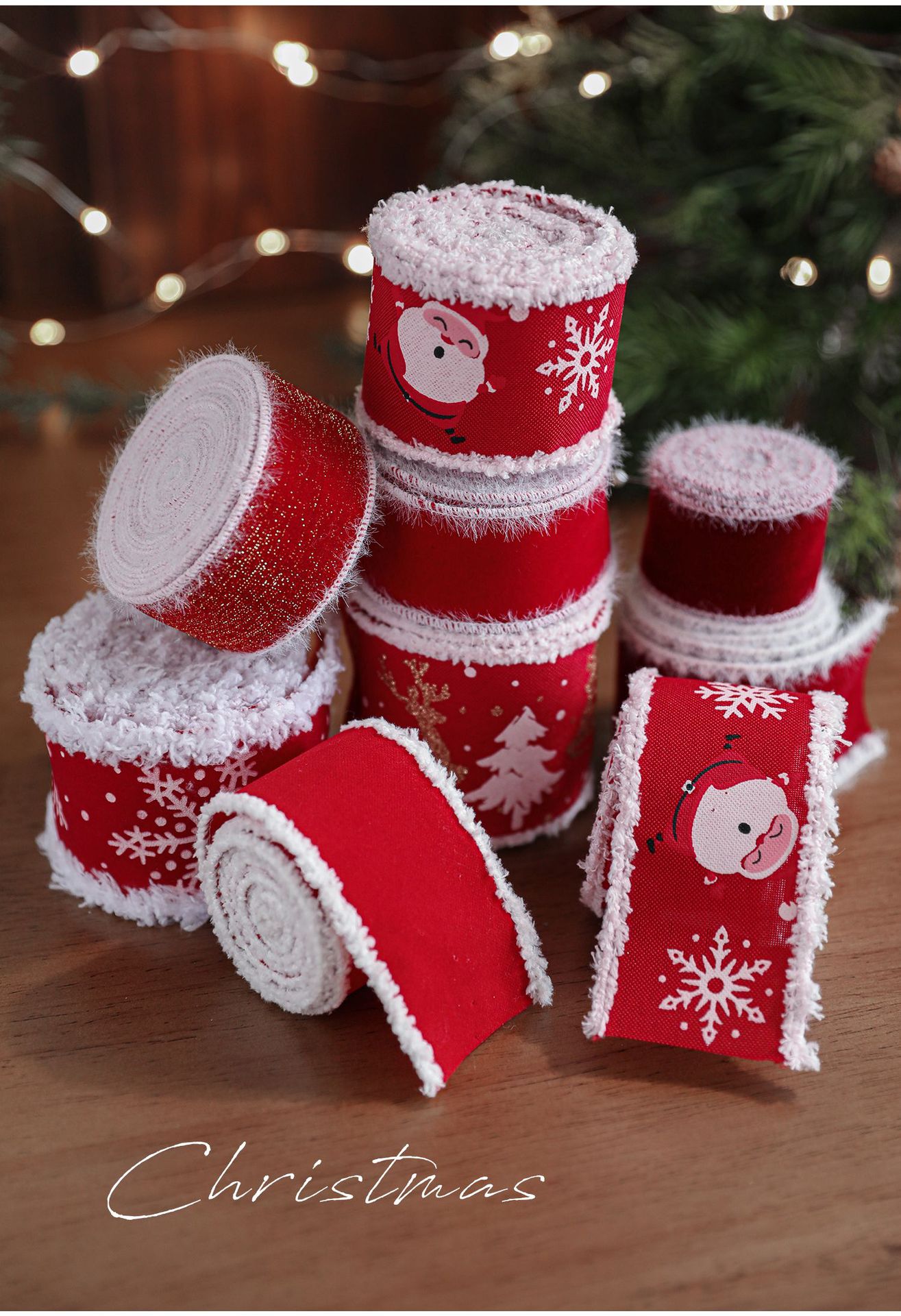 New red white velvet trim webbing snowflake print Christmas bow gift strap ribbon decoration accessory