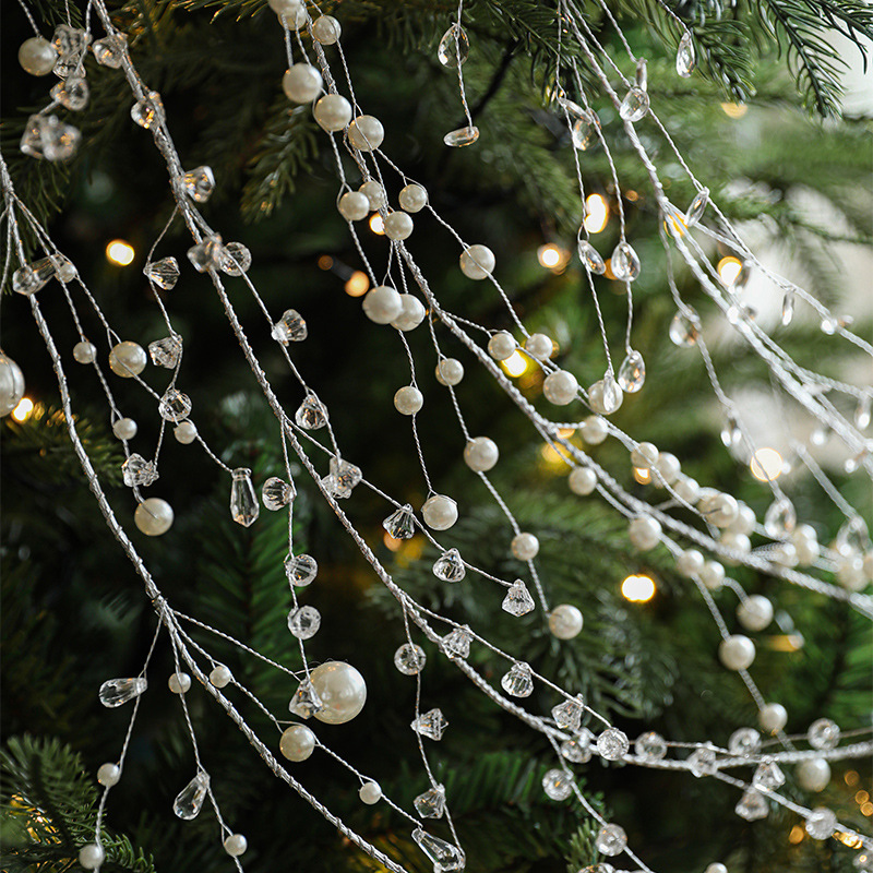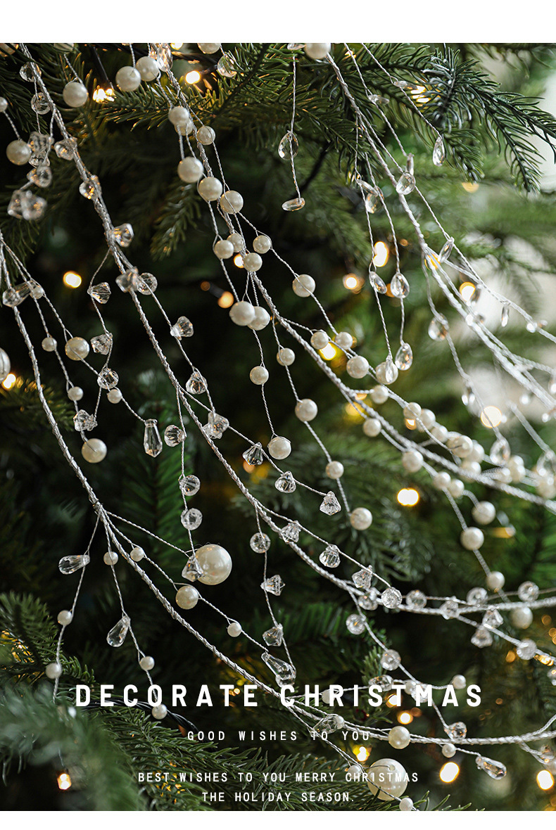 New Christmas crystal chain string pearl bead string pendant Christmas tree wreath rattan decoration Christmas scene arrangement