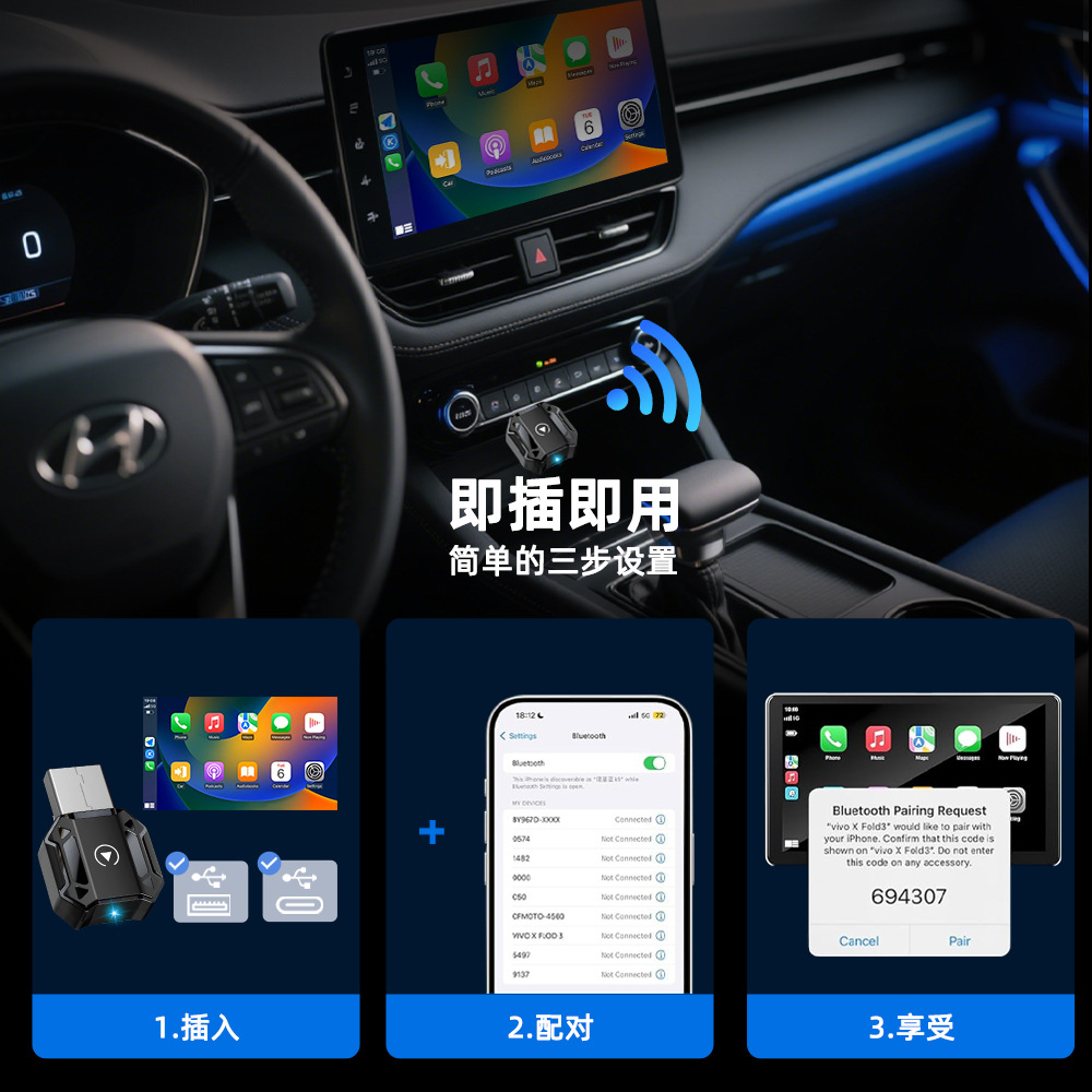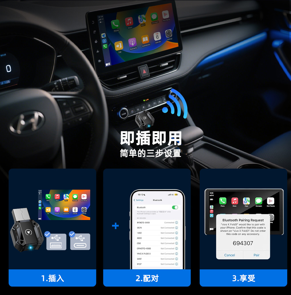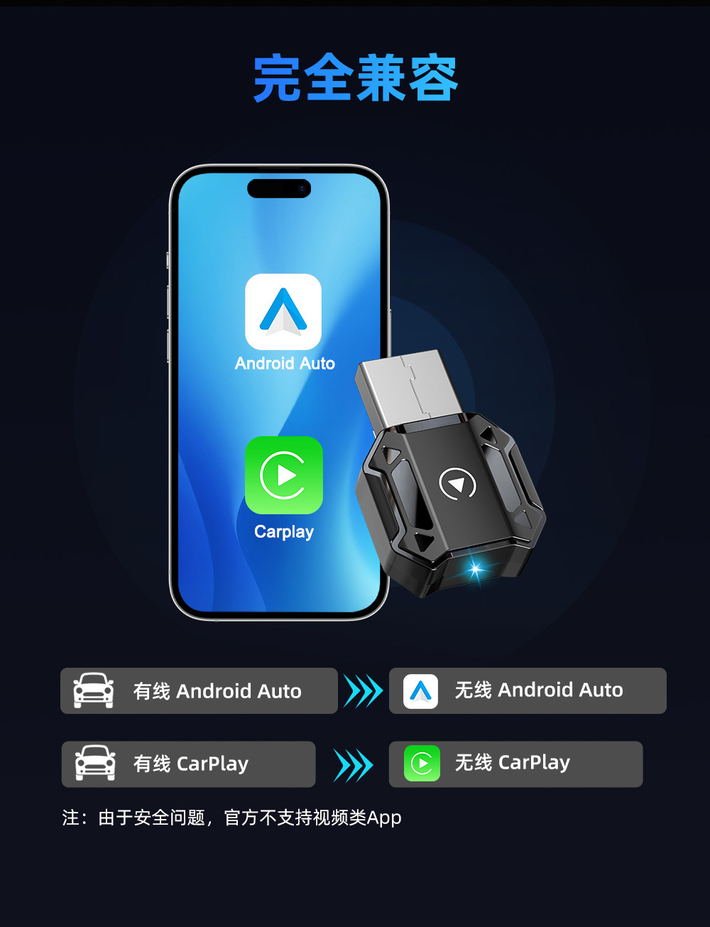 CarPlay box wired to wireless Bluetooth 5.4 Junyong chip Allwinner chip has strong stability