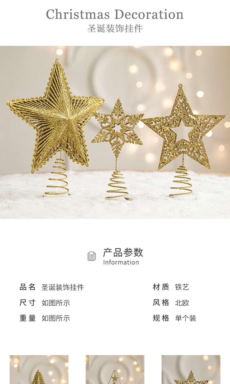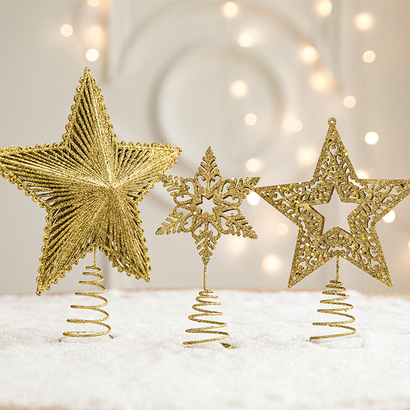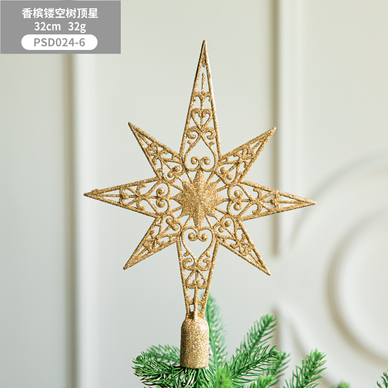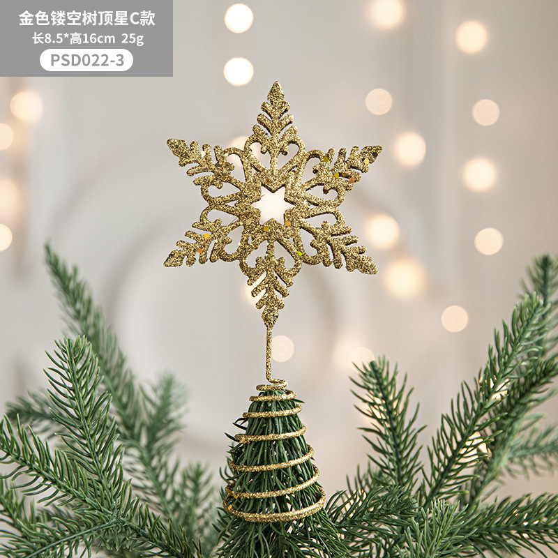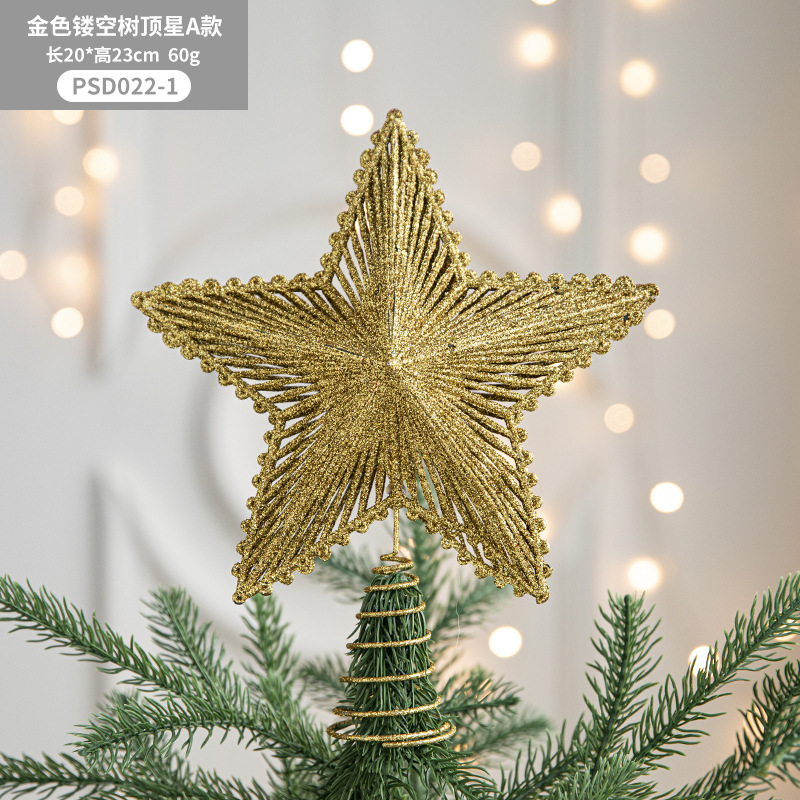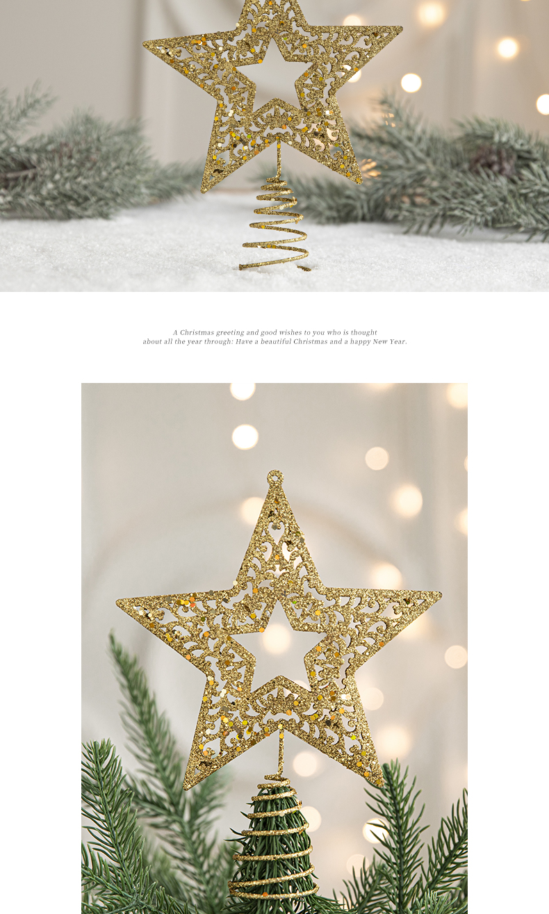 Christmas tree top star wrought iron ornaments pentagram star sequin atmosphere Christmas decoration decoration accessories