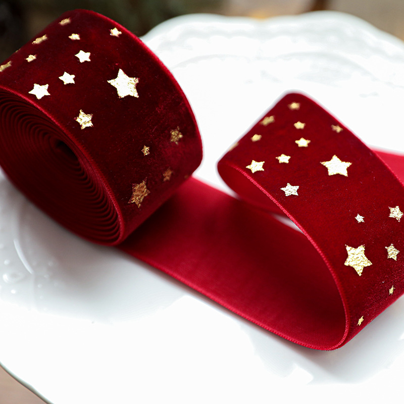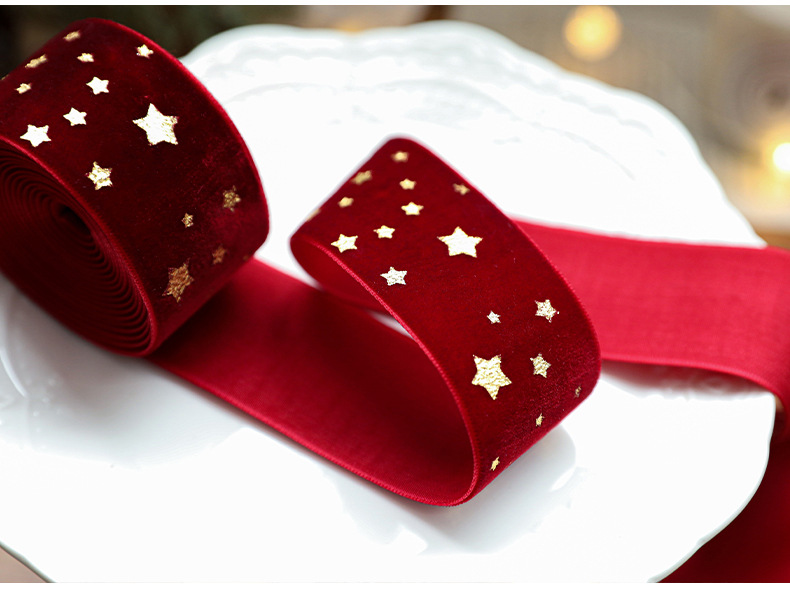 4CM酒红色星星织带(2M/卷)